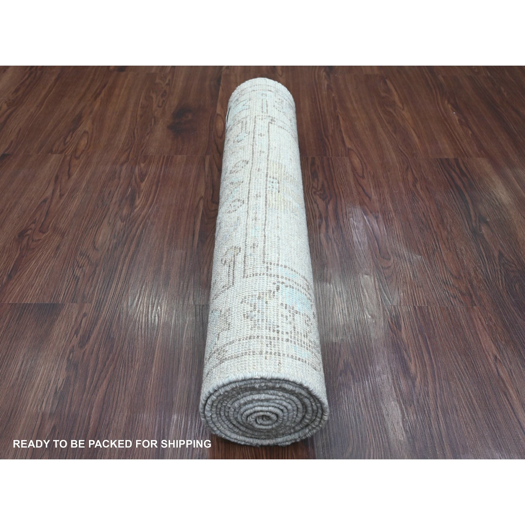 2'6"x9'7" Pastel Gray, Afghan Angora Oushak With All Over Design, Hand Knotted, Natural Dyes, 100% Wool, Runner, Oriental Rug FWR123546