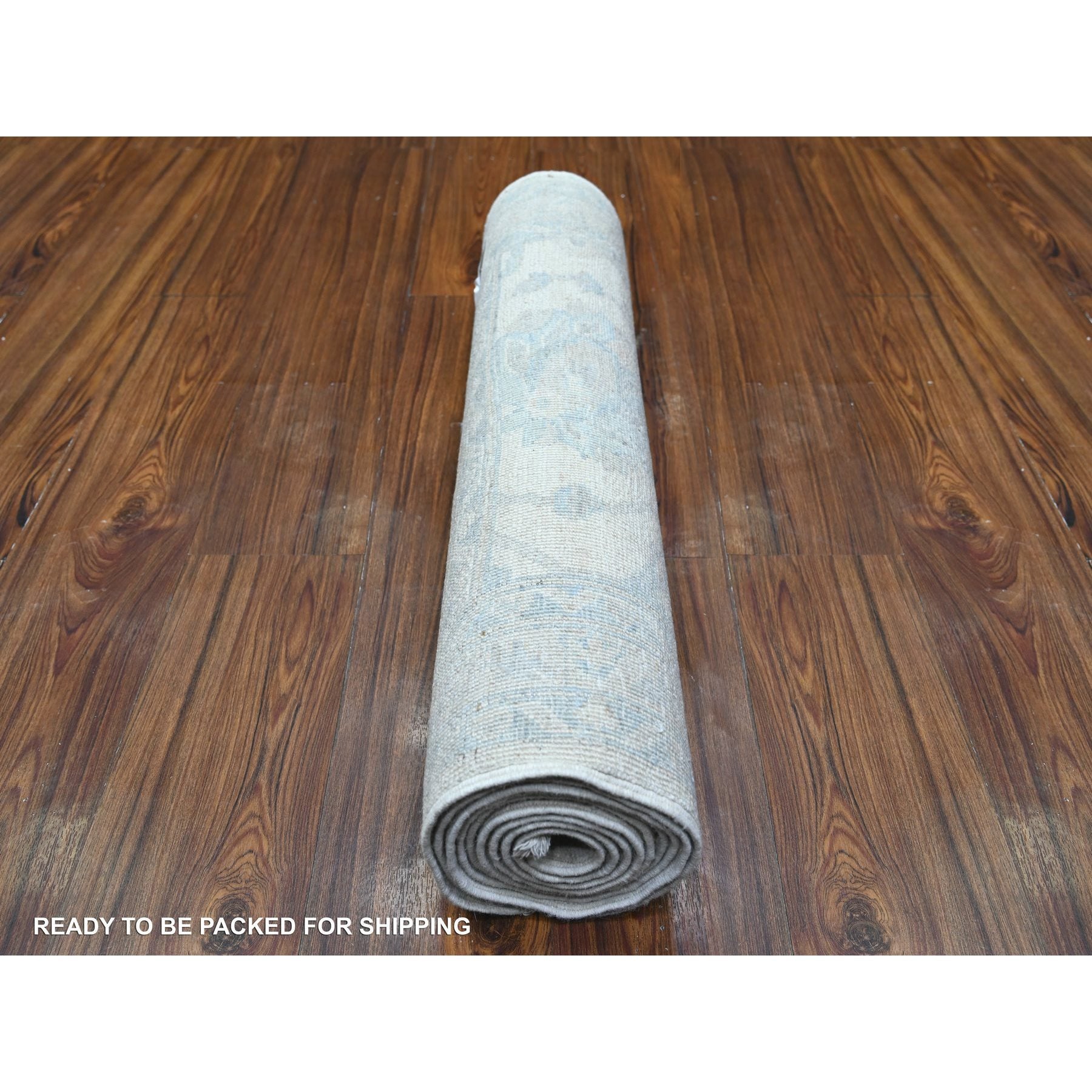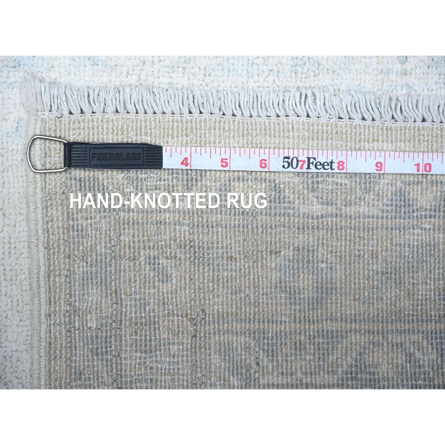 2'6"x9'7" Peppermint White, White Wash Peshawar, Hand Knotted, Luxurious Wool, Runner Oriental Rug FWR530142