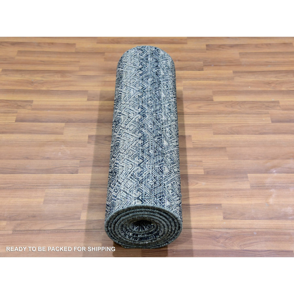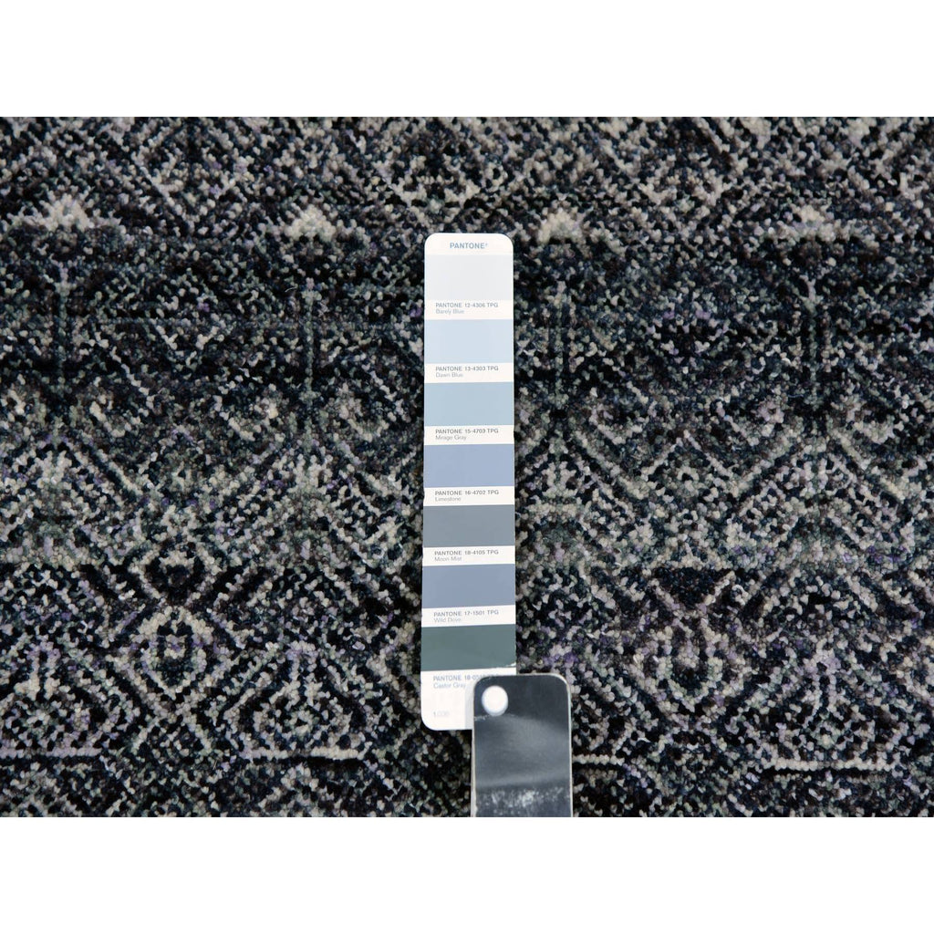 2'7"x10'1" Hale Navy Gray, Kohinoor Herat Small Geometric Repetitive Diamond Design, 100% Plush Wool, Tone On Tone, Hand Knotted, Runner Oriental Rug FWR478878
