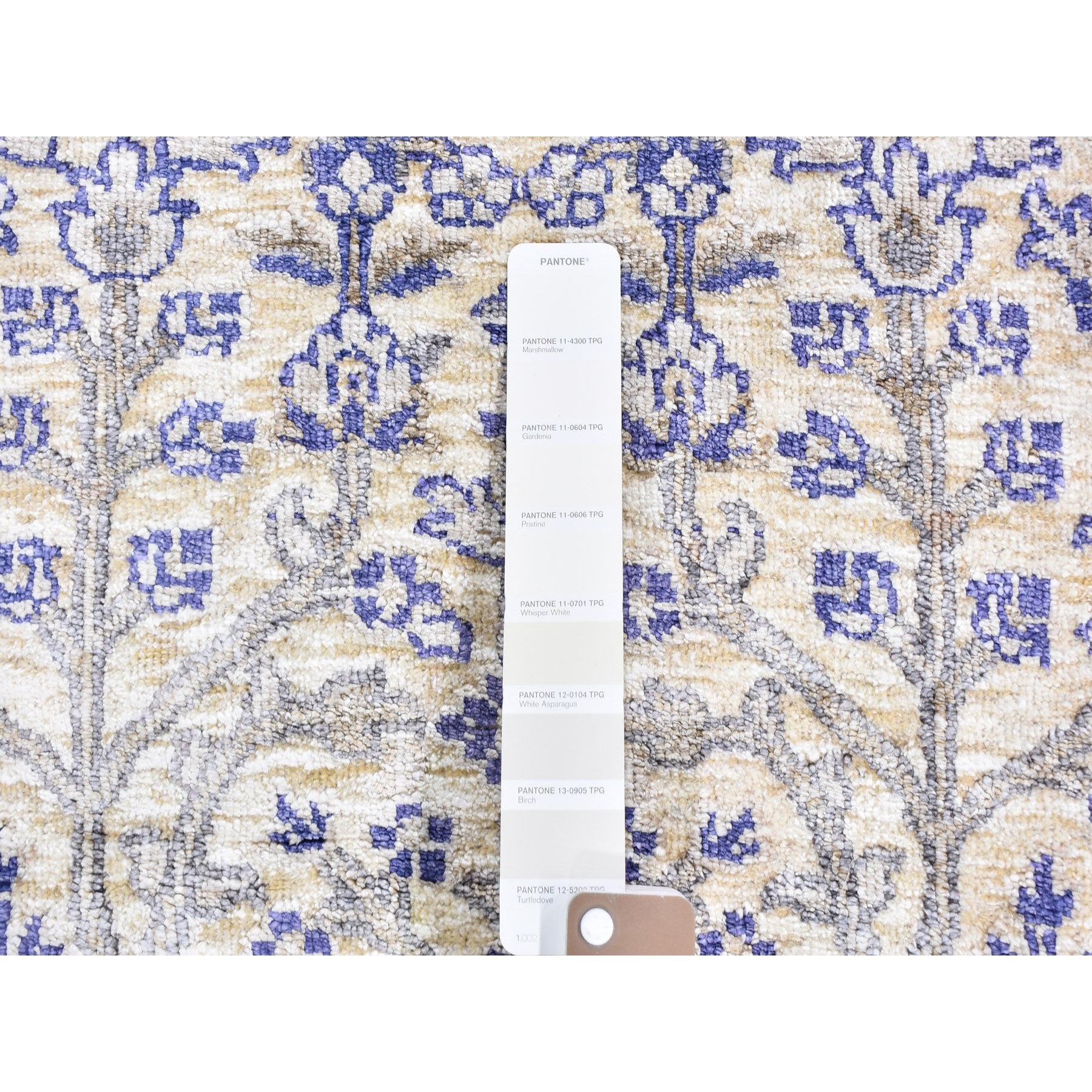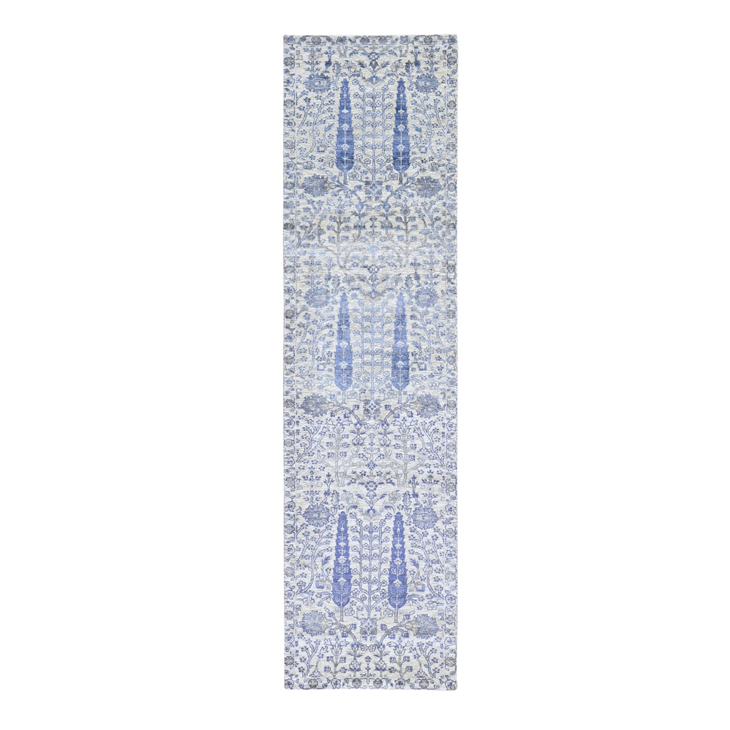 2'7"x10'1" Ivory Willow And Cypress Tree Design Silk With Textured Wool Hand Knotted Runner Oriental Rug FWR357540