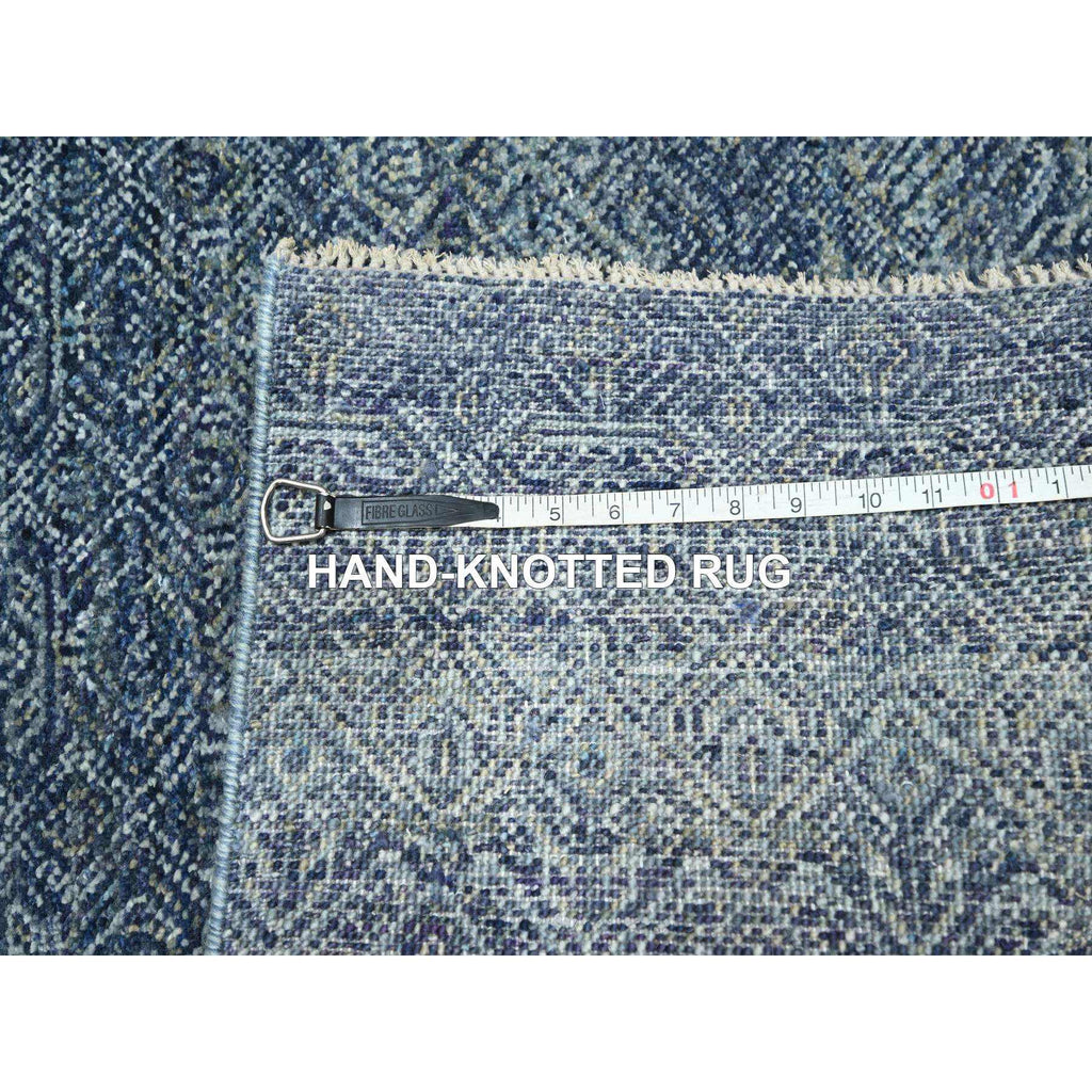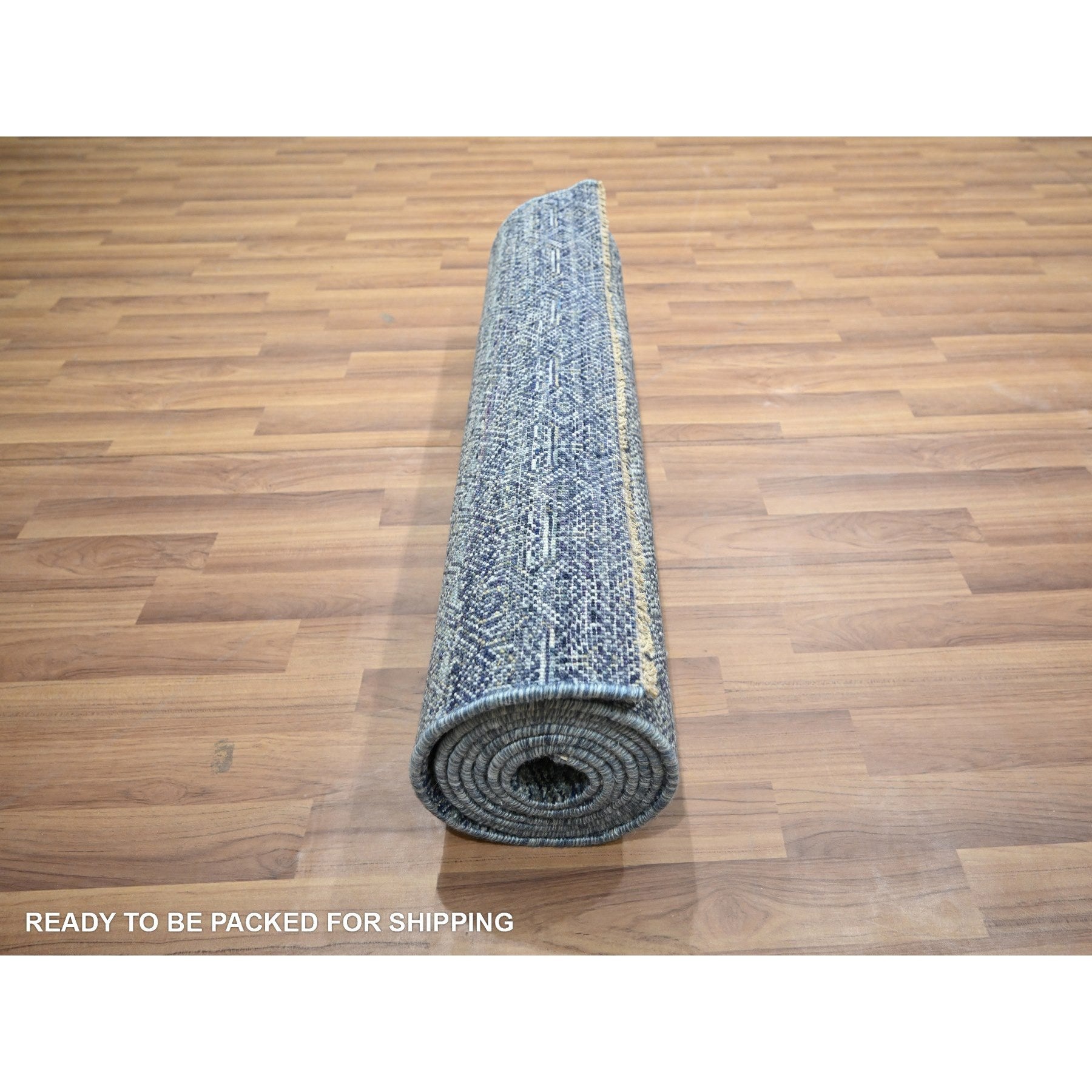 2'7"x10'2" Aegean Blue, Kohinoor Herat With Small Geometric Repetitive Diamond Pattern, Soft Wool, Tone On Tone, Hand Knotted, Runner, Oriental Rug FWR458490