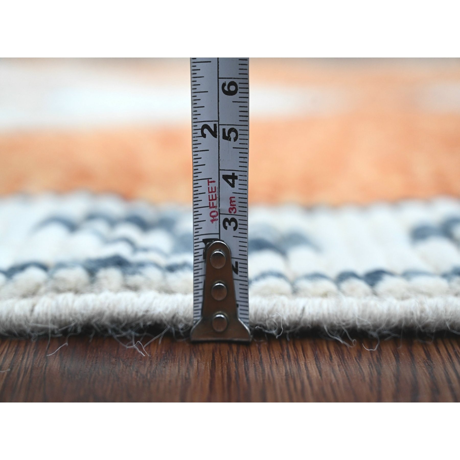 2'7"x10'2" Burnt Orange, Moroccan Weave With Geometric Medallions Design, Soft Wool, Hand Knotted, Tone On Tone, Textured Pile, Runner, Oriental Rug FWR123714