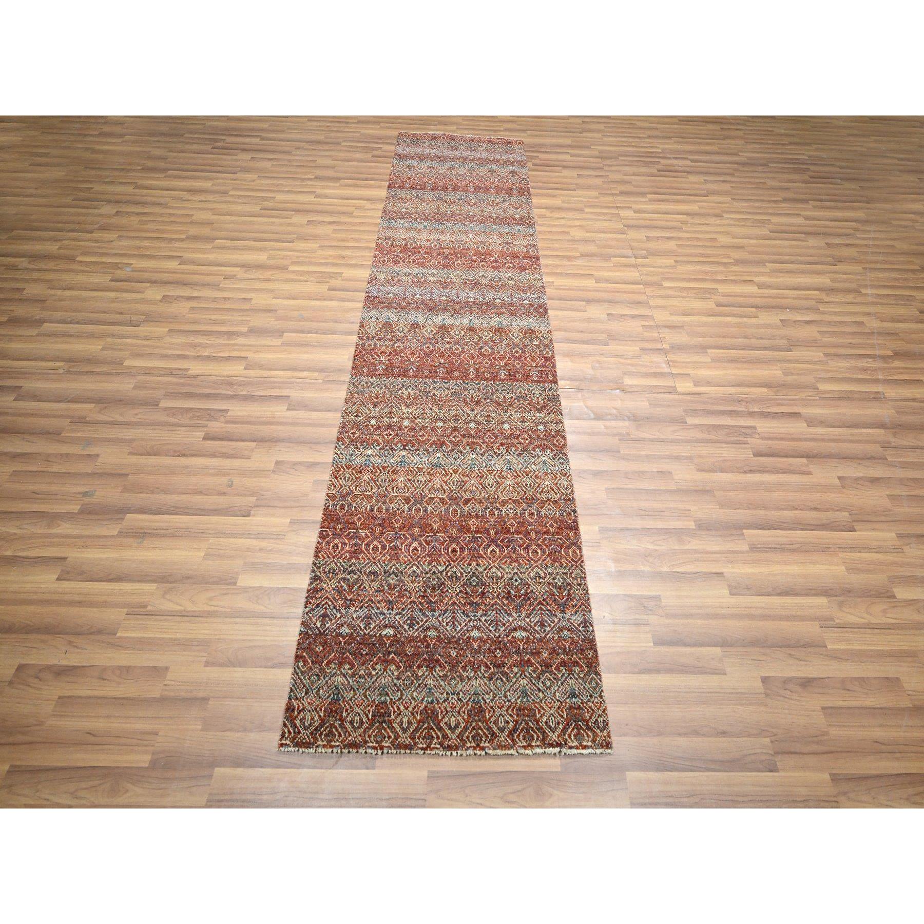 2'7"x10'2" Clay Red, Kohinoor Herat With Small Geometric Repetitive Diamond Pattern, Soft Wool, Tone On Tone, Hand Knotted, Runner, Oriental Rug FWR458376
