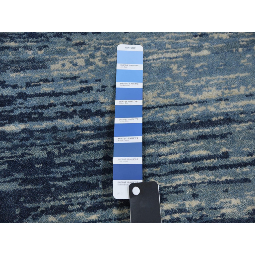 2'7"x10'2" Hand Knotted Pure Wool Only Horizontal Ombre Design Blue With Touches Of Ivory Oriental Runner Rug FWR401280