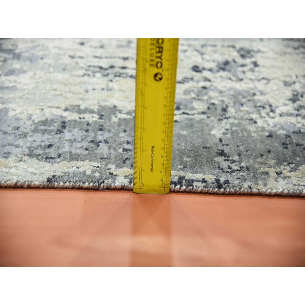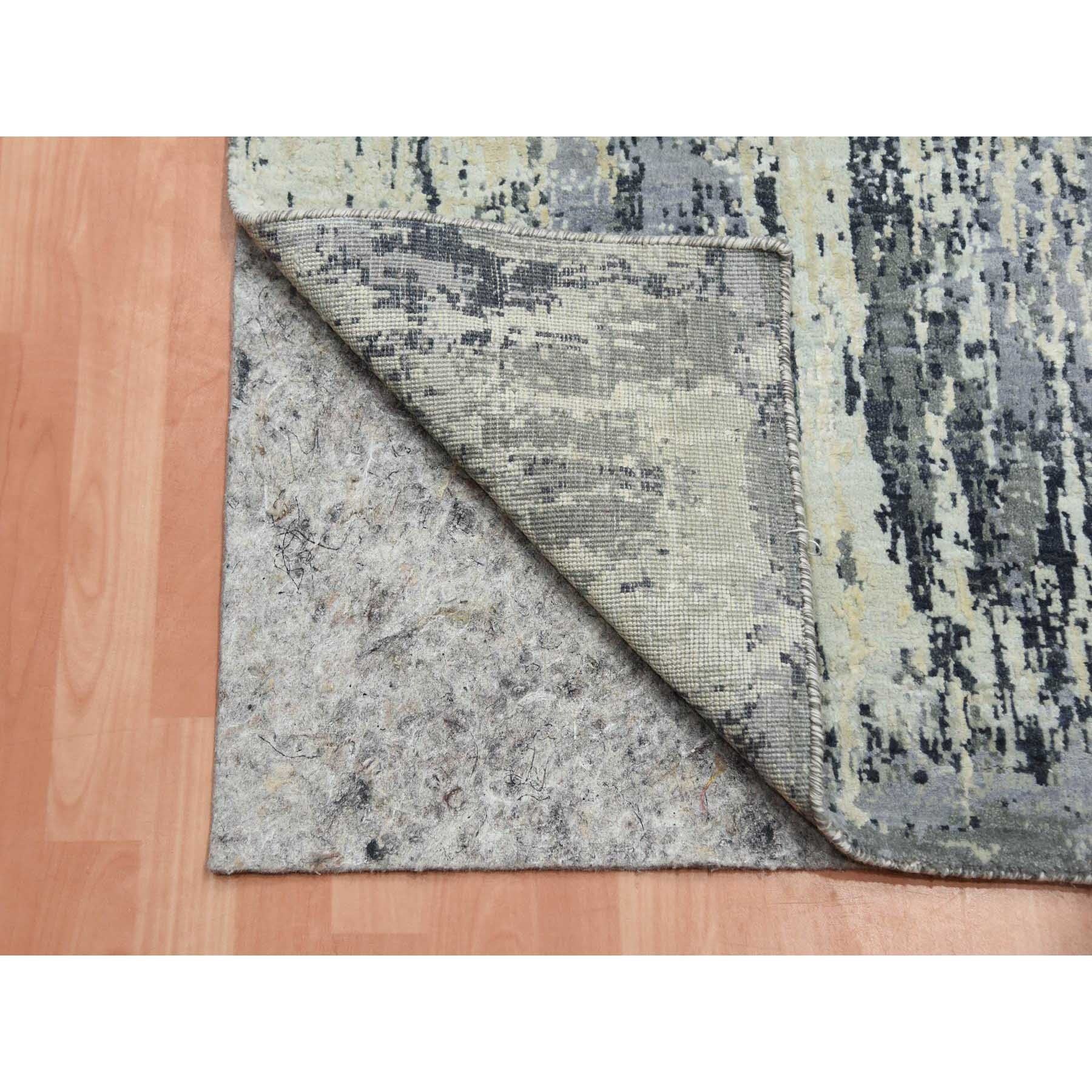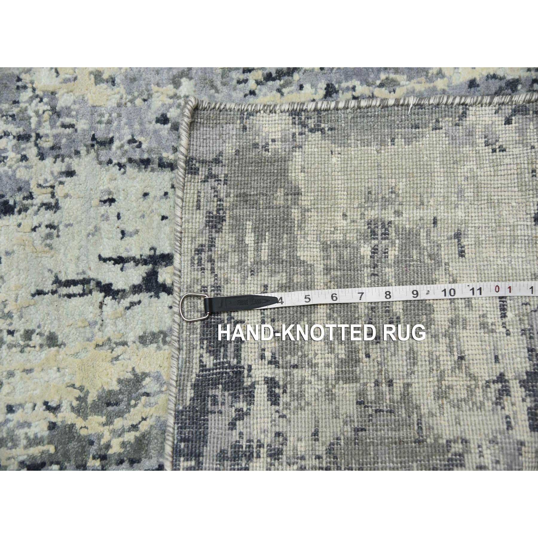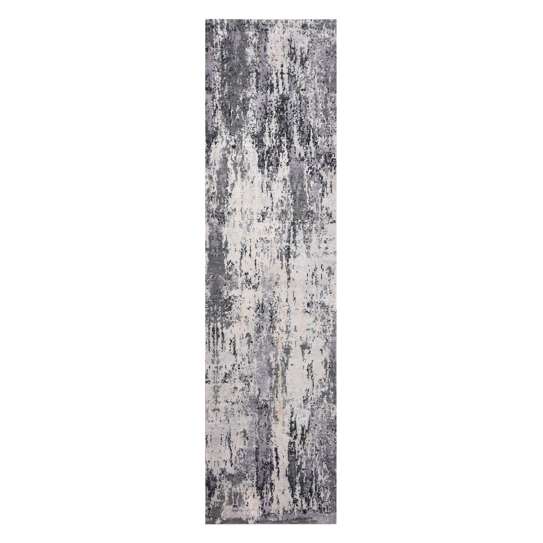 2'7"x10'3" Charcoal Gray Abstract Design Wool And Silk Denser Weave Persian Knot Hand Knotted Oriental Rug FWR450462