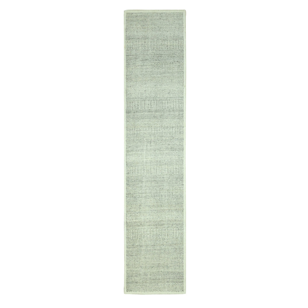 2'7"x10'3" Medium Gray, Oxidized And Distressed Grass Design With Exposed Warps, Hand Knotted, Natural Wool, Runner, Oriental Rug FWR460548