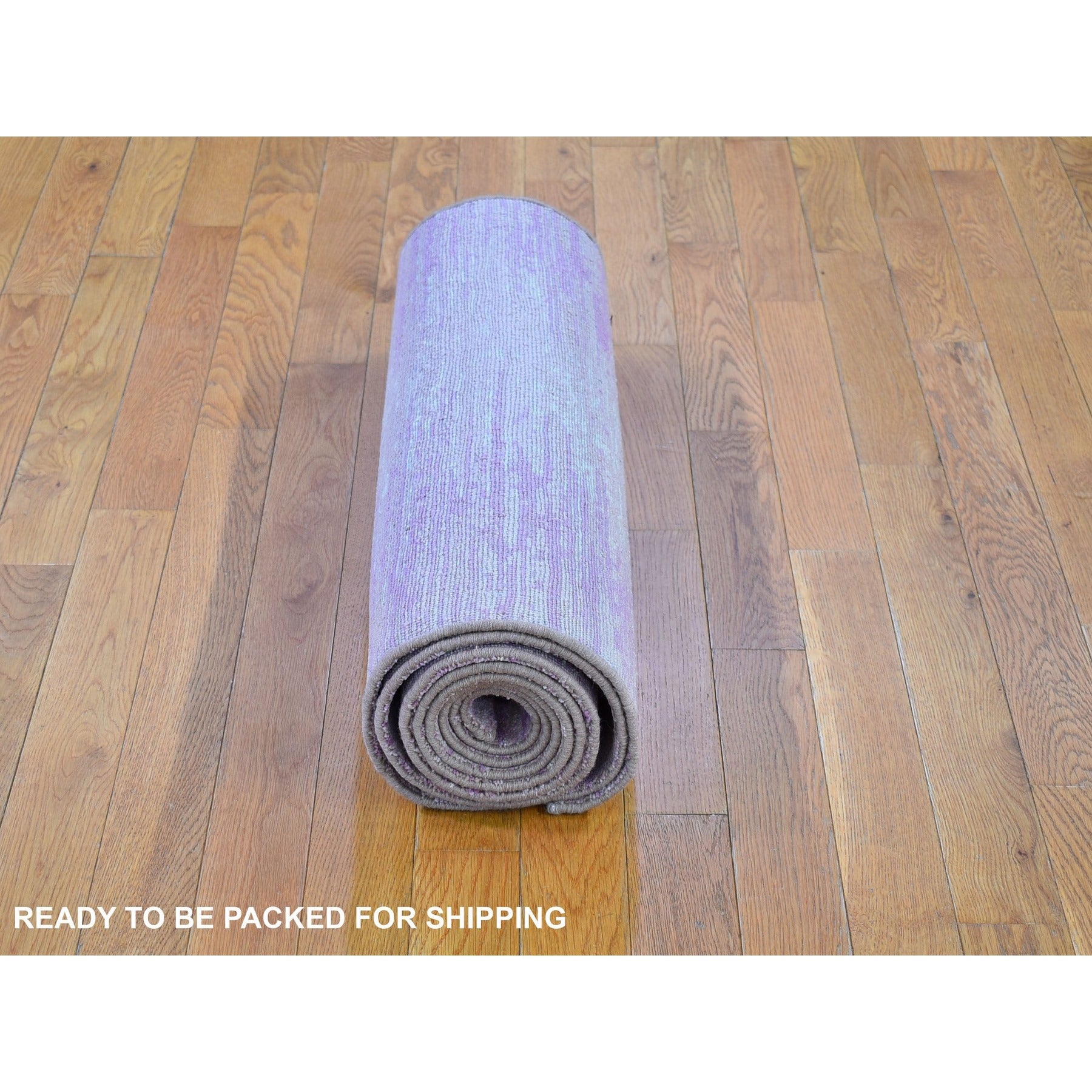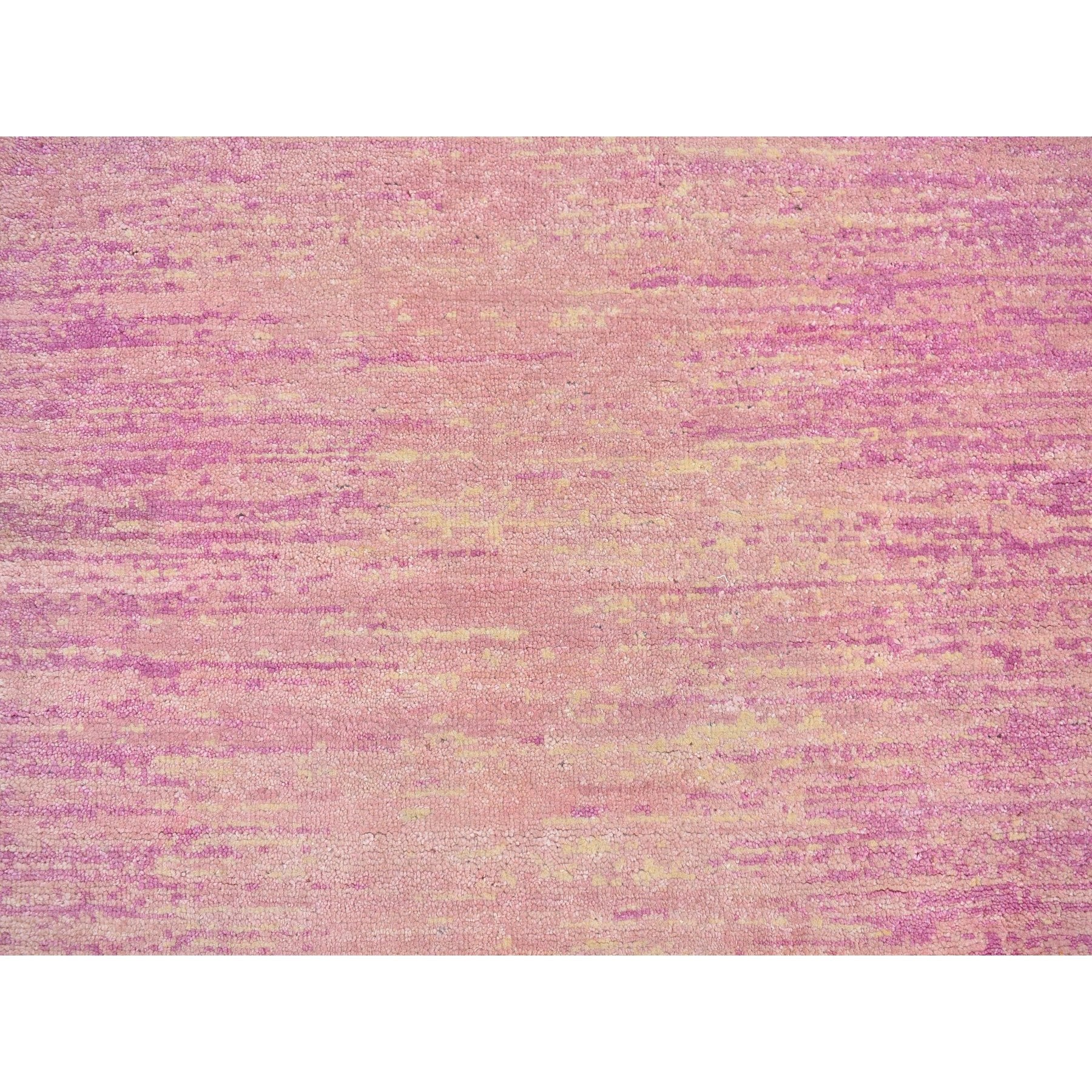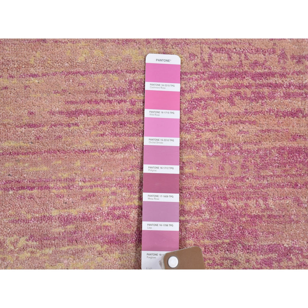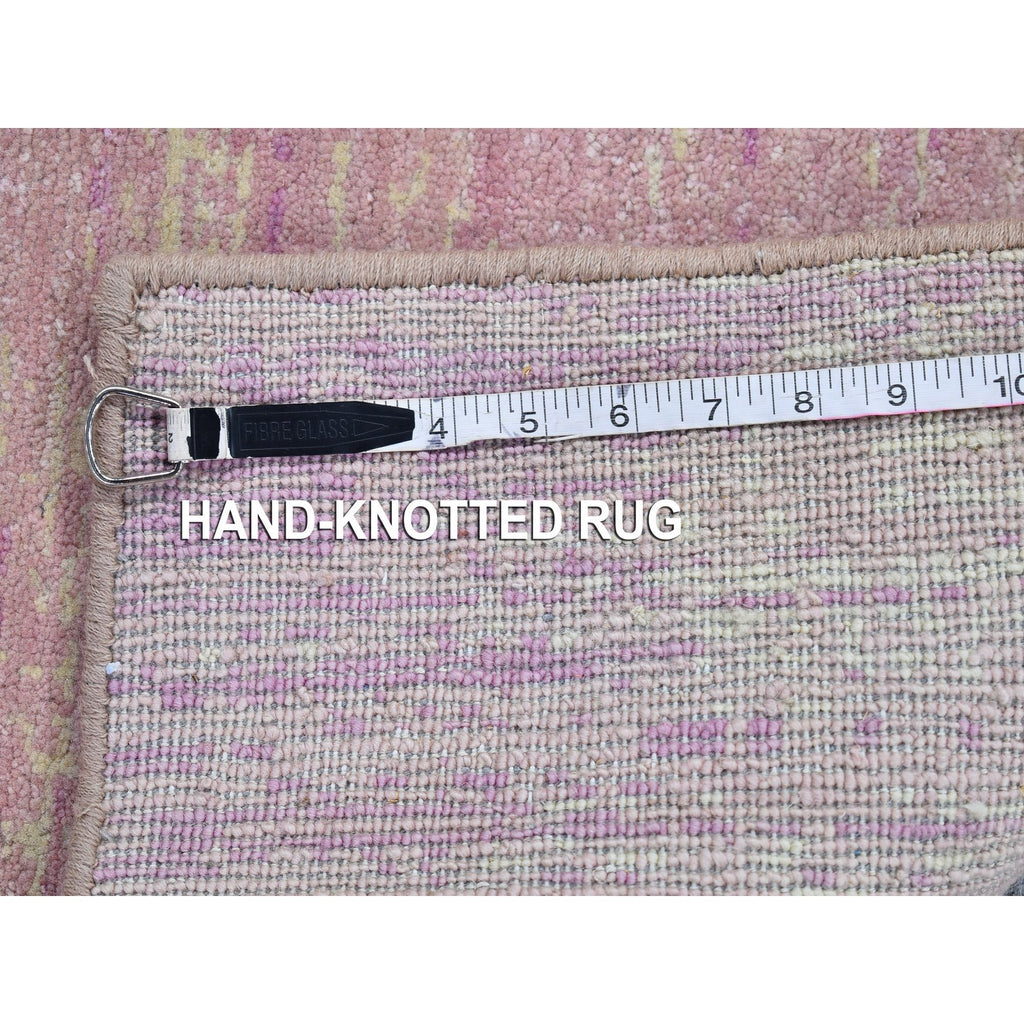 2'7"x10'3" Pink Thick And Plush Organic Wool Only Horizontal Ombre Design Hand Knotted Wide Runner Oriental Rug FWR400524