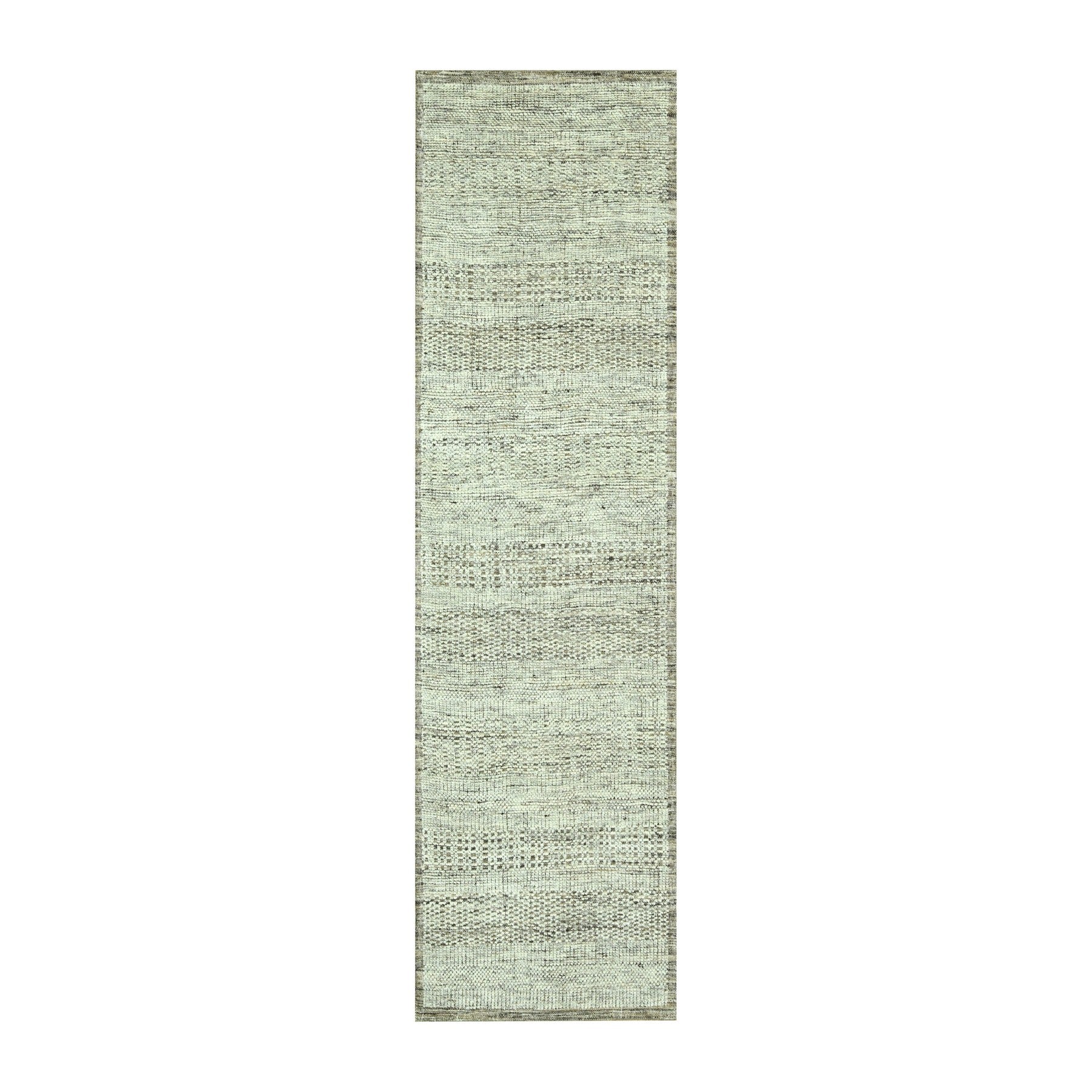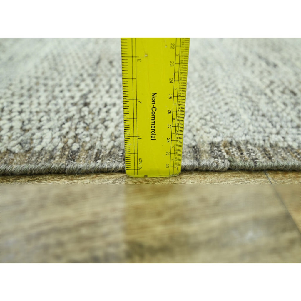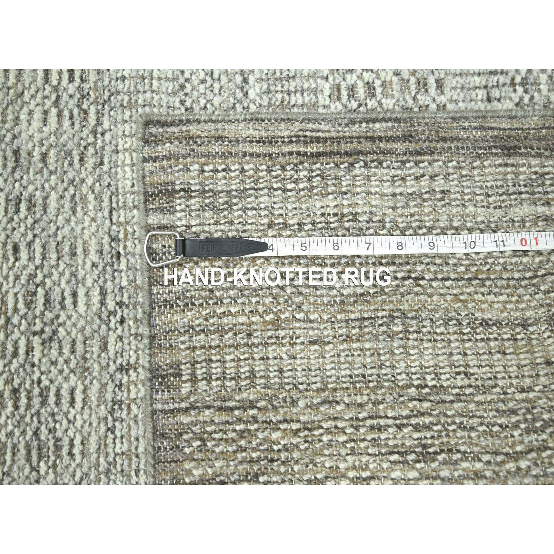 2'7"x10' Beaver Brown, Hand Knotted, Natural Wool, Distressed And Oxidized Grass Design With Exposed Warps, Runner, Oriental Rug FWR460500