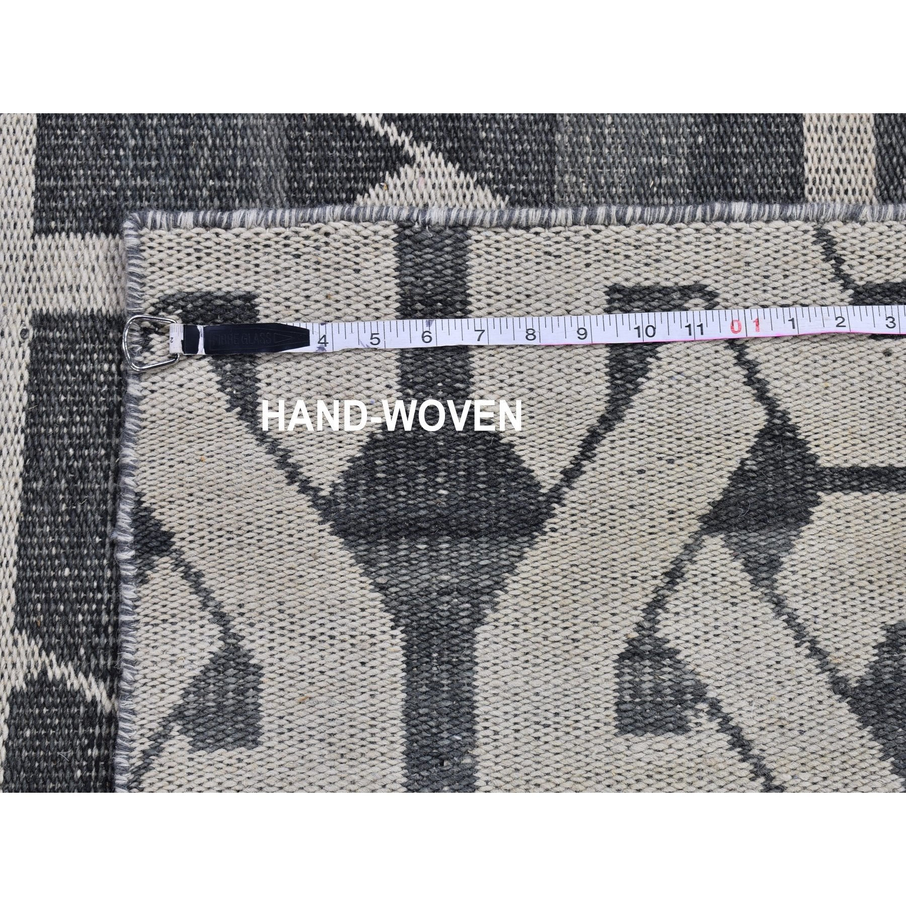 2'7"x10' Geometric Pattern Flat Weave Pure Wool Reversible Kilim Runner Gray Hand Woven Oriental Rug FWR396588