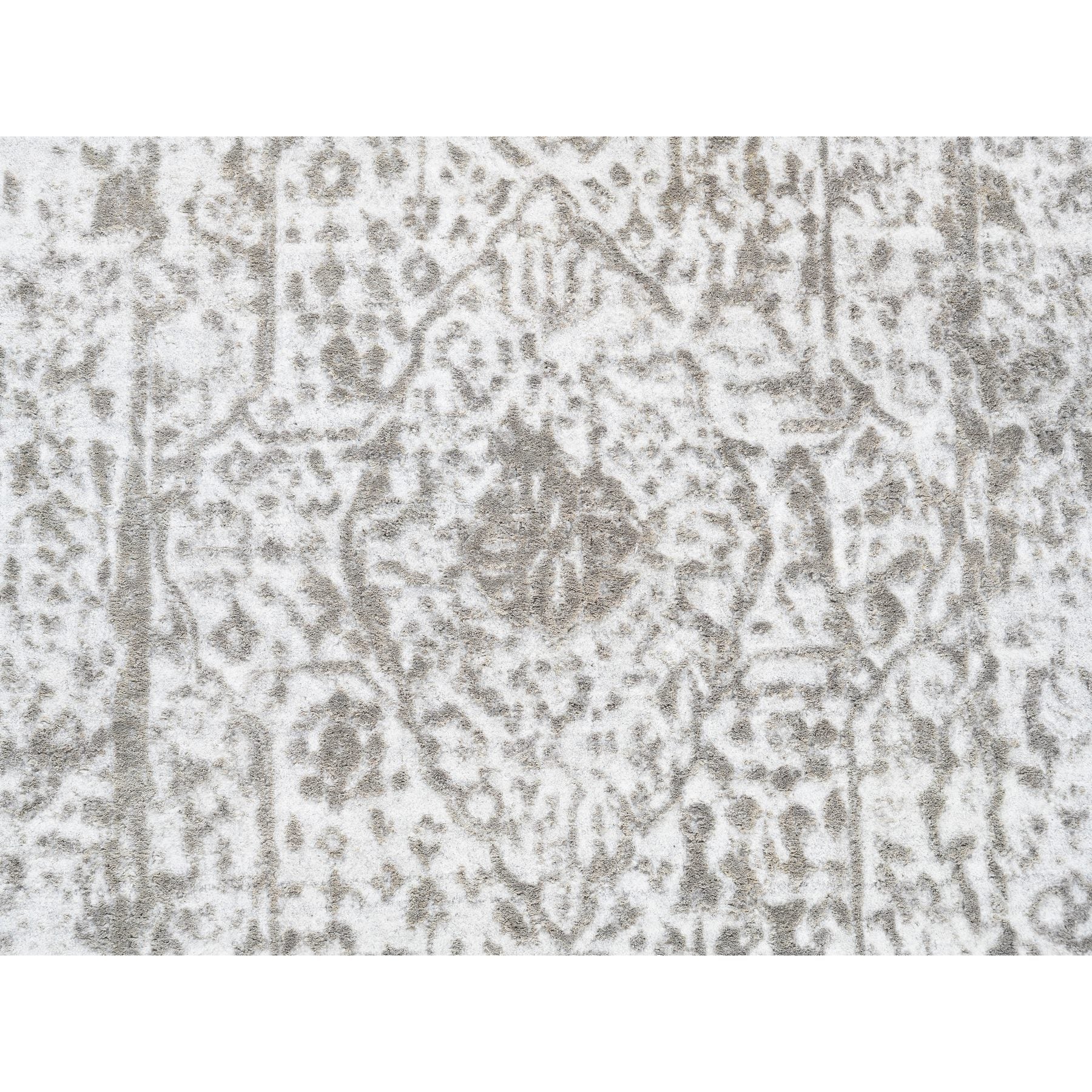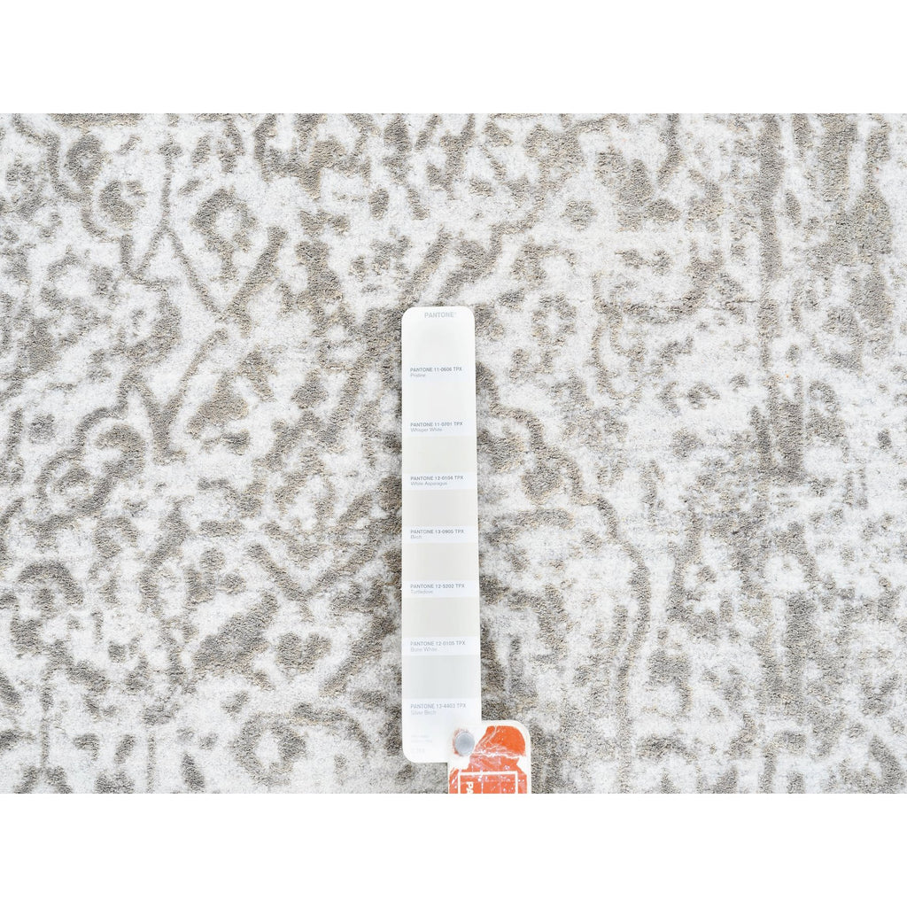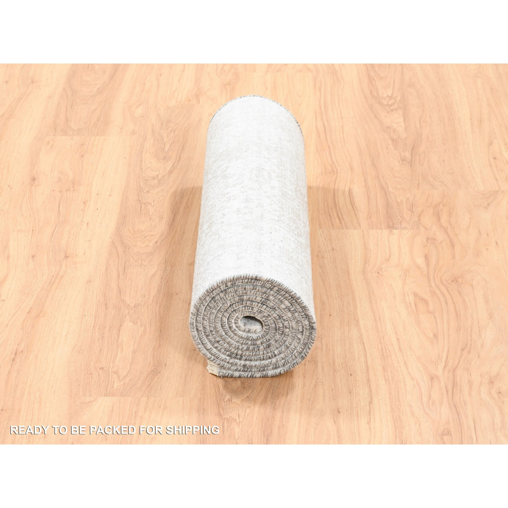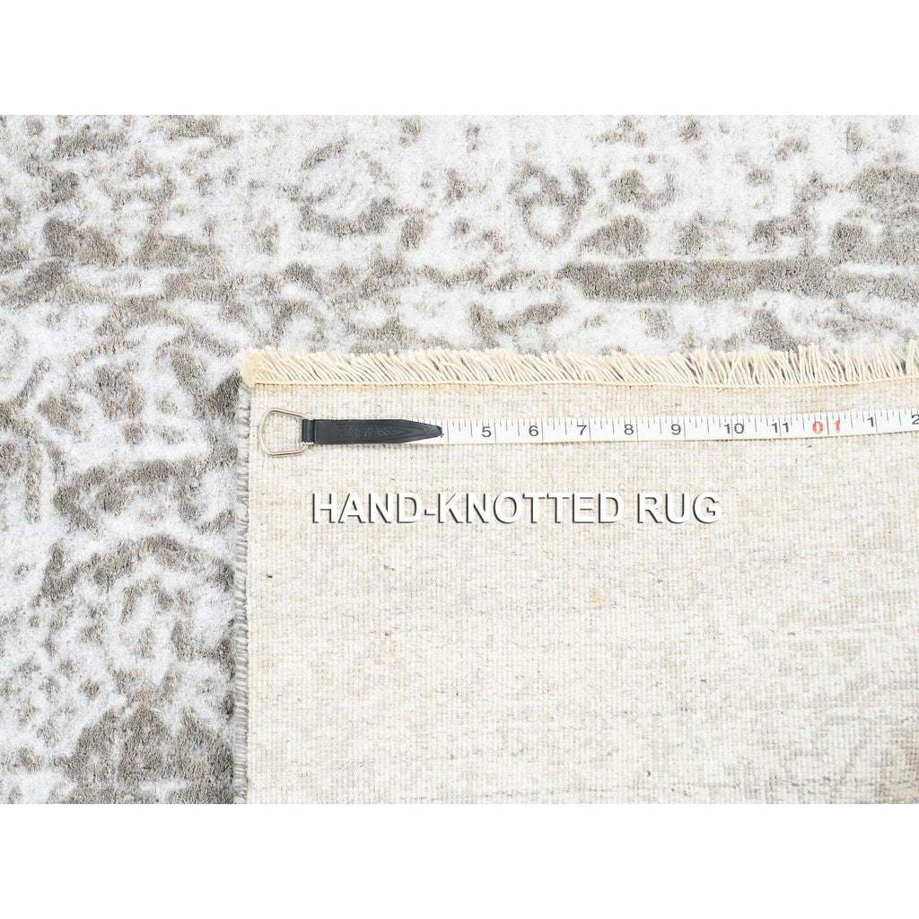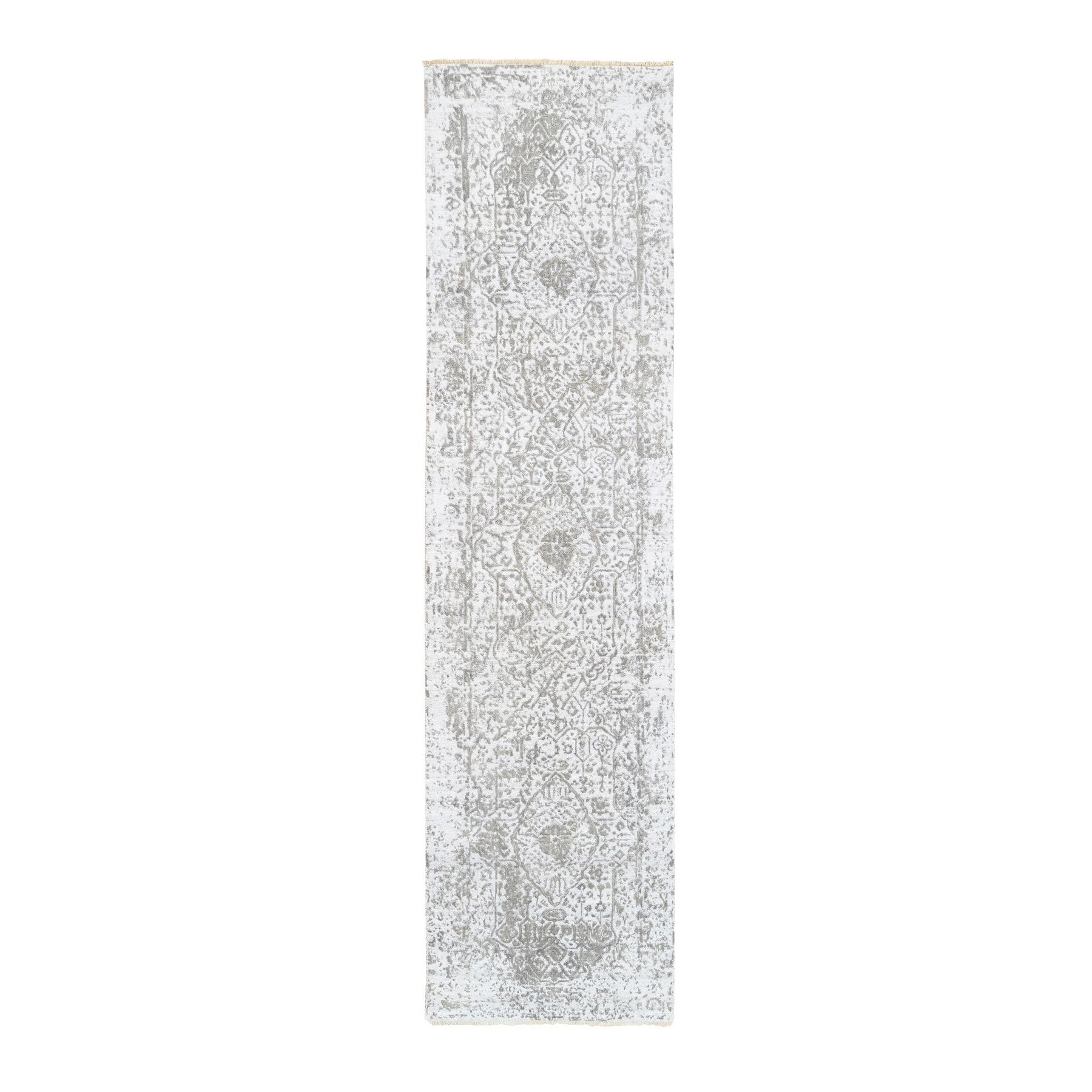 2'7"x10' Hand Knotted Grey Broken Persian Design Wool And Pure Silk Oriental Runner Rug FWR374184