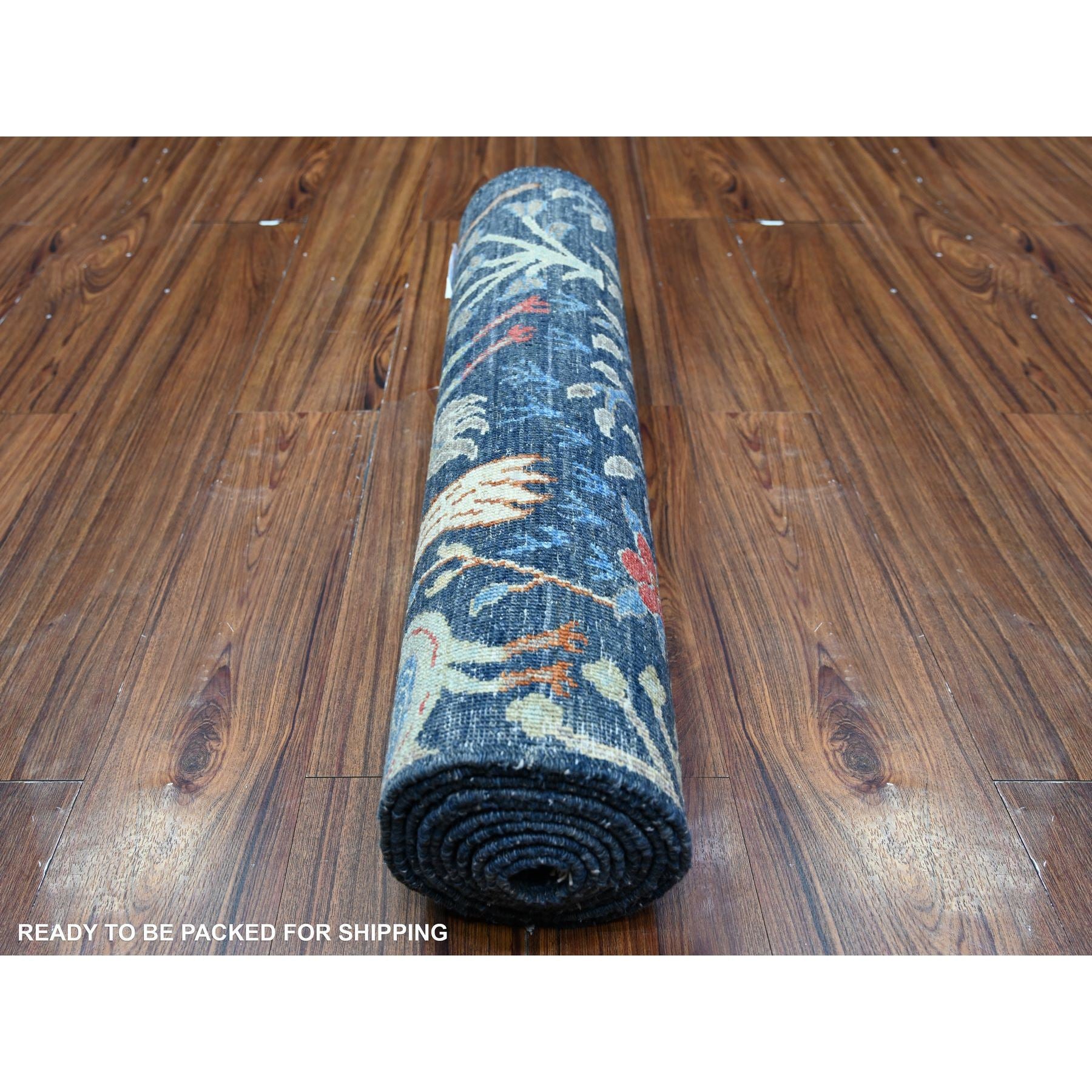 2'7"x10' Millennium Blue, Afghan Peshawar With Birds Of Paradise, Hand Knotted, Vegetable Dyes, Natural Wool, Runner, Oriental Rug FWR531024