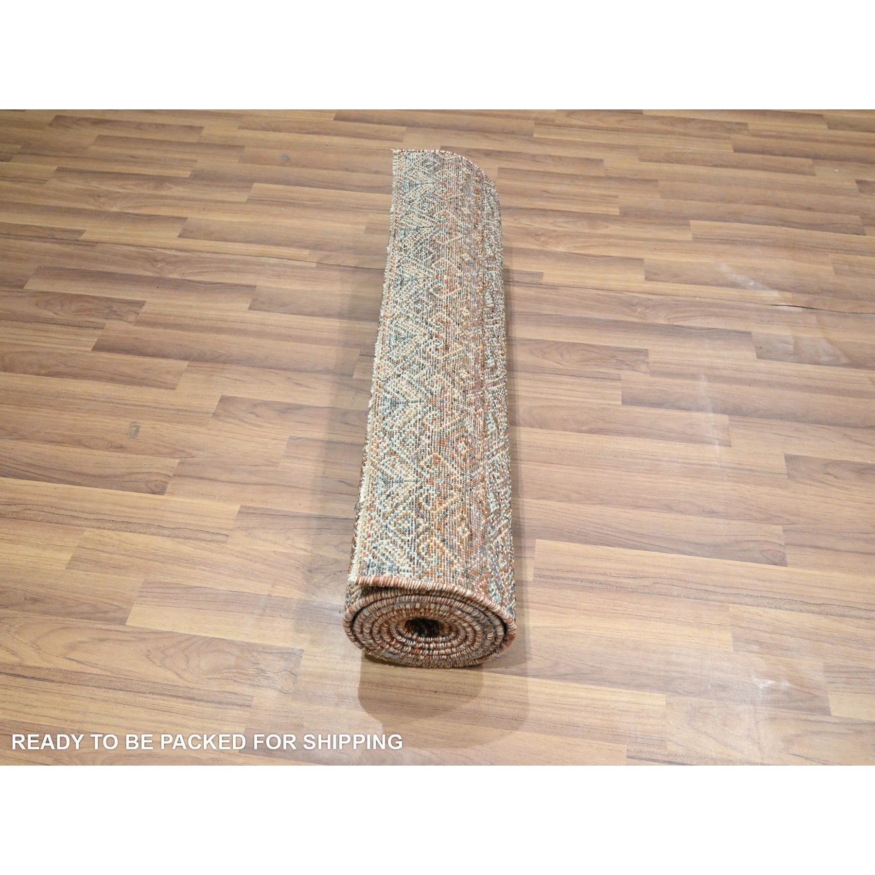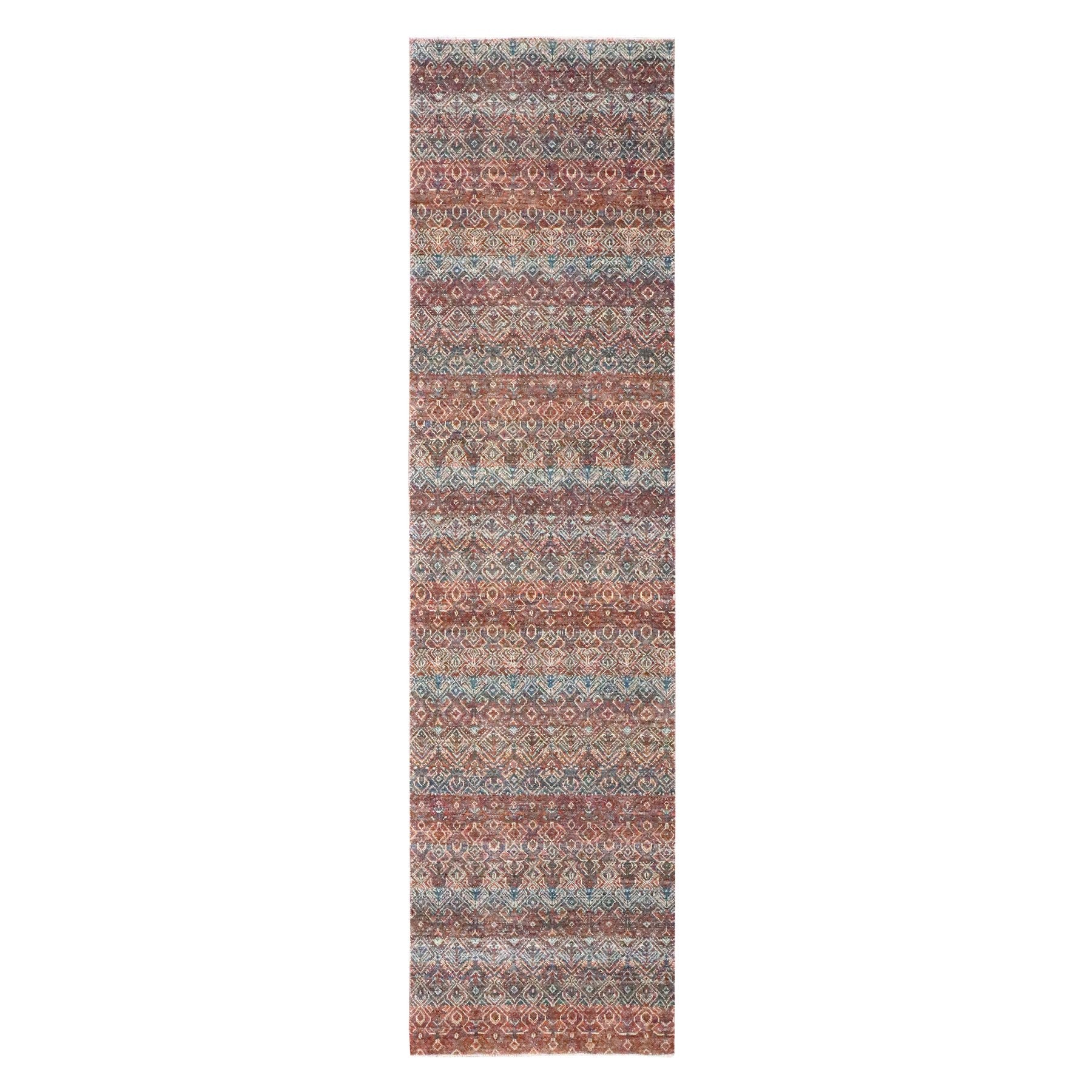 2'7"x10' Summer Fig Red, Kohinoor Herat With Small Geometric Repetitive Diamond Pattern, Tone On Tone, Soft And Shiny Wool, Hand Knotted, Runner, Oriental Rug FWR458460