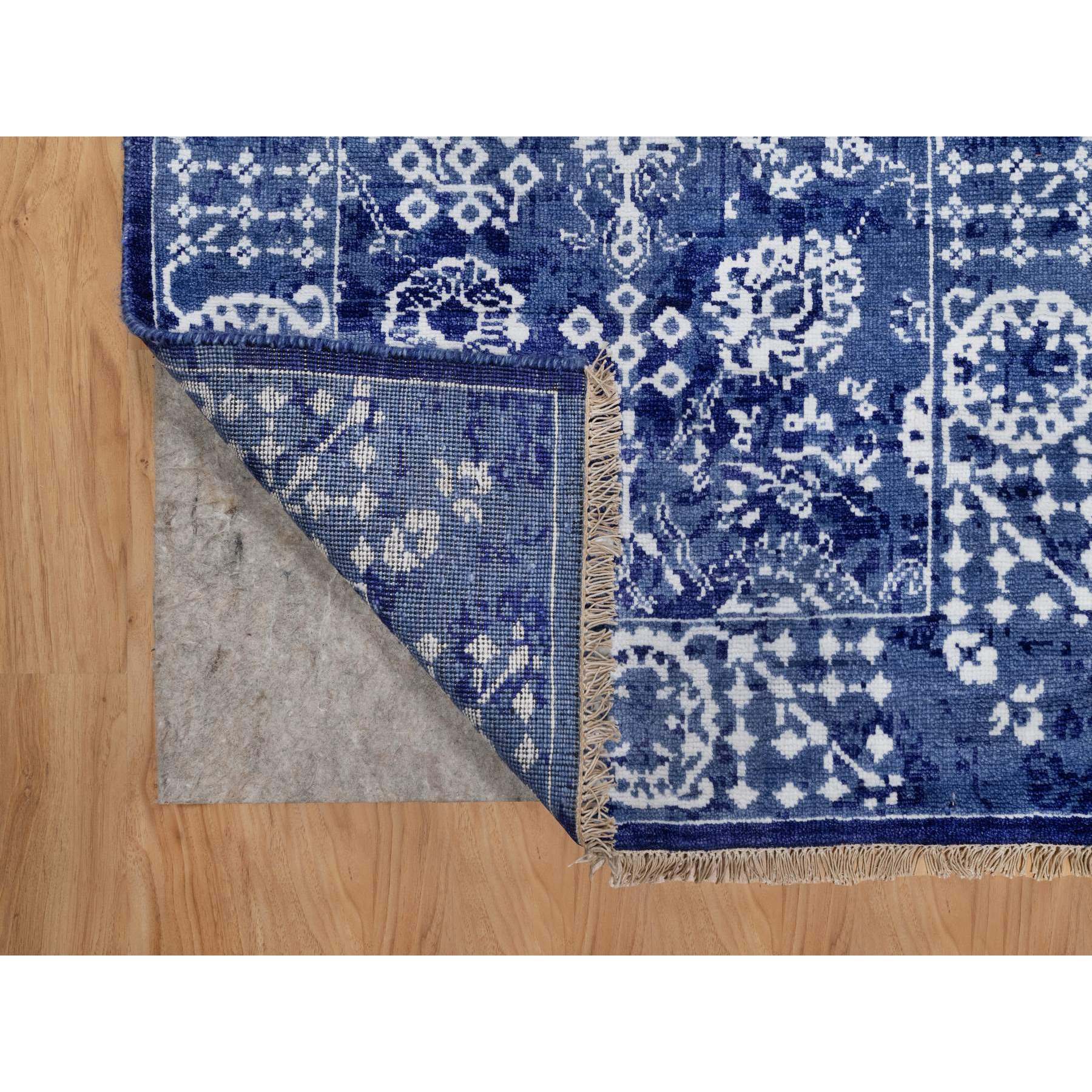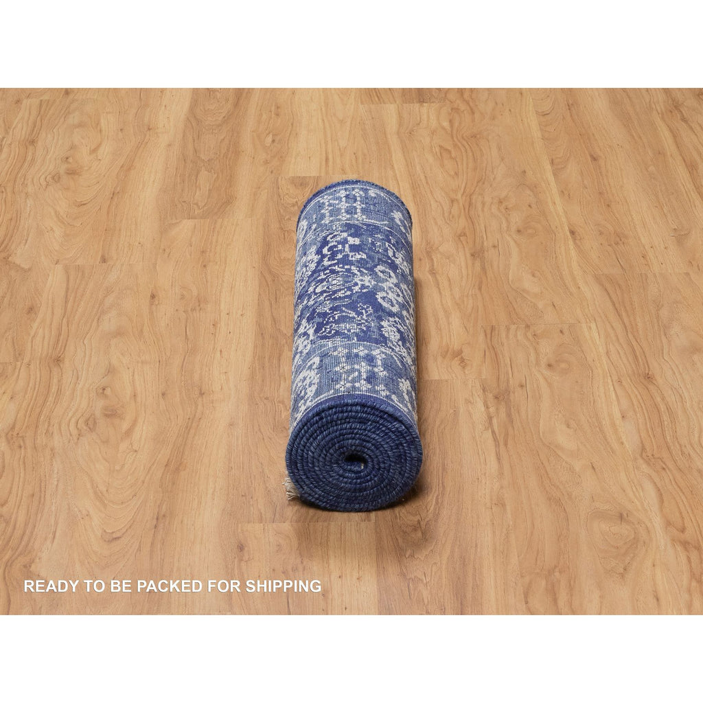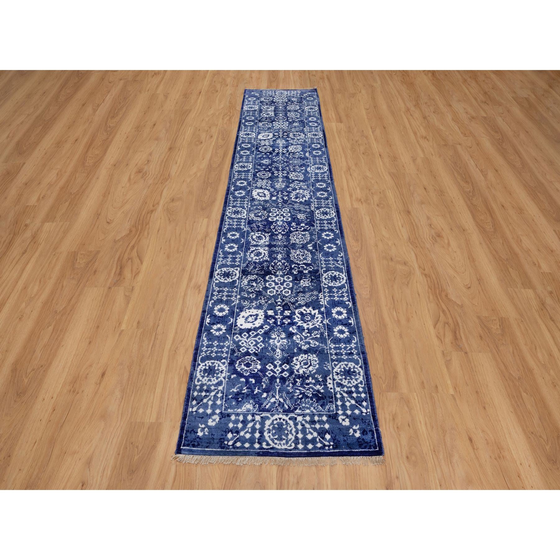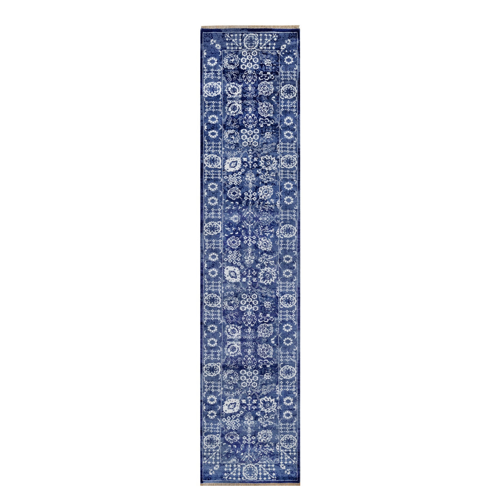 2'7"x11'10" Infinity Blue With Ivory, Hand Knotted, Tone On Tone, Tabriz With All Over Leaf Design, Wool And Silk, Runner, Oriental Rug FWR547338