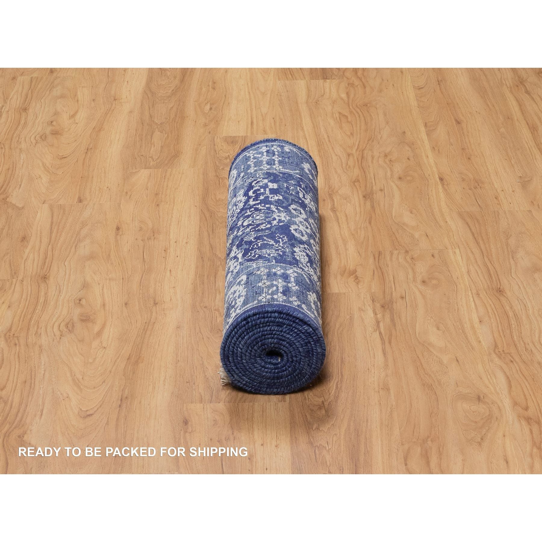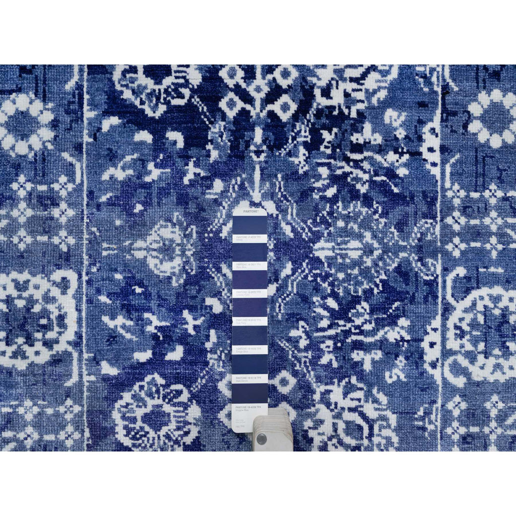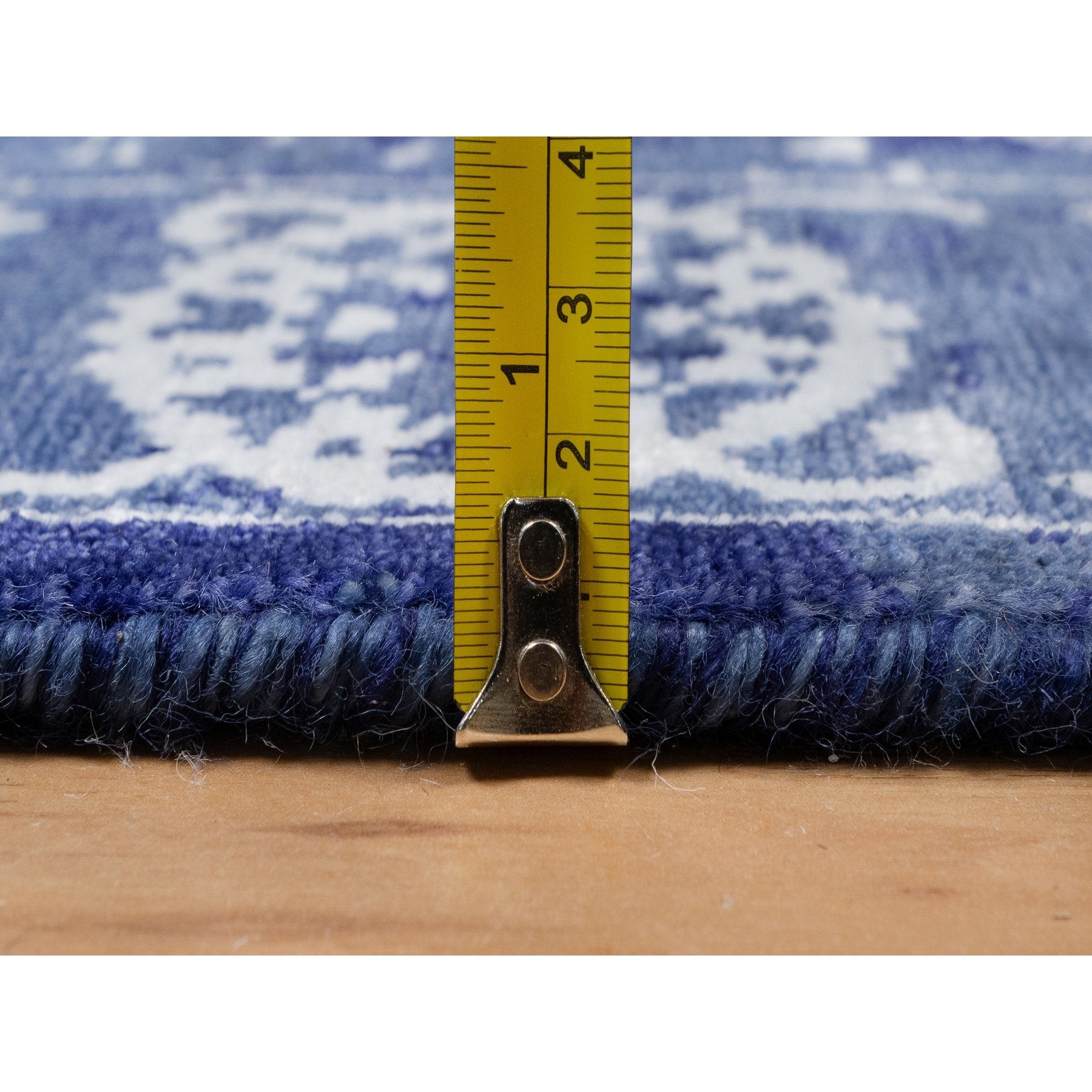 2'7"x11'10" Infinity Blue With Ivory, Hand Knotted, Tone On Tone, Tabriz With All Over Leaf Design, Wool And Silk, Runner, Oriental Rug FWR547338