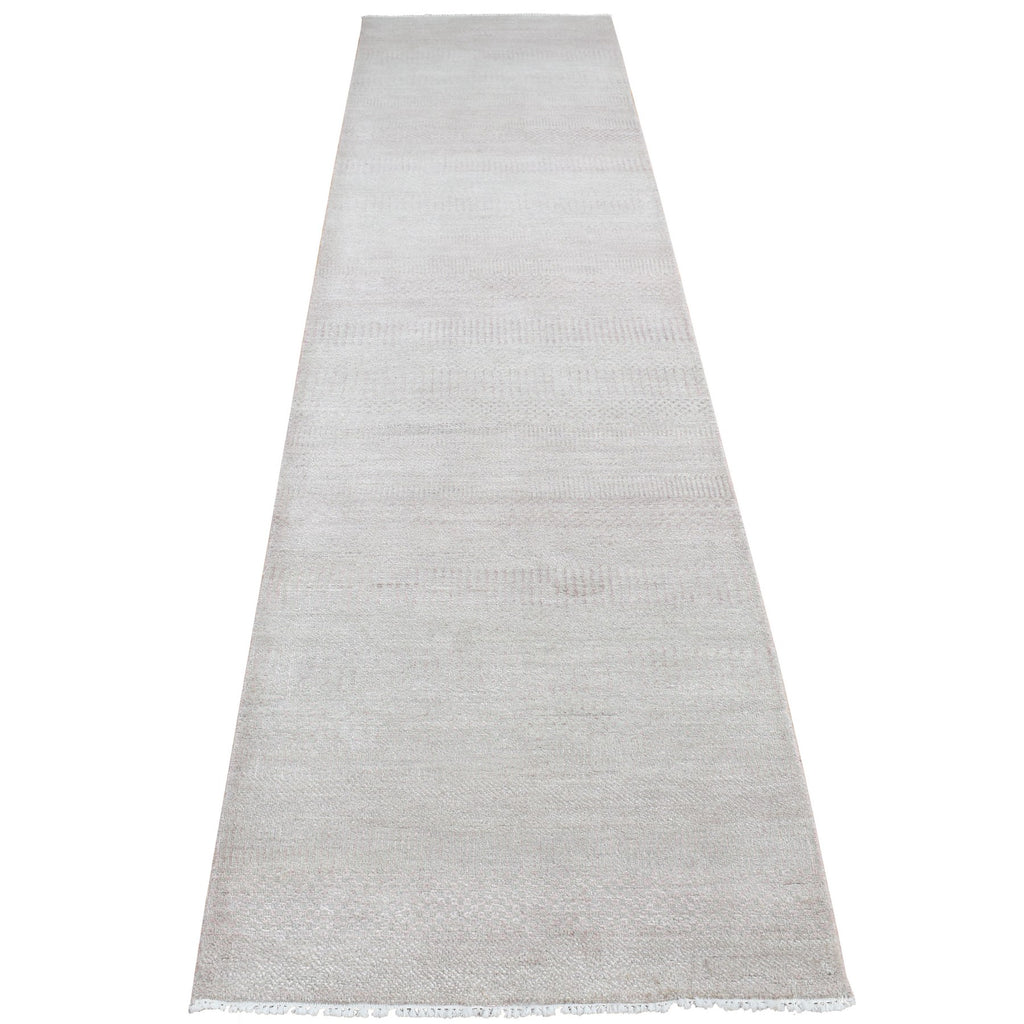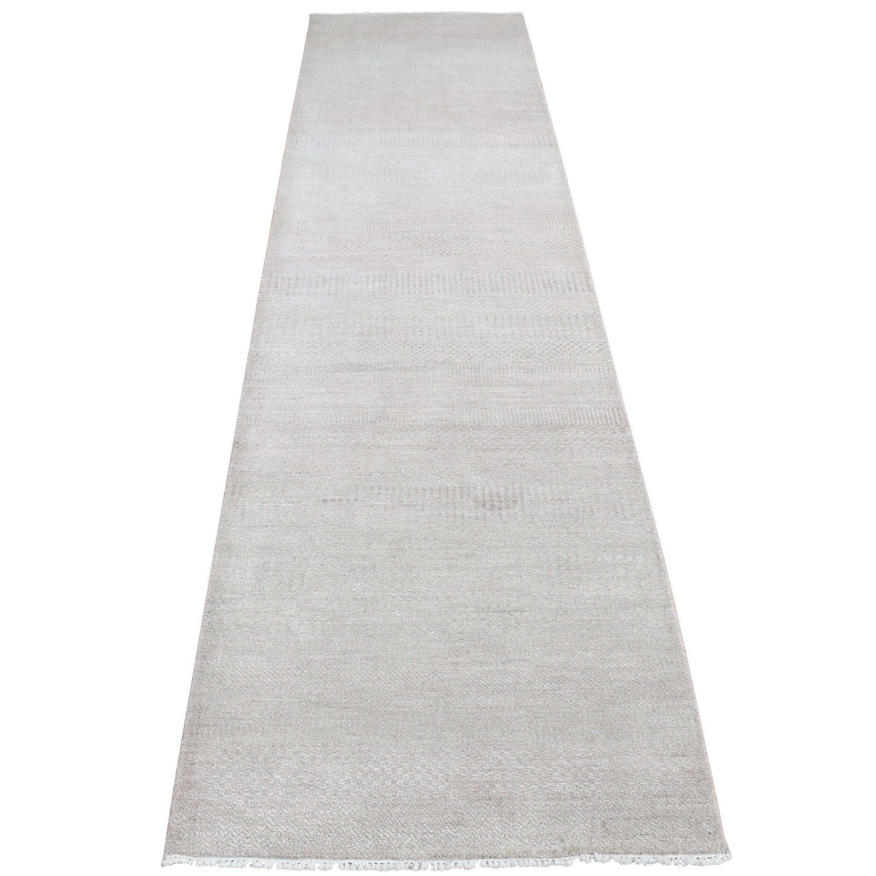 2'7"x11'3" Champagne Pink, Grass Design Gabbeh, Wool And Silk, Hand Knotted, Runner Oriental Rug FWR523812