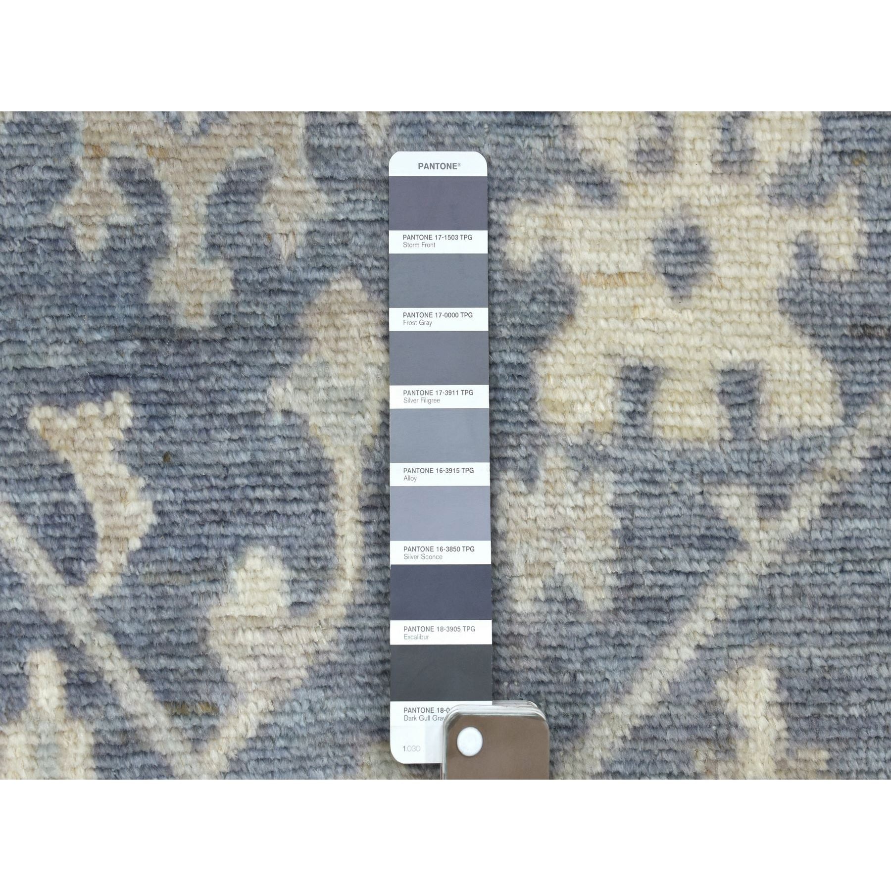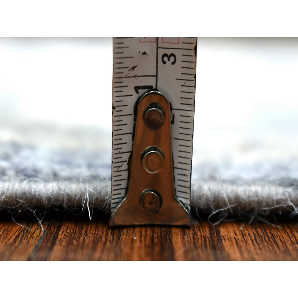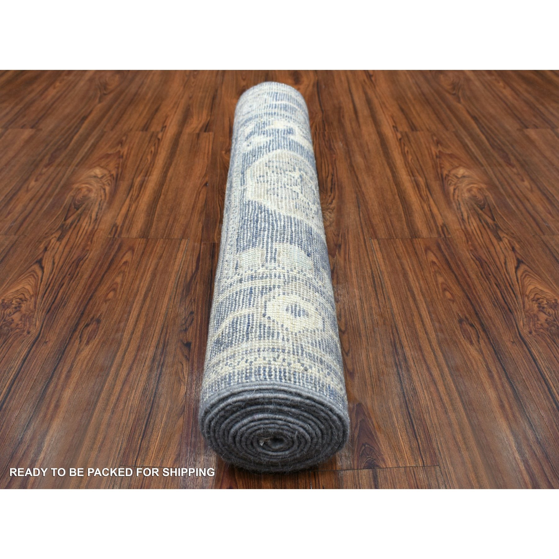 2'7"x11'5" Charcoal Gray, Afghan Angora Ushak With All Over Leaf Design, Hand Knotted, Natural Dyes, Pure Wool Runner Oriental Rug FWR413880