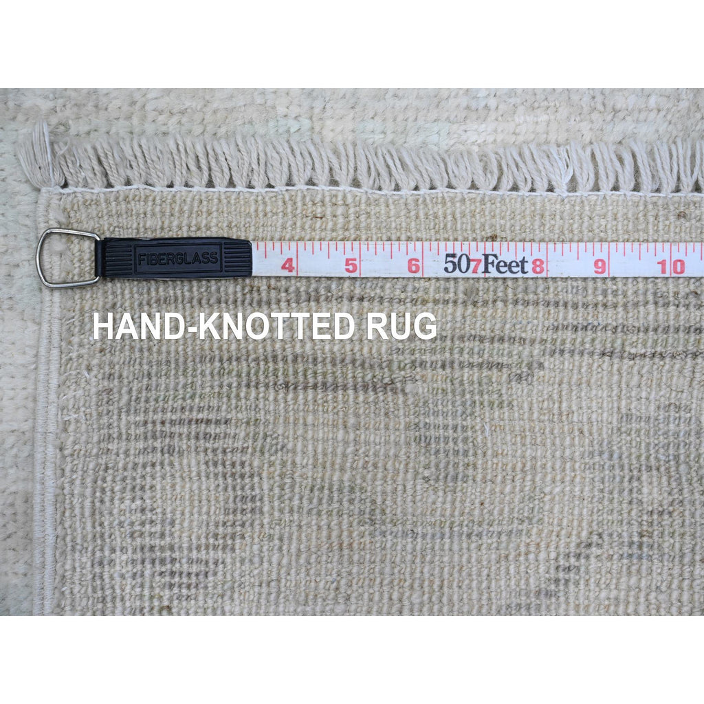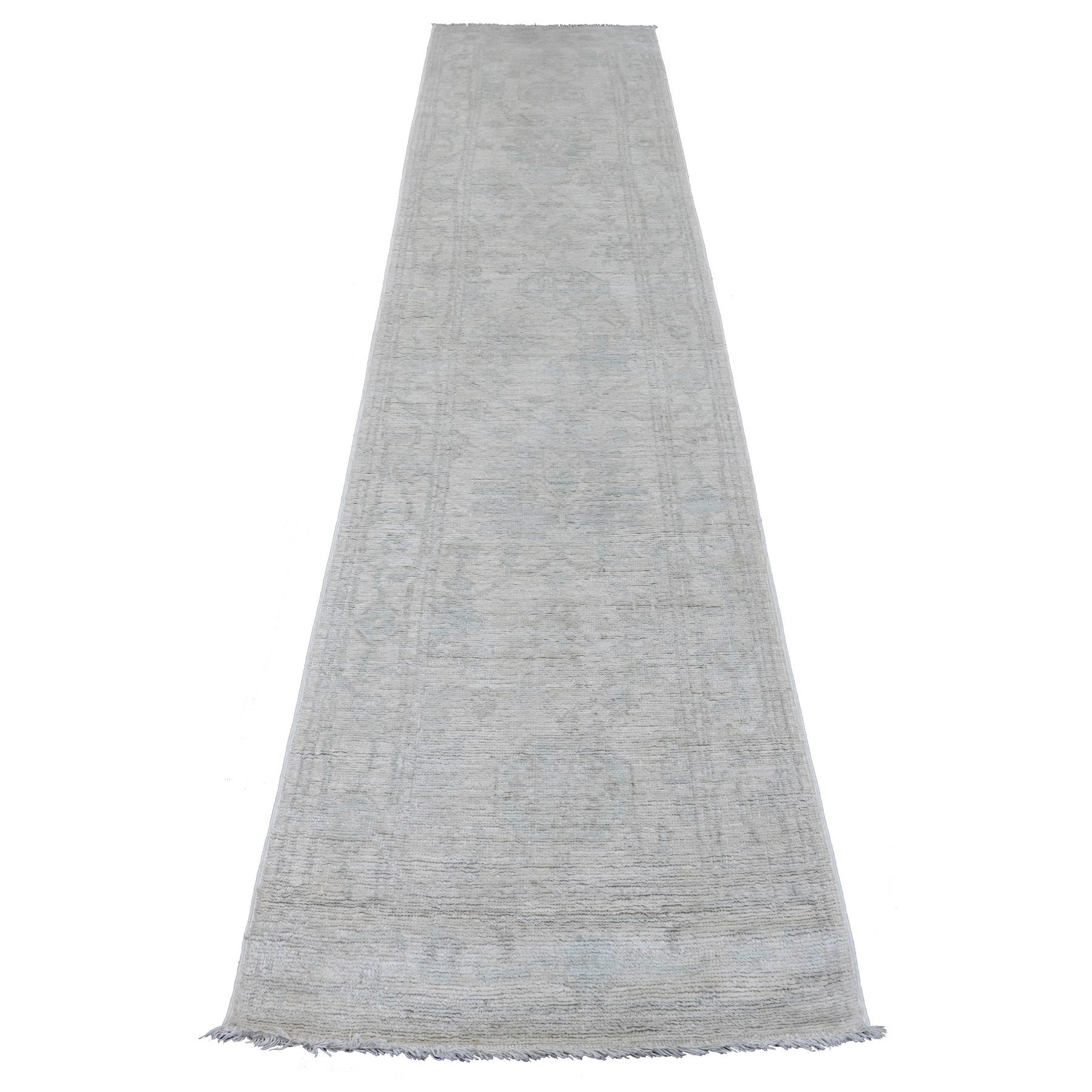 2'7"x11'7" Pastel Gray, Afghan Angora Oushak With Large Leaf Design, Natural Dyes, 100% Wool, Hand Knotted, Runner, Oriental Rug FWR539418