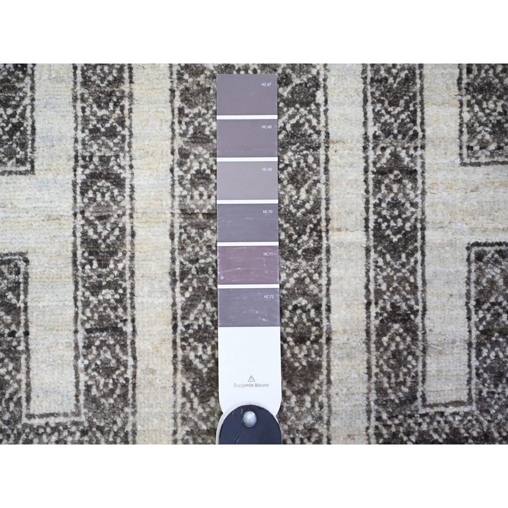 2'7"x11'7" Taupe Brown, Hand Knotted 100% Wool, Vegetable Dyes Fine Peshawar With Intricate Geometric Motifs Maze Design, Runner Oriental Rug FWR445704