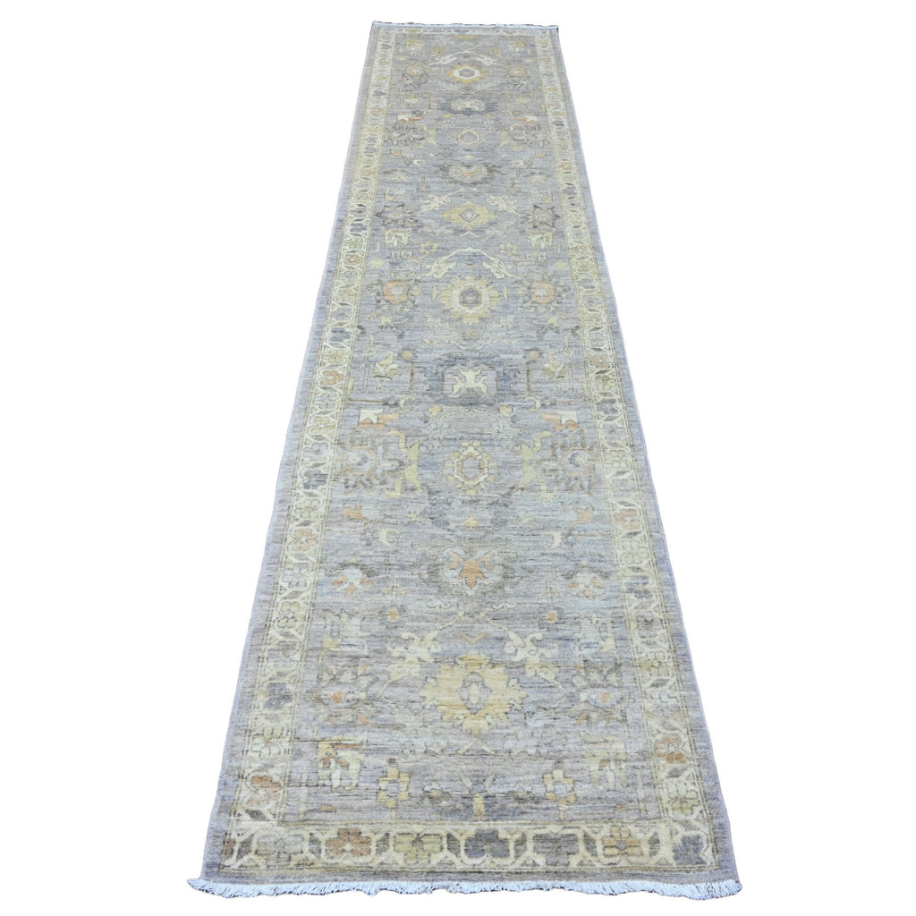 2'7"x11'8" Cloud Gray, Peshawar With Ziegler Mahal Design, Vegetable Dyes, High Mountain Wool, Hand Knotted, Runner, Oriental Rug FWR122106
