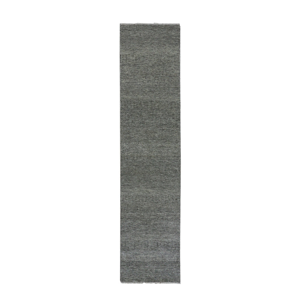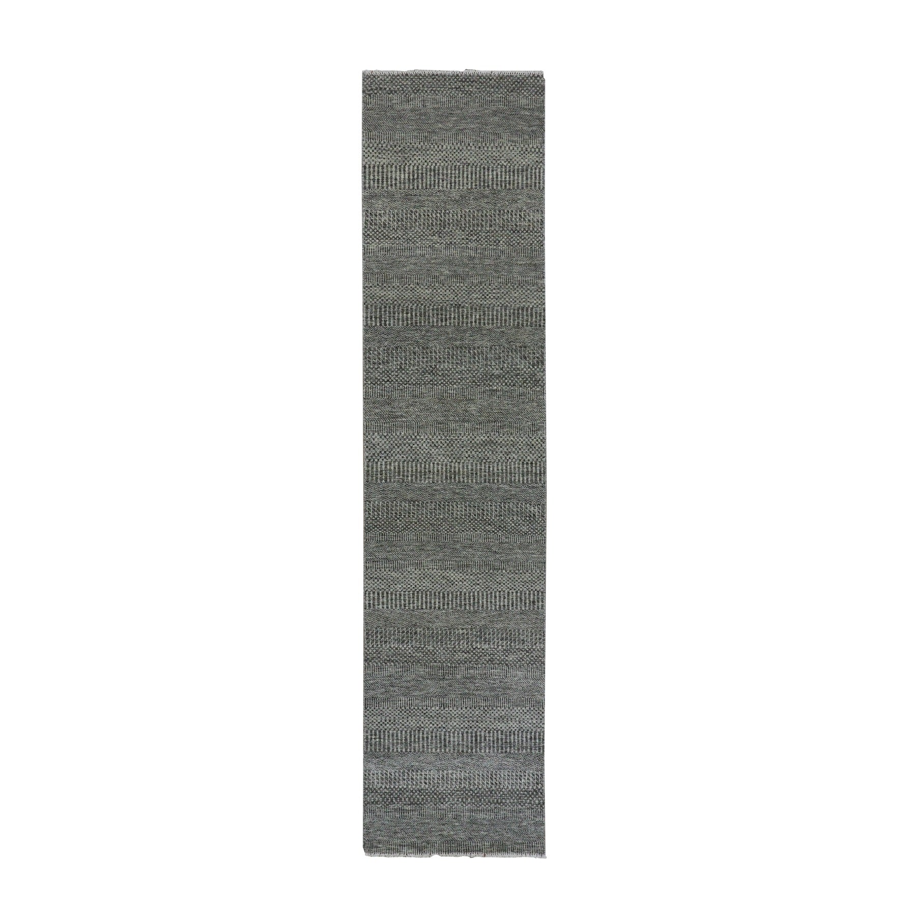 2'7"x11'8" Flint Gray, Modern Hand Knotted Grass Design, 100% Undyed Wool, Tone On Tone, Runner Oriental Rug FWR478410