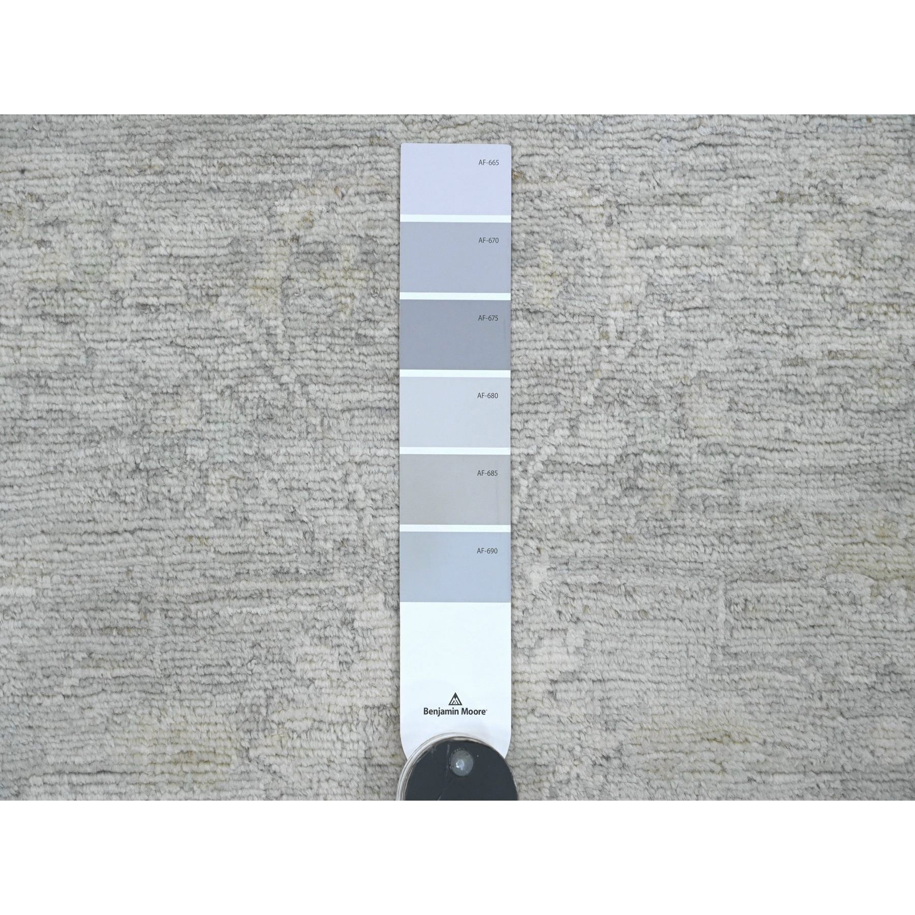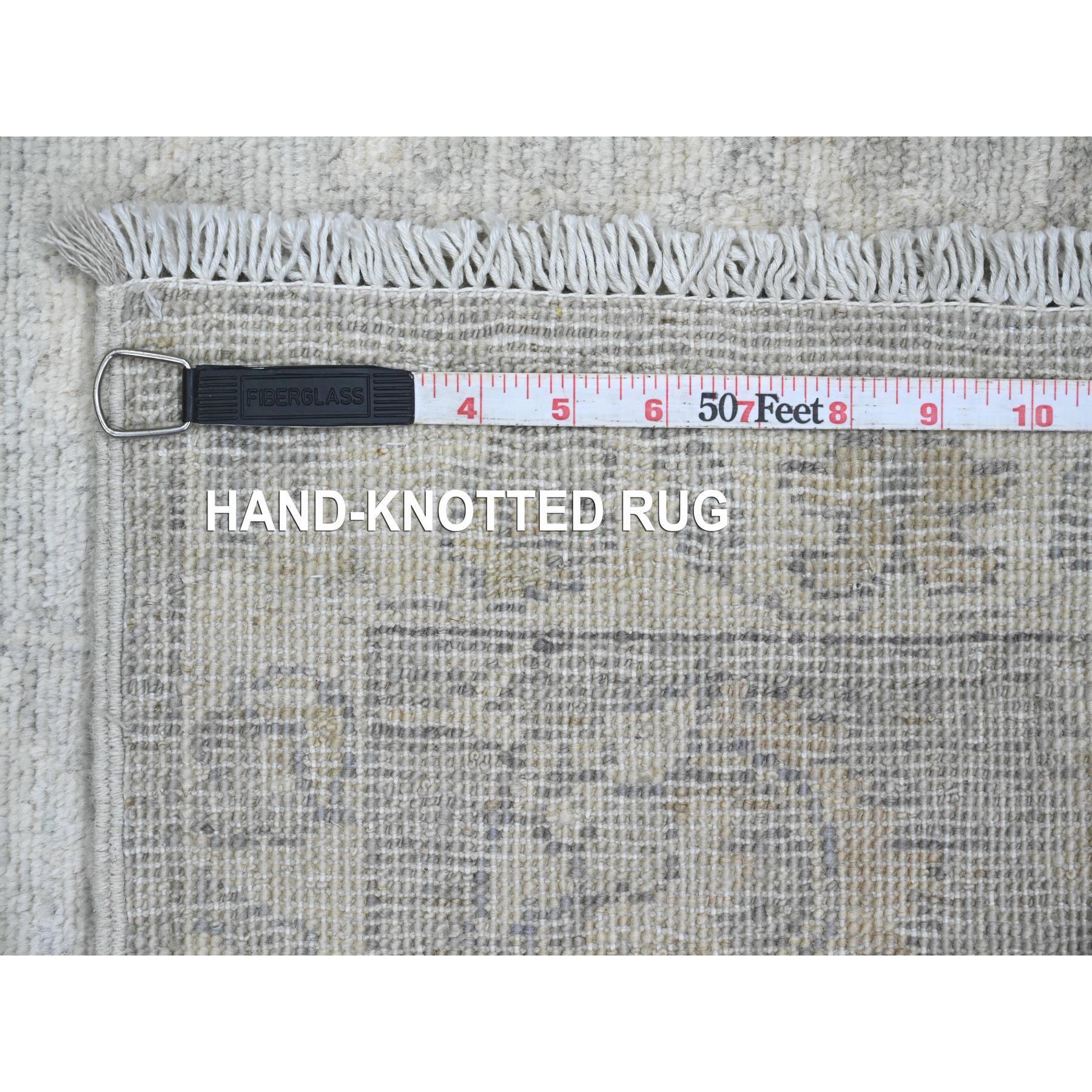 2'7"x11'9" Spanish Gray, Washed Out Peshawar With All Over Leaf Design, 100% Wool, Hand Knotted, Natural Dyes, Runner, Oriental Rug FWR124098