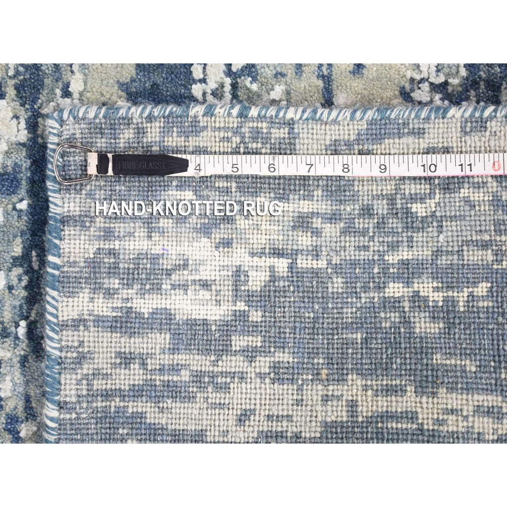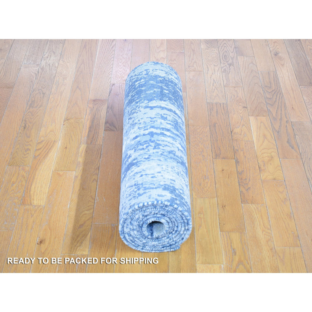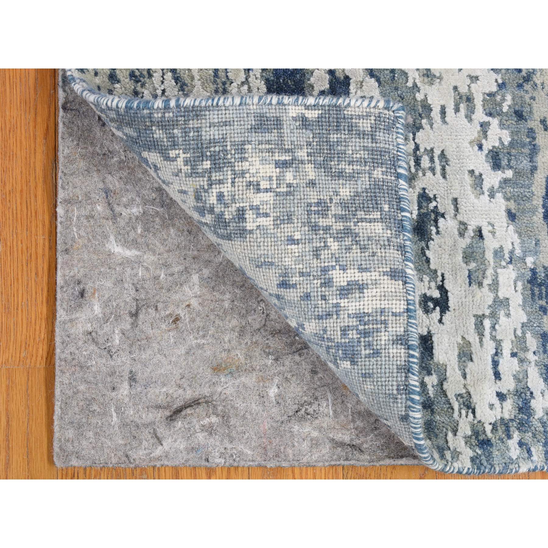 2'7"x12'1" Hand Knotted Abstract Design Wool And Real Silk Denim Blue Runner Oriental Rug FWR401892