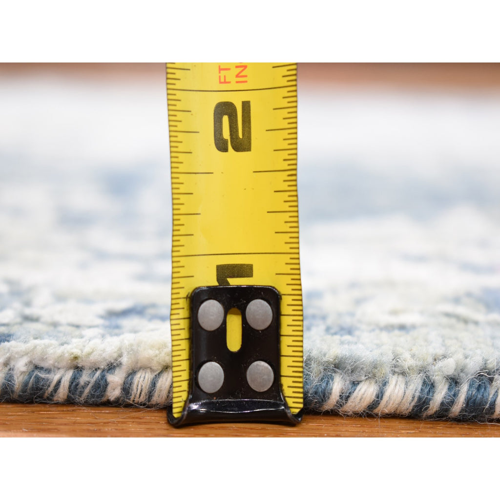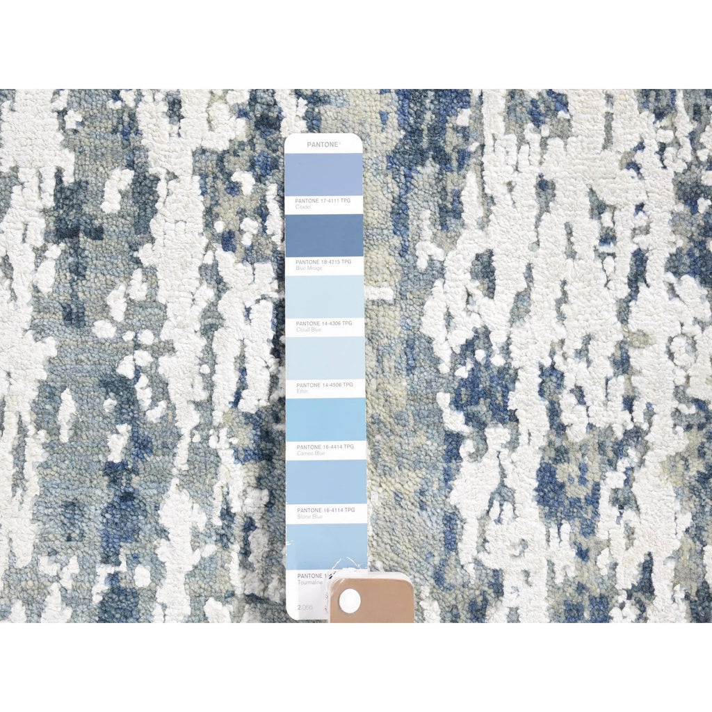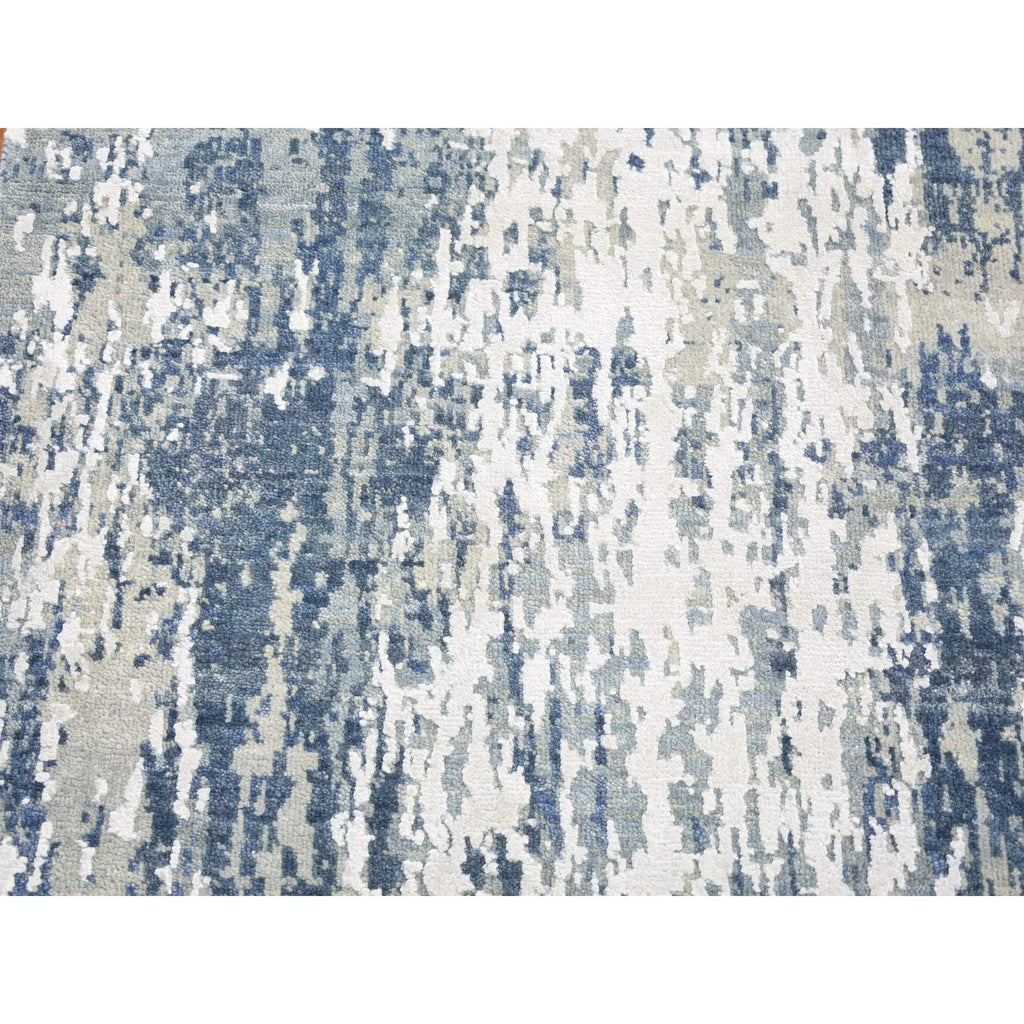 2'7"x12'1" Hand Knotted Abstract Design Wool And Real Silk Denim Blue Runner Oriental Rug FWR401892
