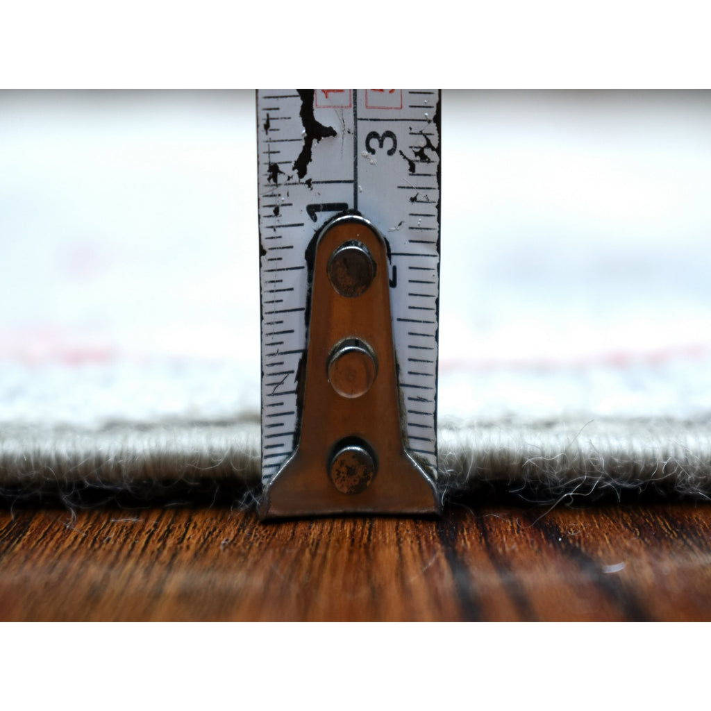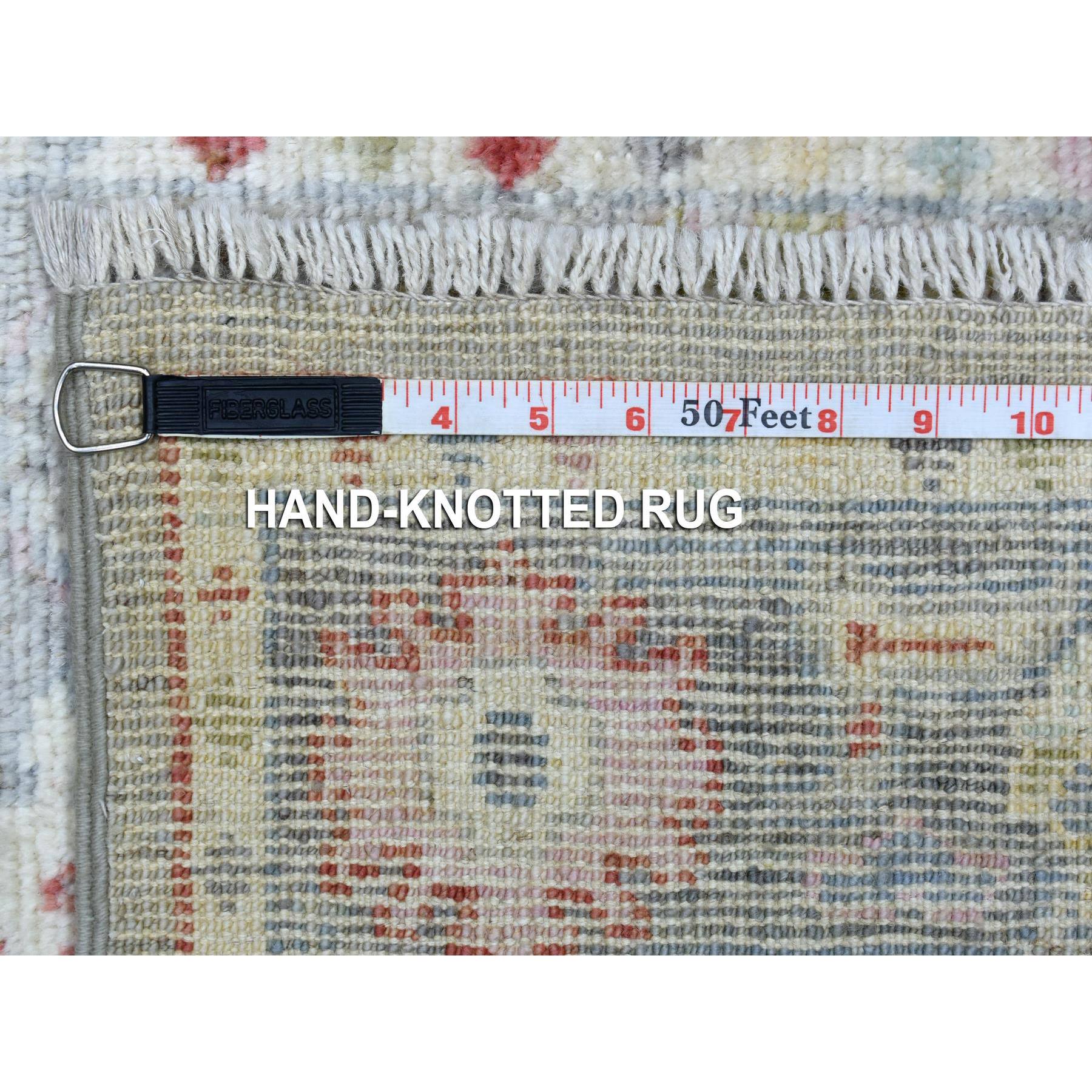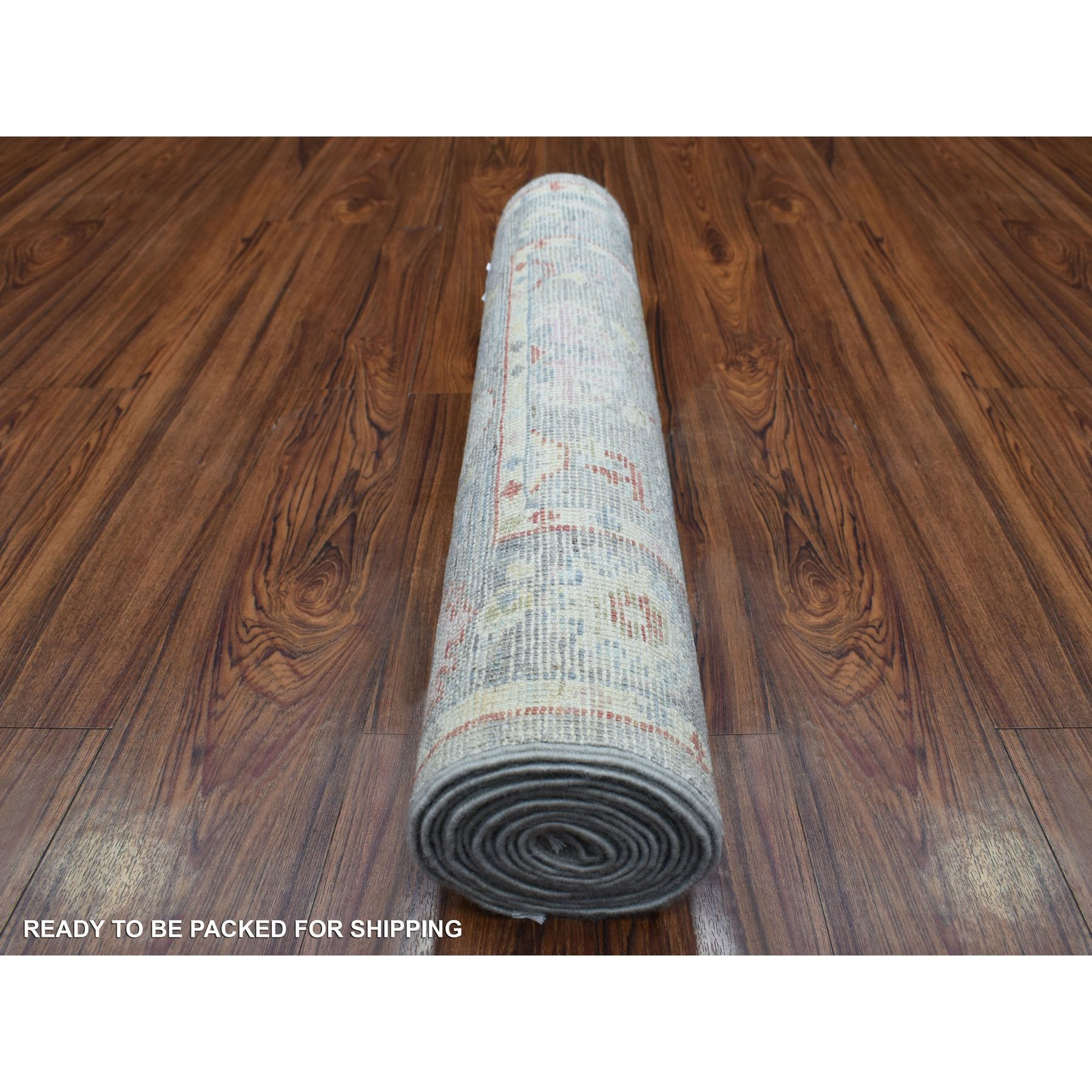 2'7"x12'2" Gray Angora Ushak With Bold Floral Pattern Pure Wool Hand Knotted Oriental Runner Rug FWR419292