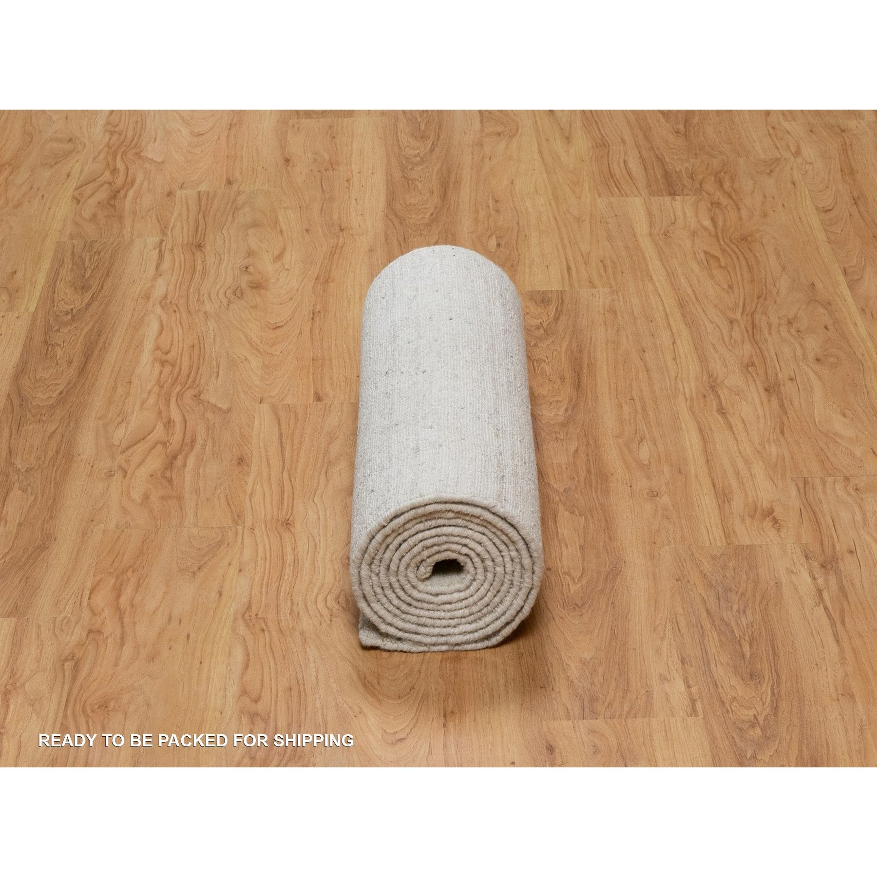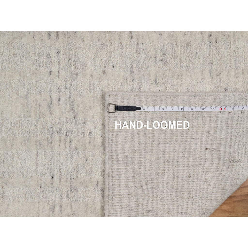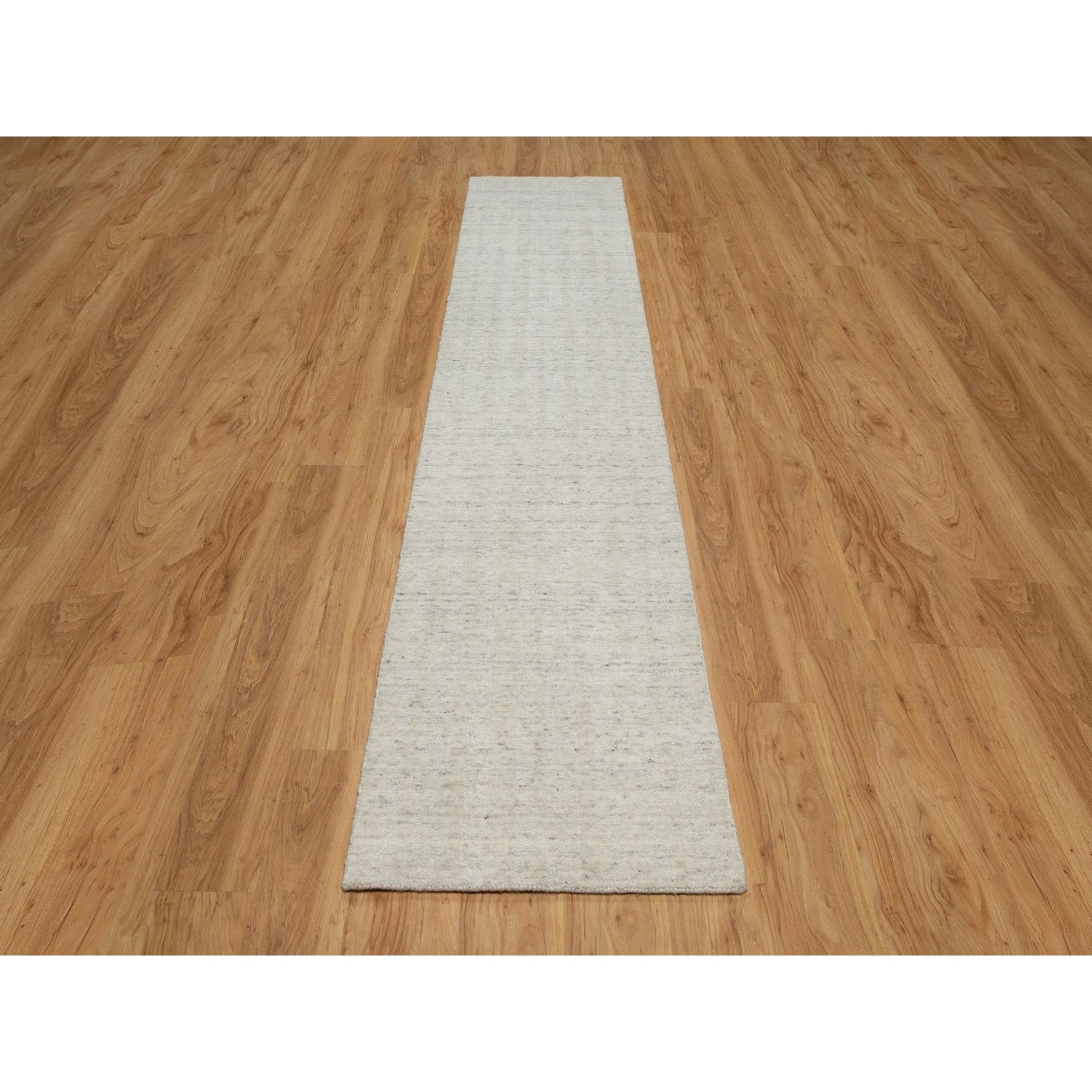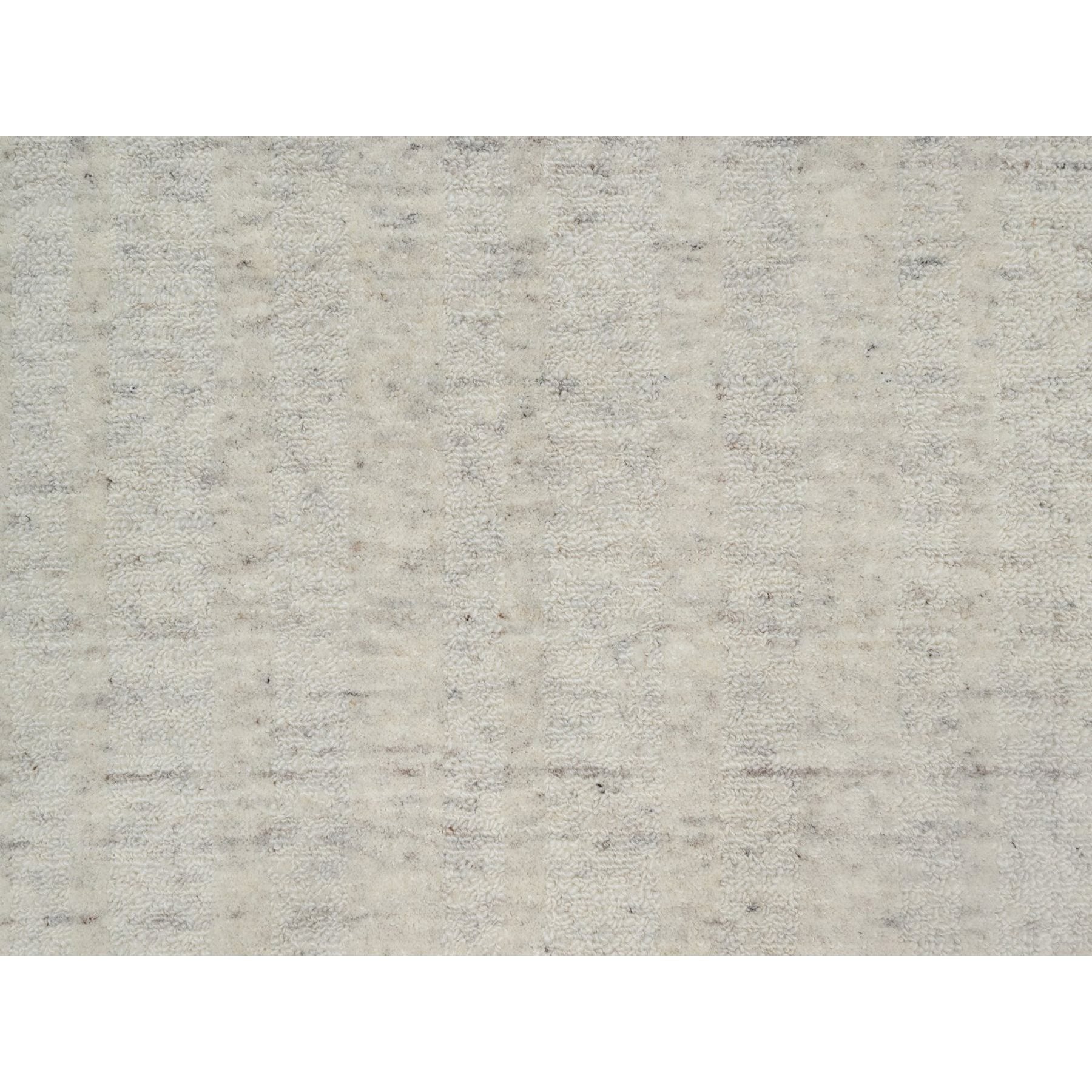 2'7"x12' Alabaster White, Salt And Pepper Effect With Vertical Stripes Design, Undyed Natural Wool, Hand Loomed, Runner, Oriental Rug FWR550008