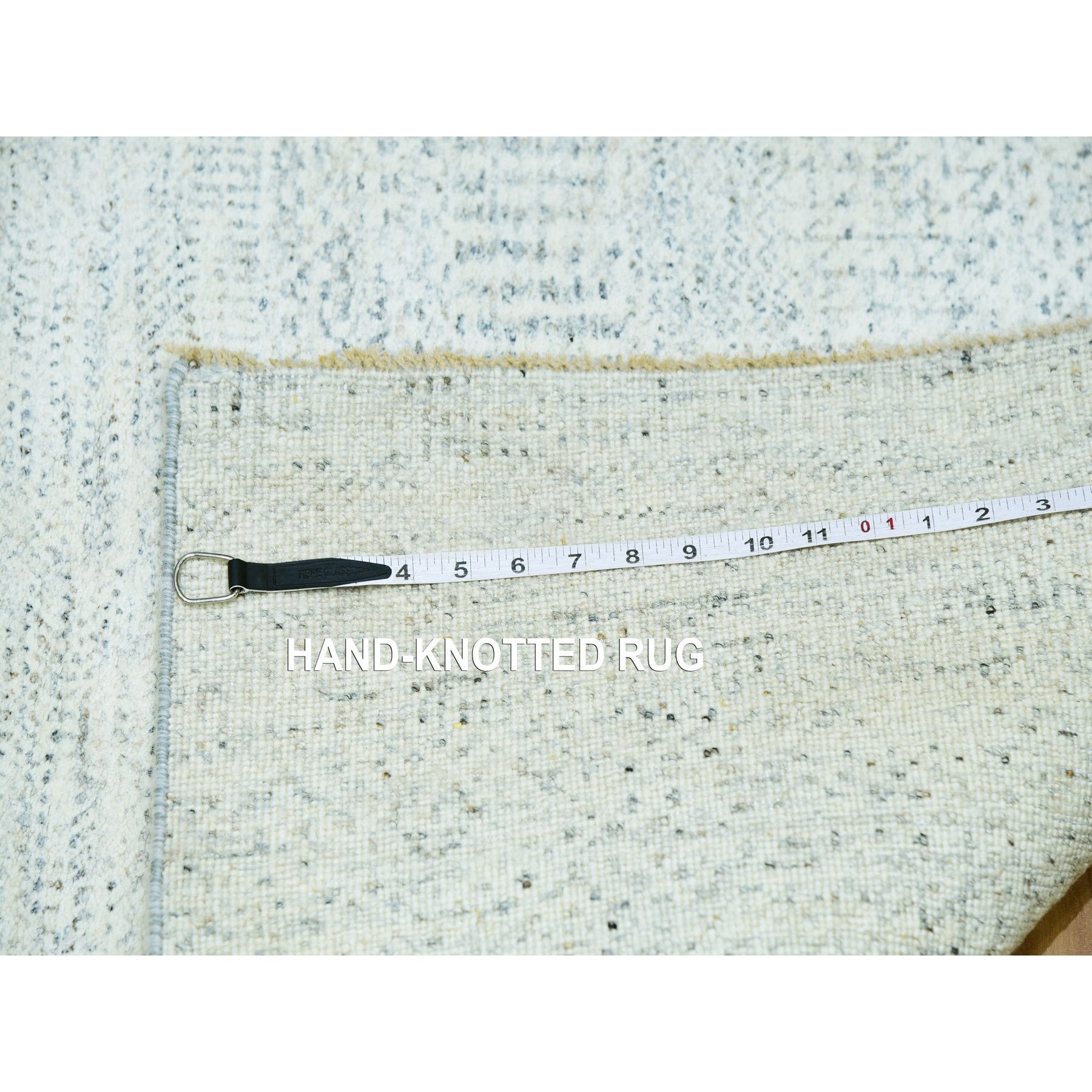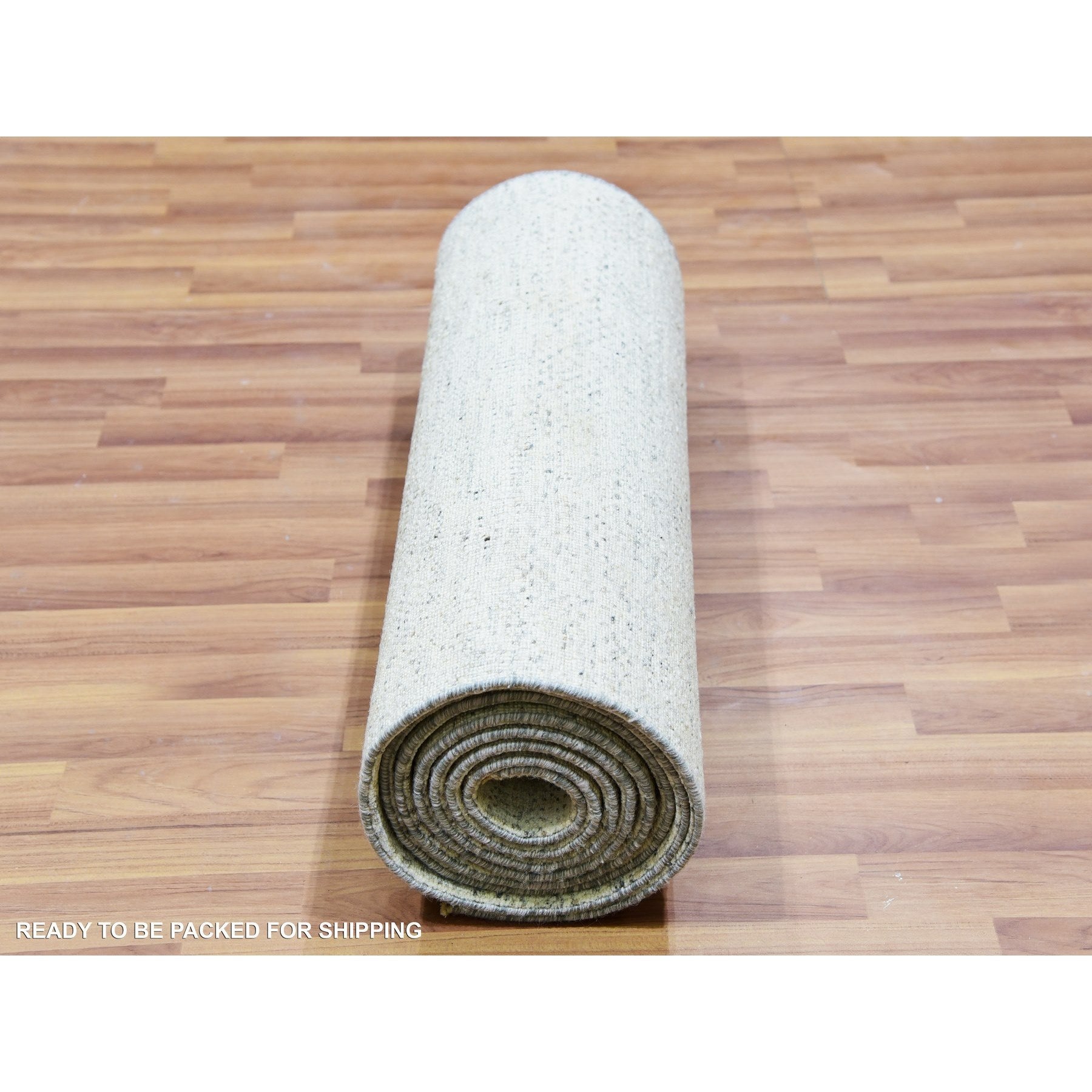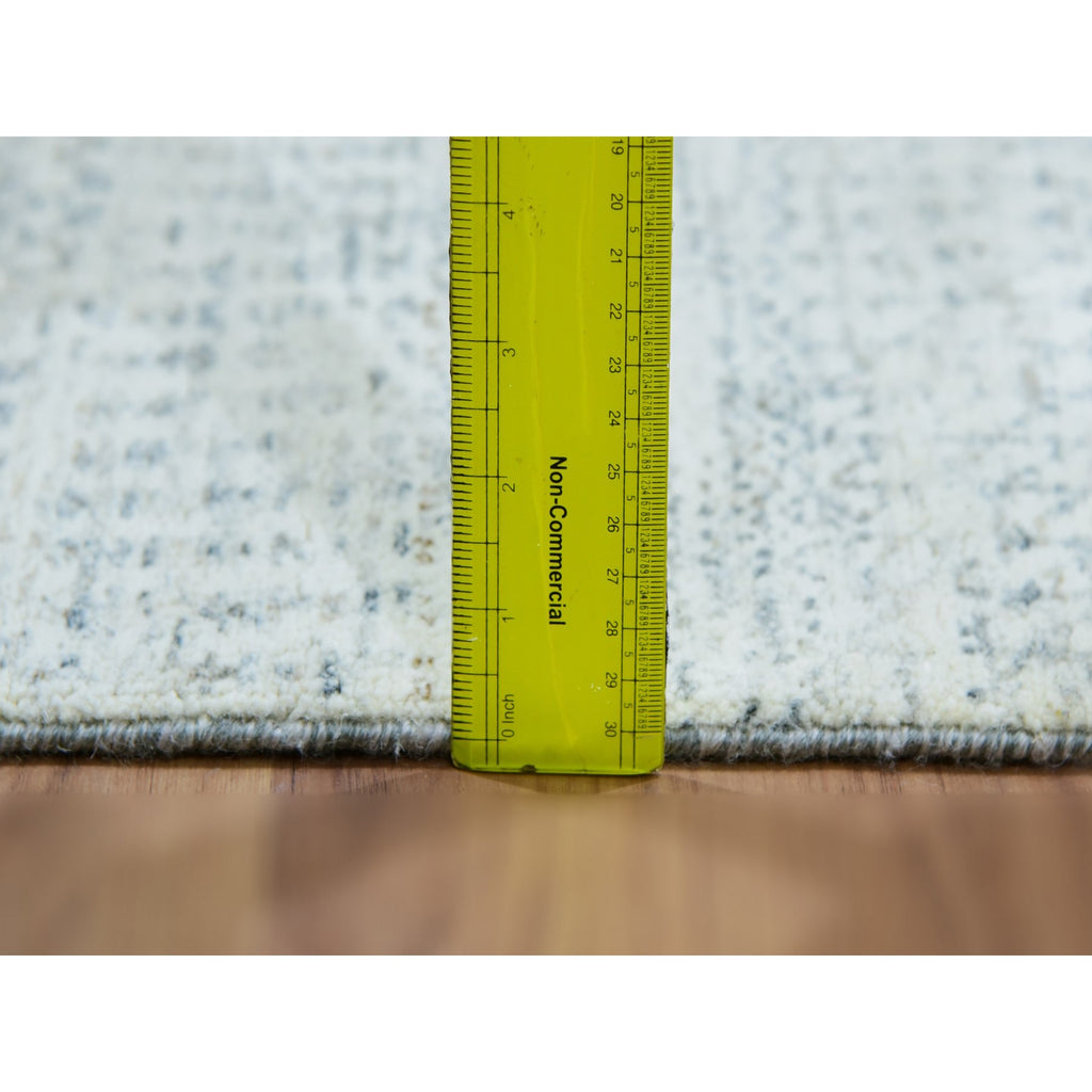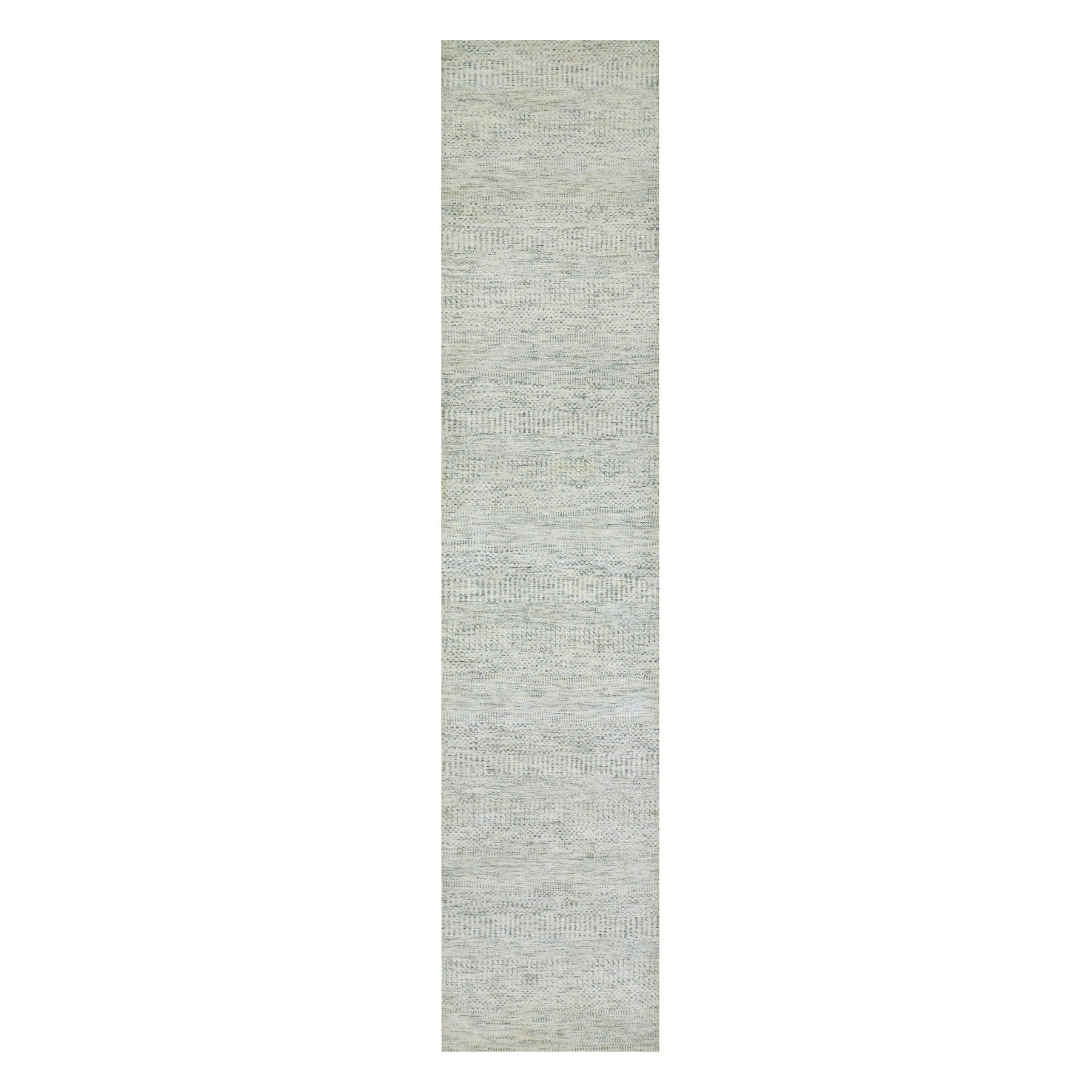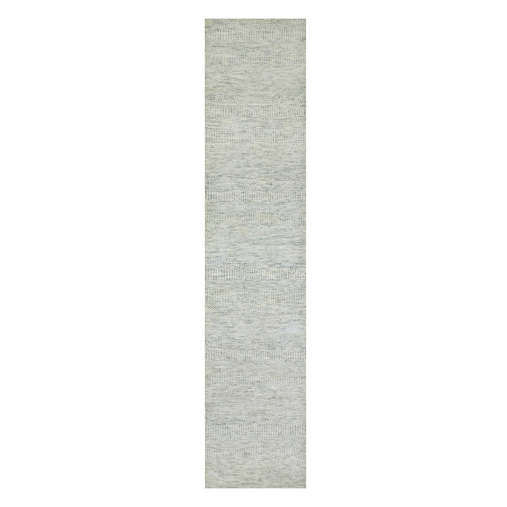 2'7"x12' Aloof And Smoke Gray, Tone On Tone, Modern Undyed Grass Design, All Wool, Hand Knotted, Runner Oriental Rug FWR478968