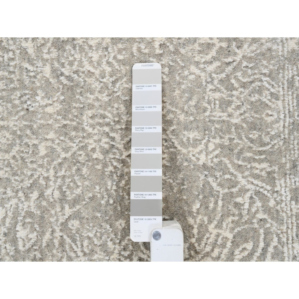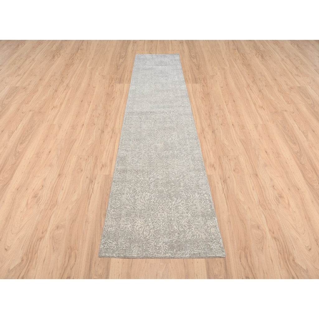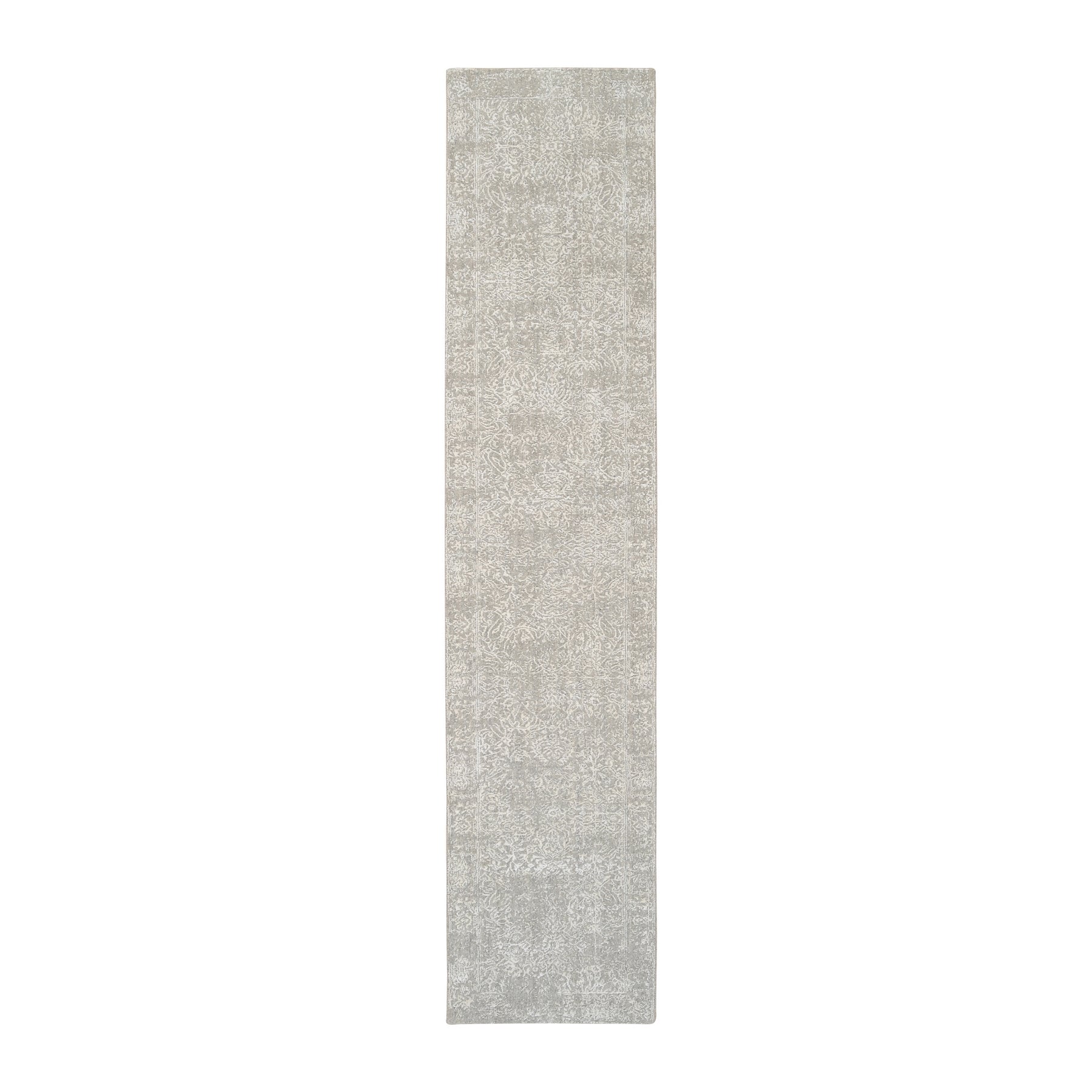 2'7"x12' Beige Wool And Plant Based Silk Hand Loomed Fine Jacquard With Erased Design Oriental Runner Rug FWR379668