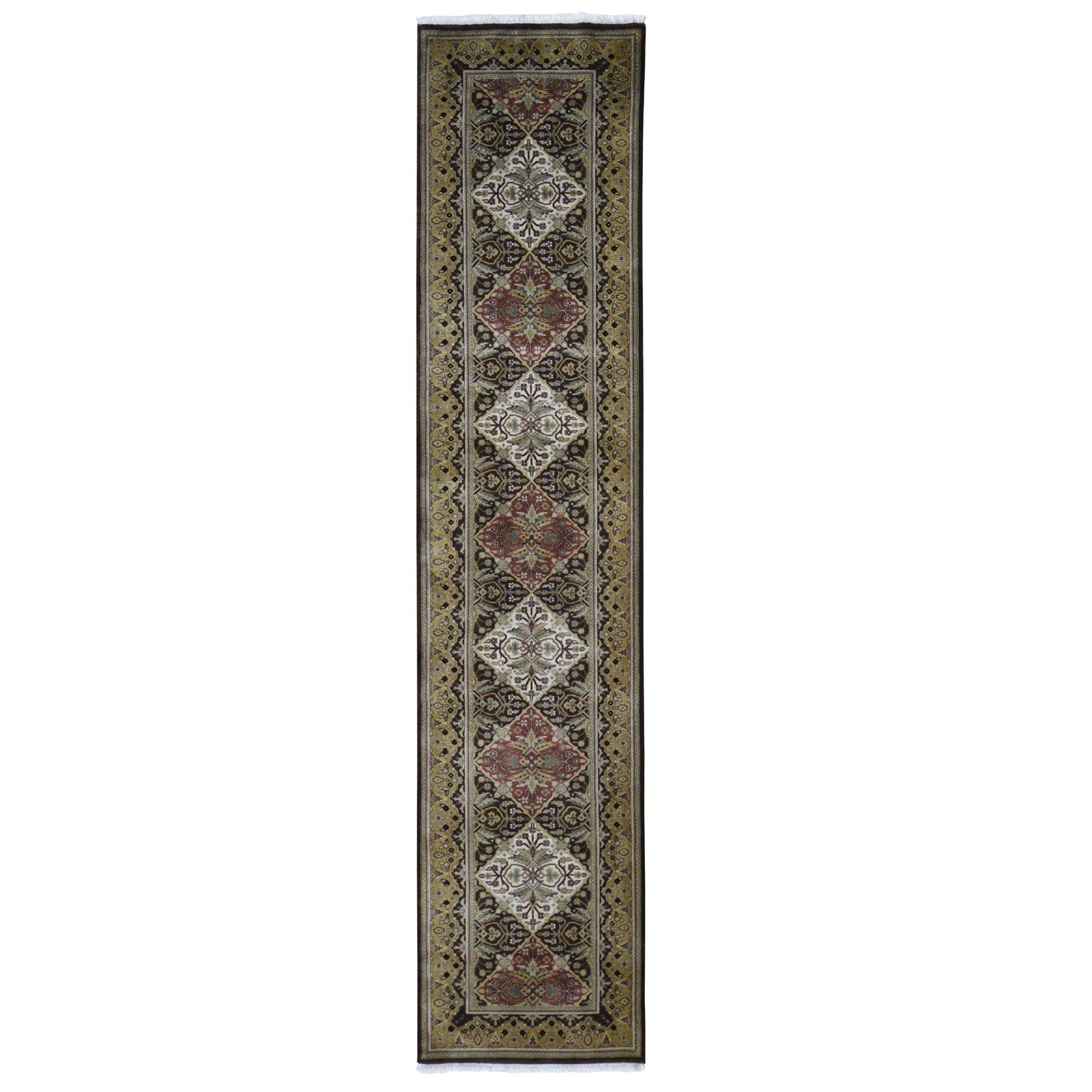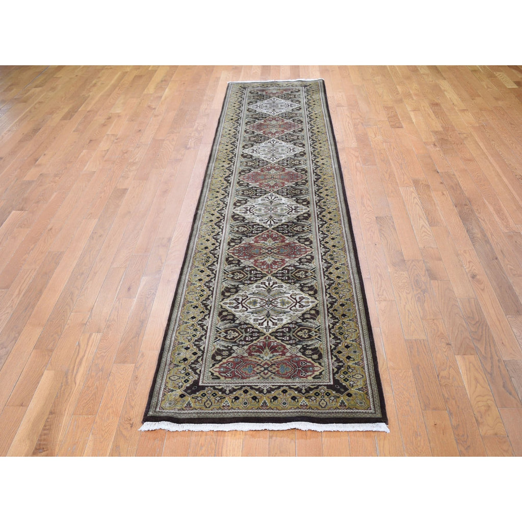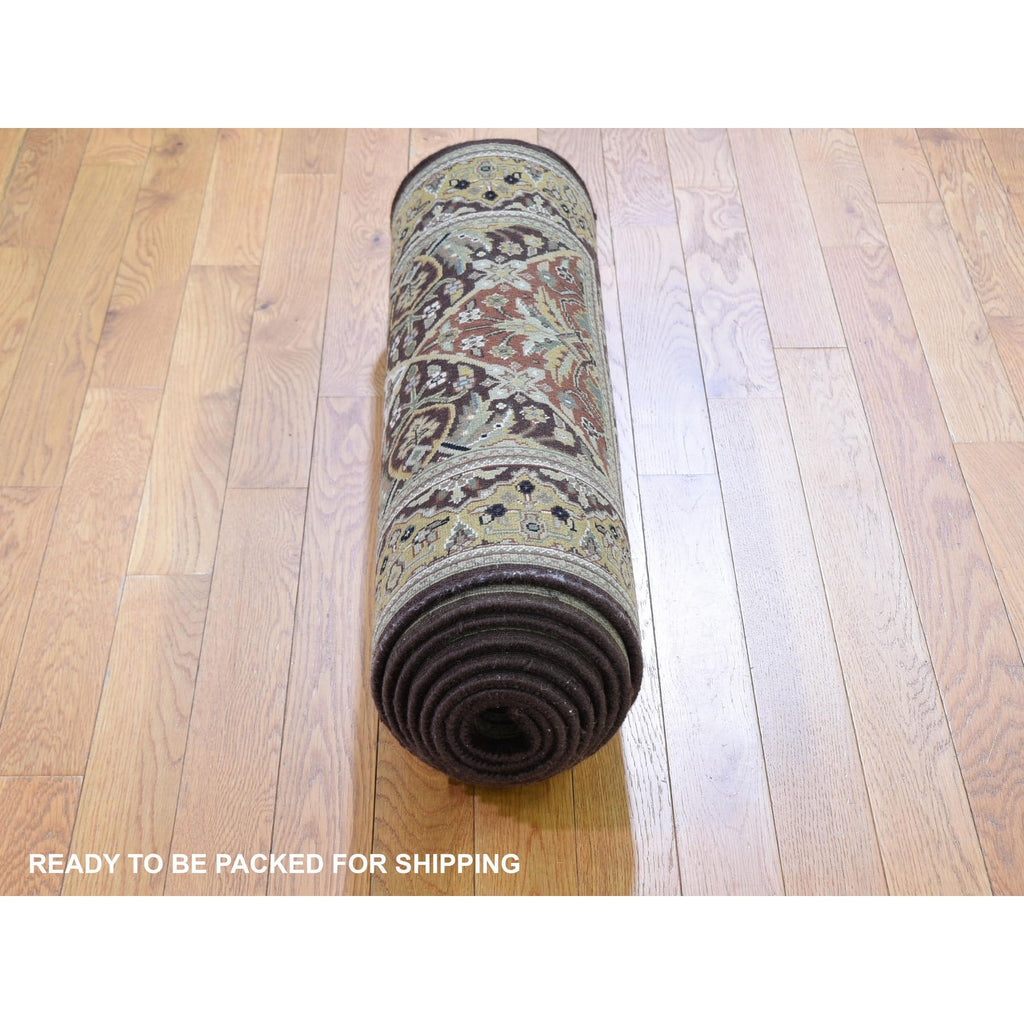 2'7"x12' Brown Tabriz Garden Design Runner Hand Knotted Pure Wool Oriental Rug FWR355206