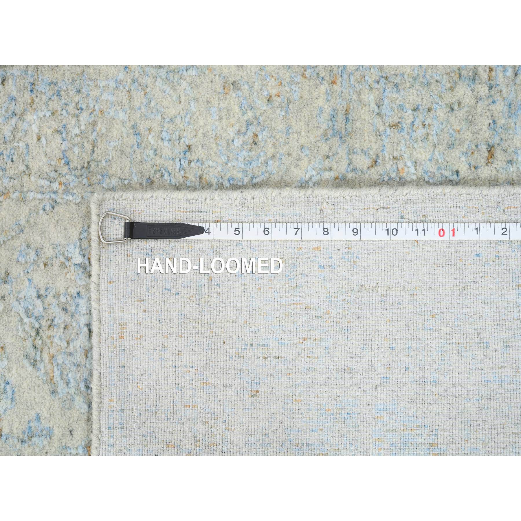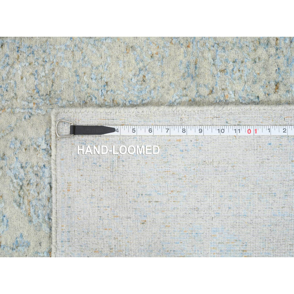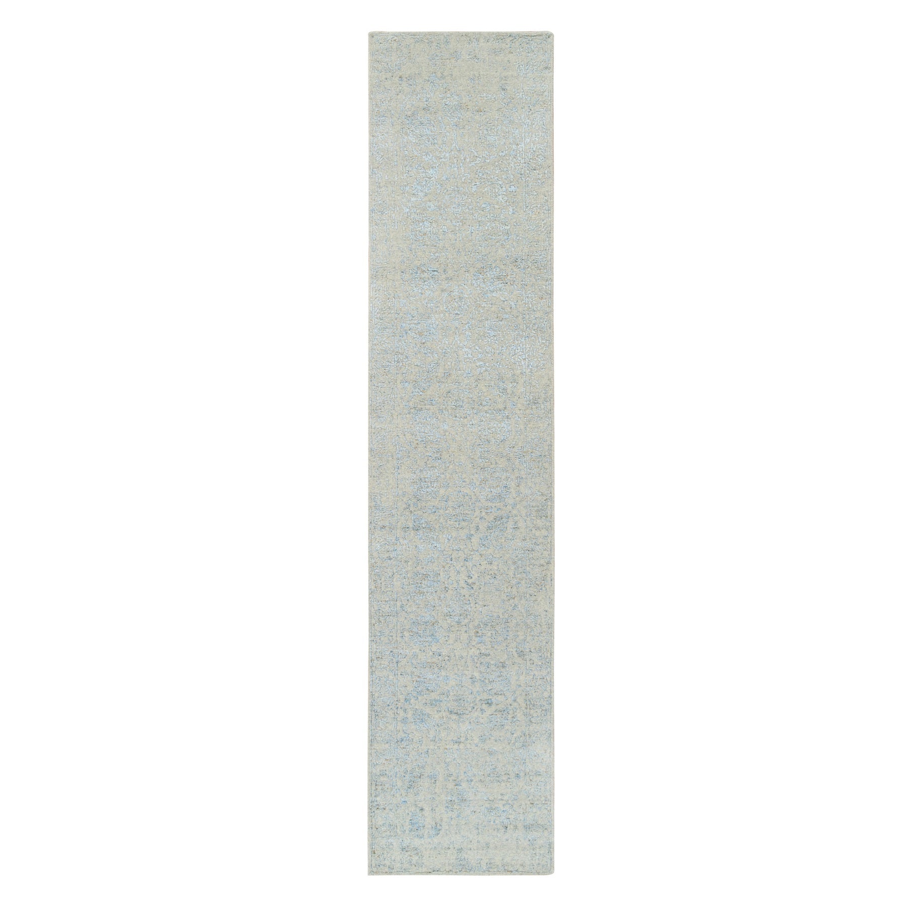 2'7"x12' Gray With Touches Of Blue, Tabriz Design, Wool And Plant Based Silk Jacquard Hand Loomed, Runner Oriental Rug FWR387312