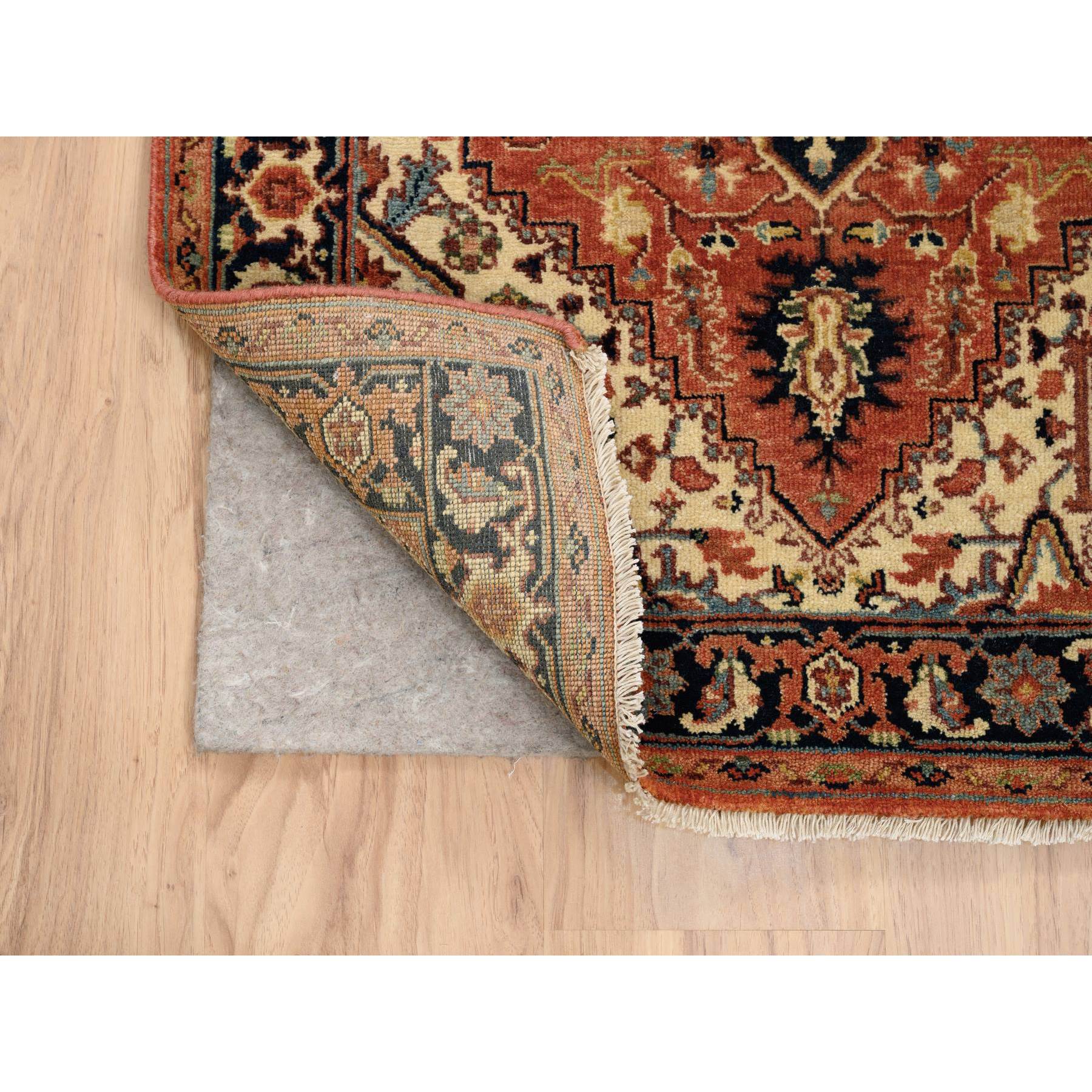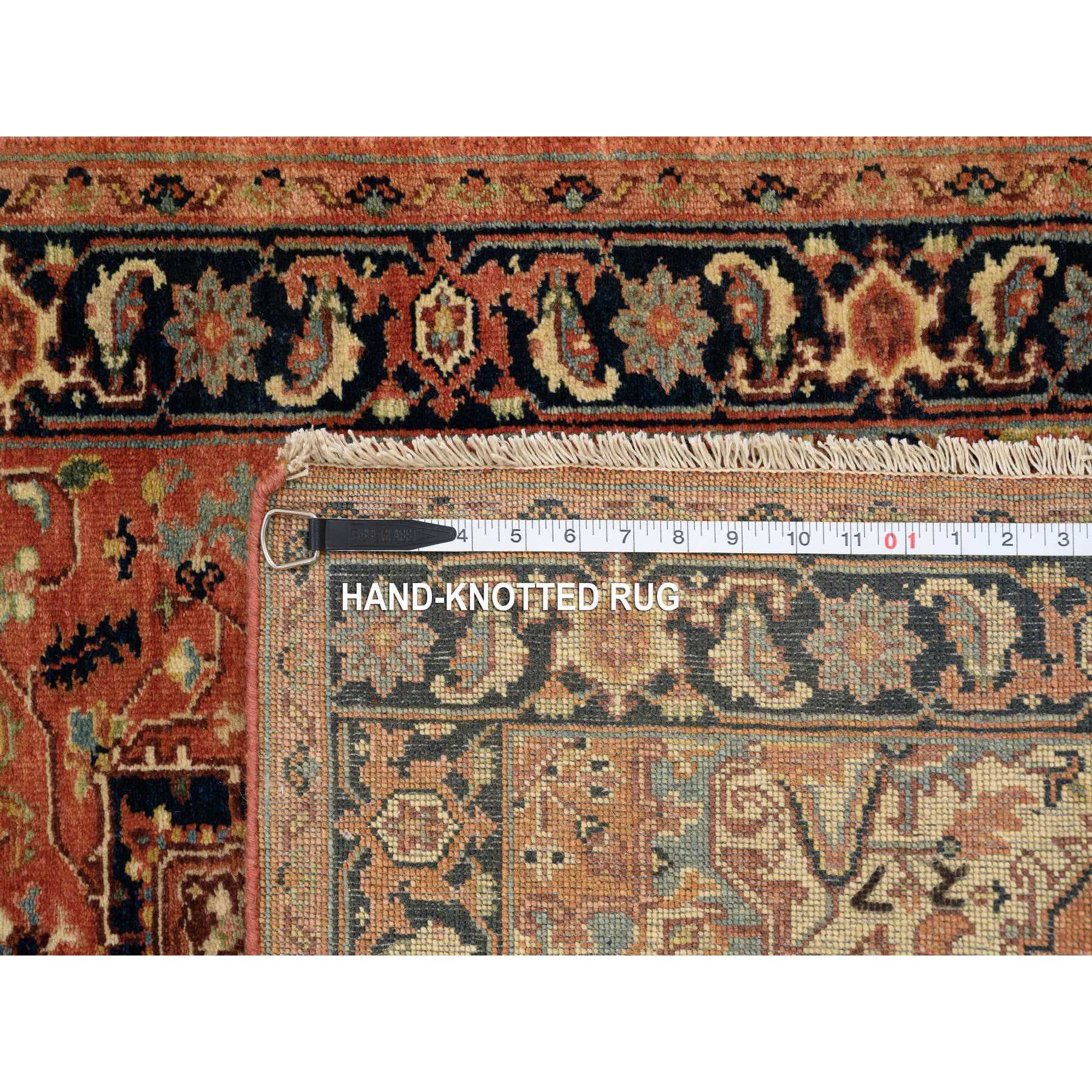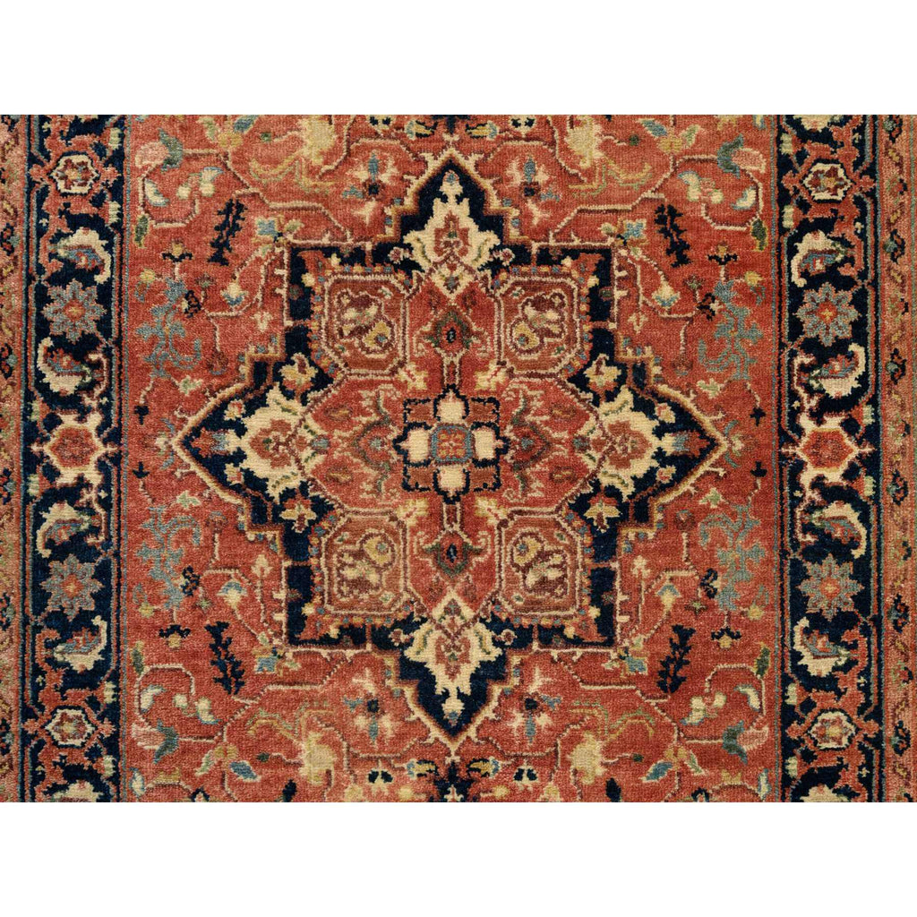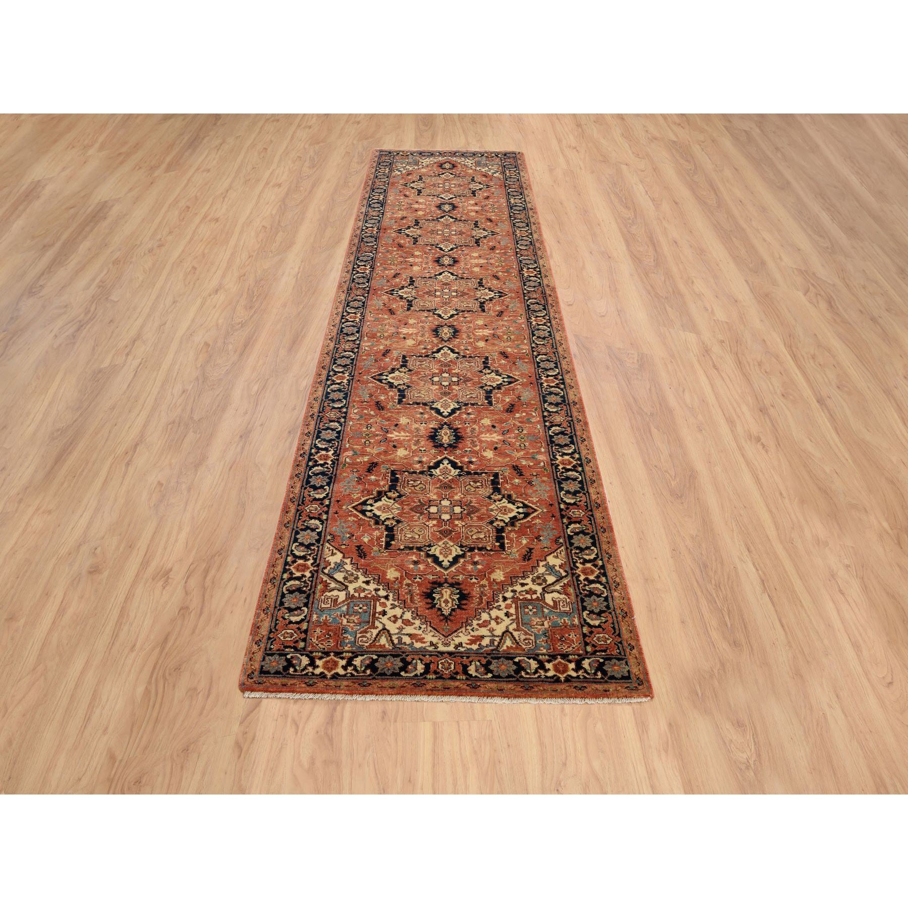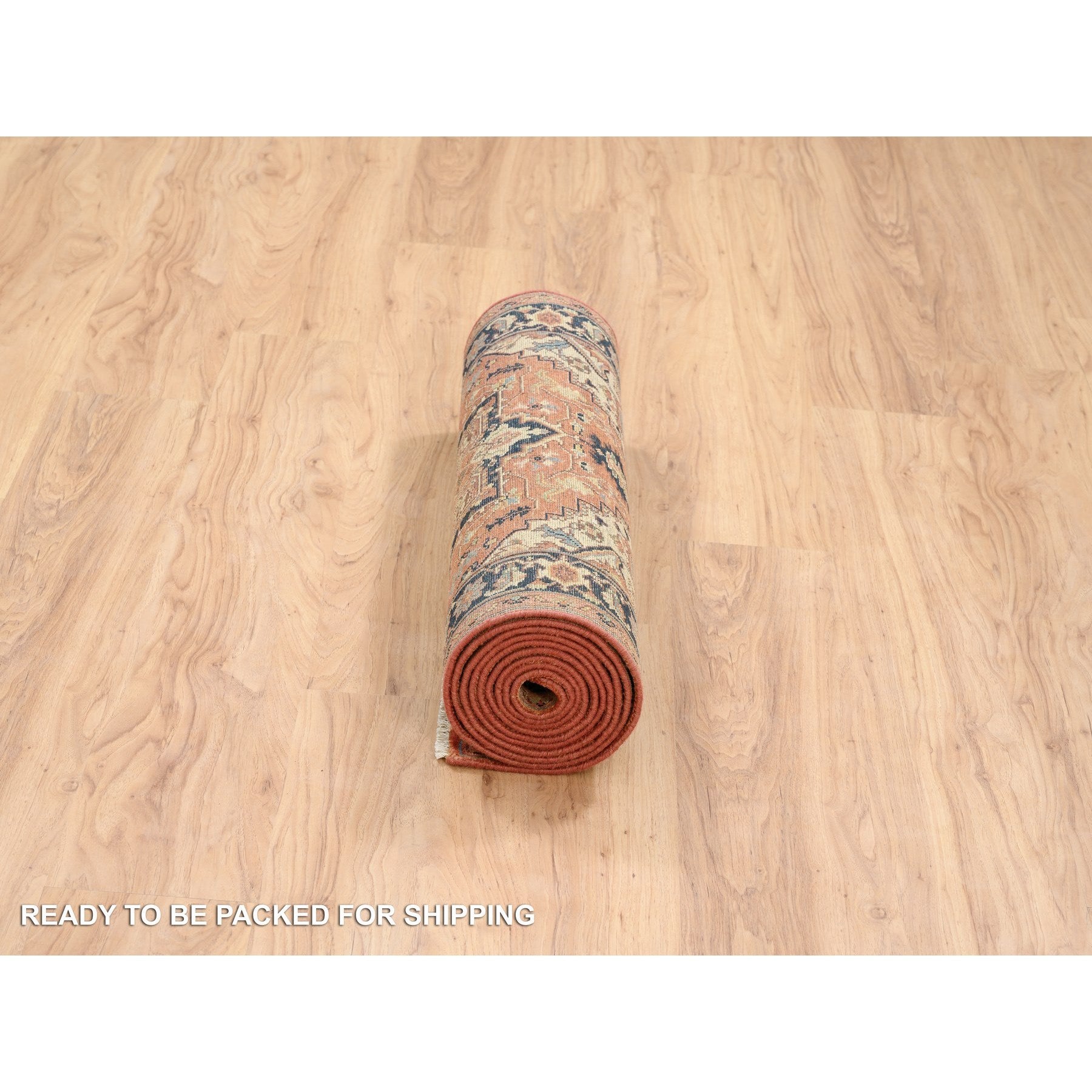2'7"x12' Terracotta Red, Pure Wool Hand Knotted Antiqued Fine Heriz Re-creation, Dense Weave Natural Dyes, Runner Oriental Rug FWR385500