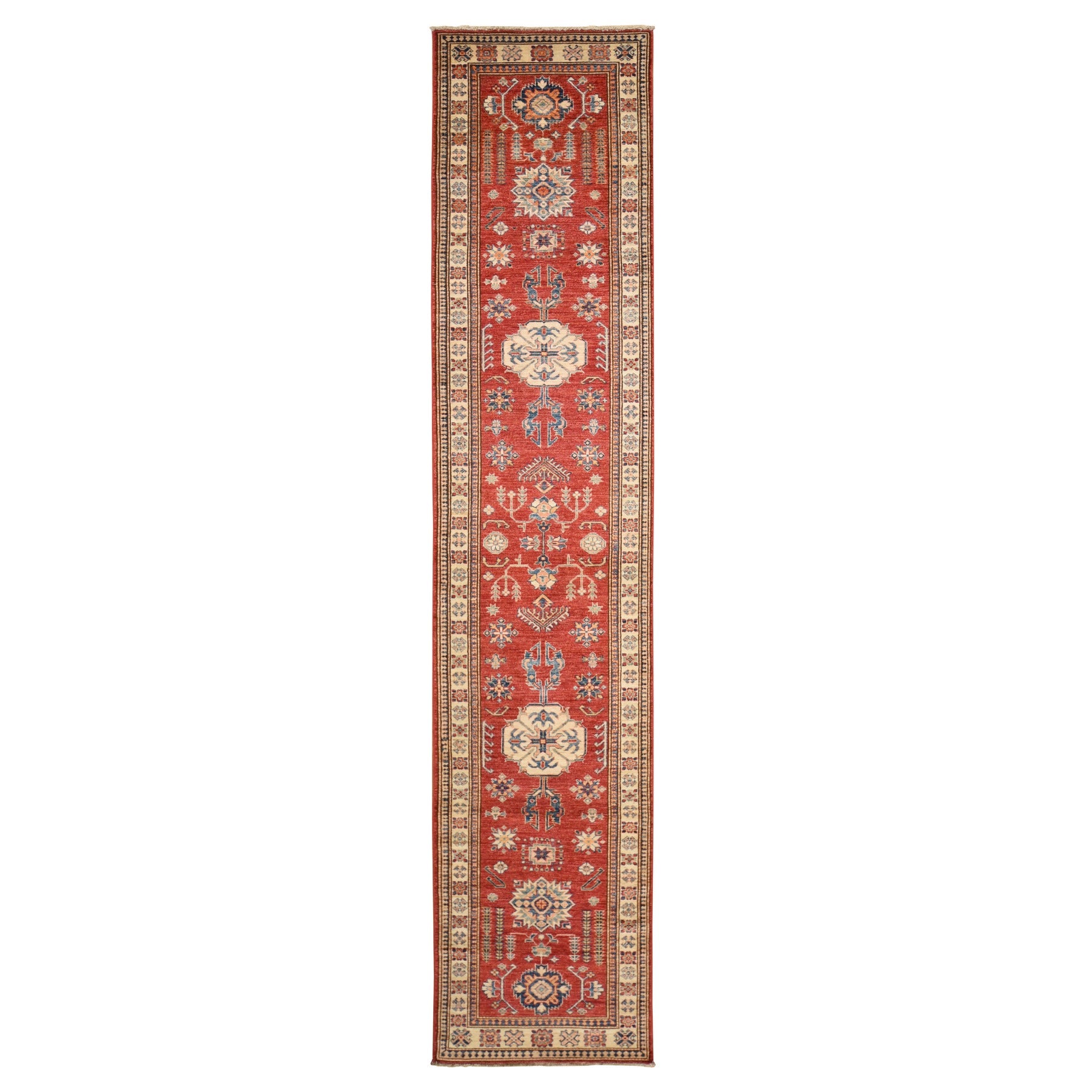 2'7"x13'1" Carnelian Red, Afghan Super Kazak, Hand Knotted, Shiny Wool, Vegetable Dyes, Runner, Oriental Rug FWR469506