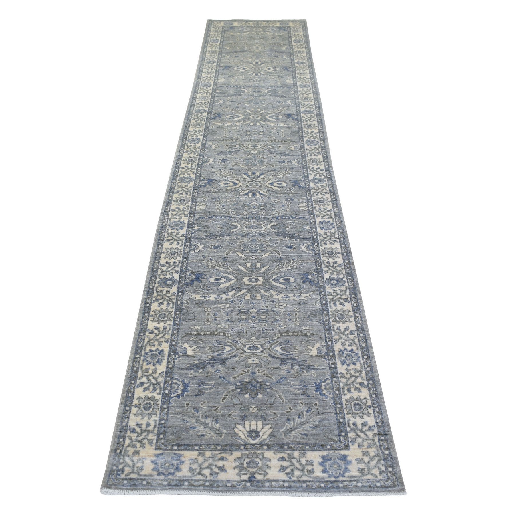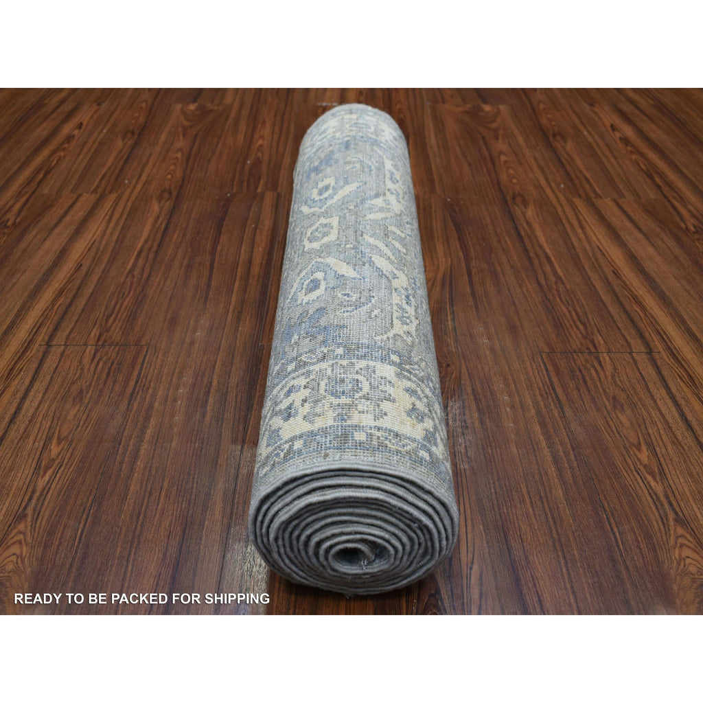 2'7"x13'1" Gray, Afghan wool Natural Dyes Hand Knotted, Densely Woven Fine Peshawar With Ziegler Mahal Design, Runner Oriental Rug FWR427824