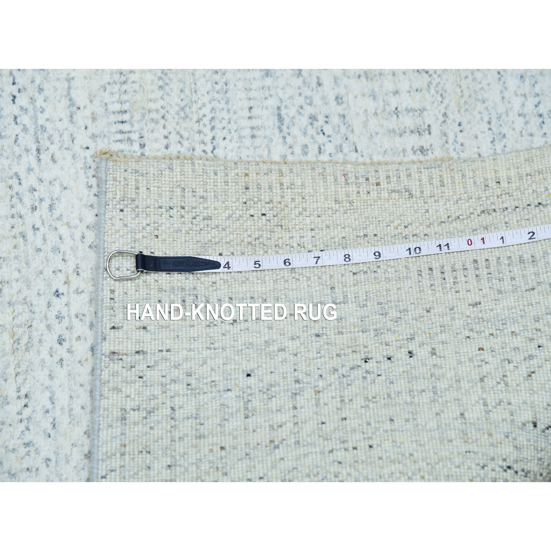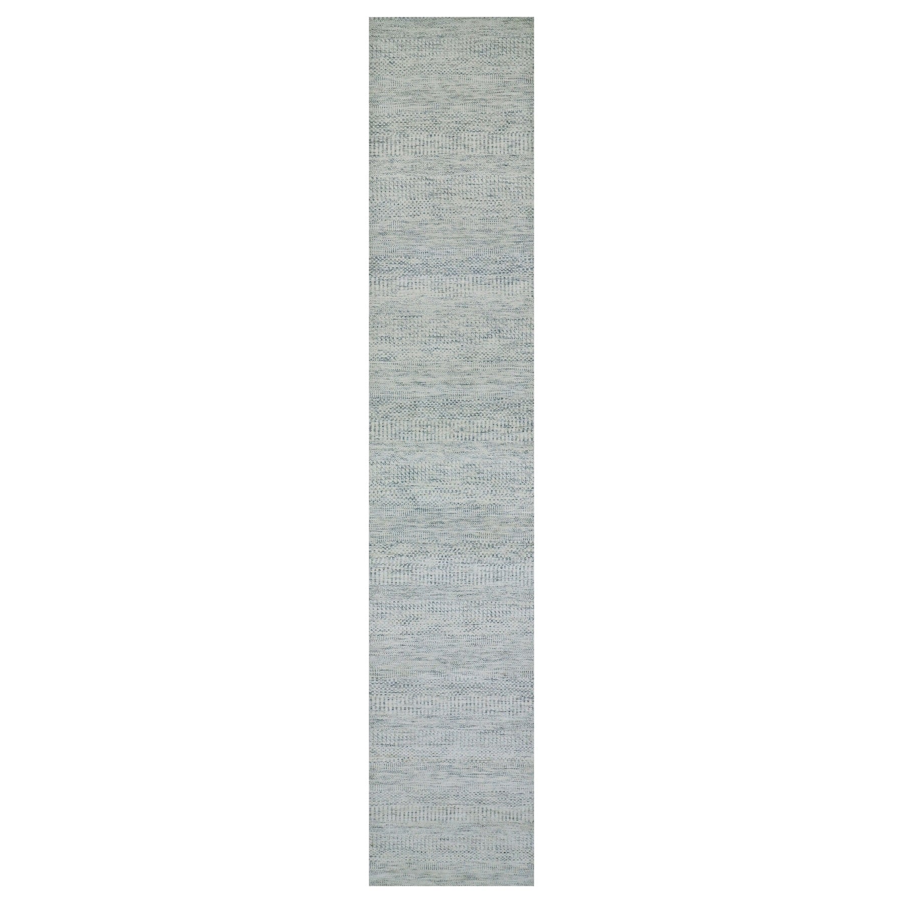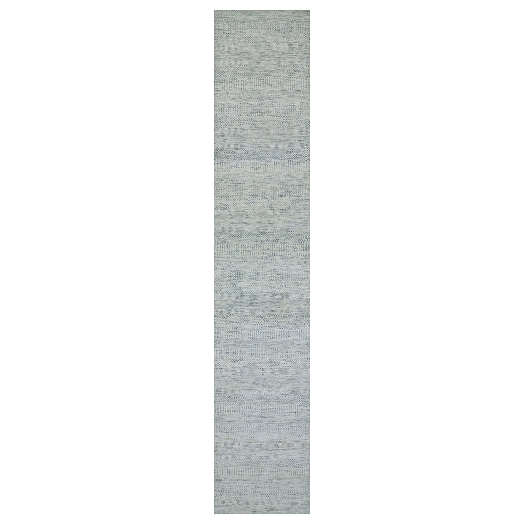 2'7"x13'9" Owl Gray, Tone On Tone Hand Knotted Grass Design, Modern Shabby Chic Undyed Pure Shiny Wool, Oriental Runner Rug FWR478974