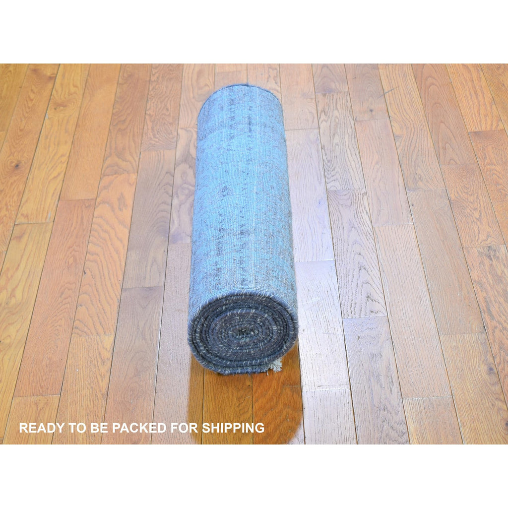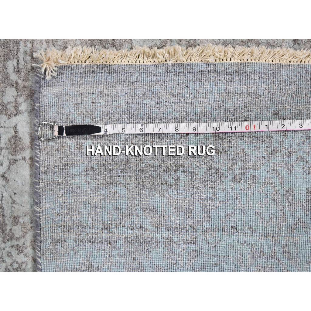 2'7"x14' Seafoam Green Tone On Tone Wool And Silk Broken Persian Design Hand Knotted Runner Oriental Rug FWR358230