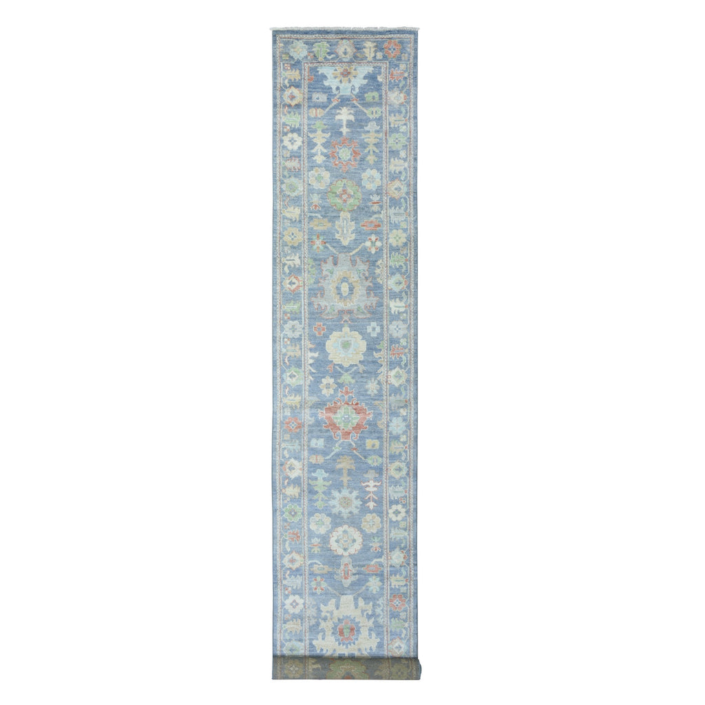 2'7"x15'10" Light Blue, Soft Wool Hand Knotted, Afghan Angora Oushak With All Over Colorful Flowers Natural Dyes, Xl Runner Oriental Rug FWR434520
