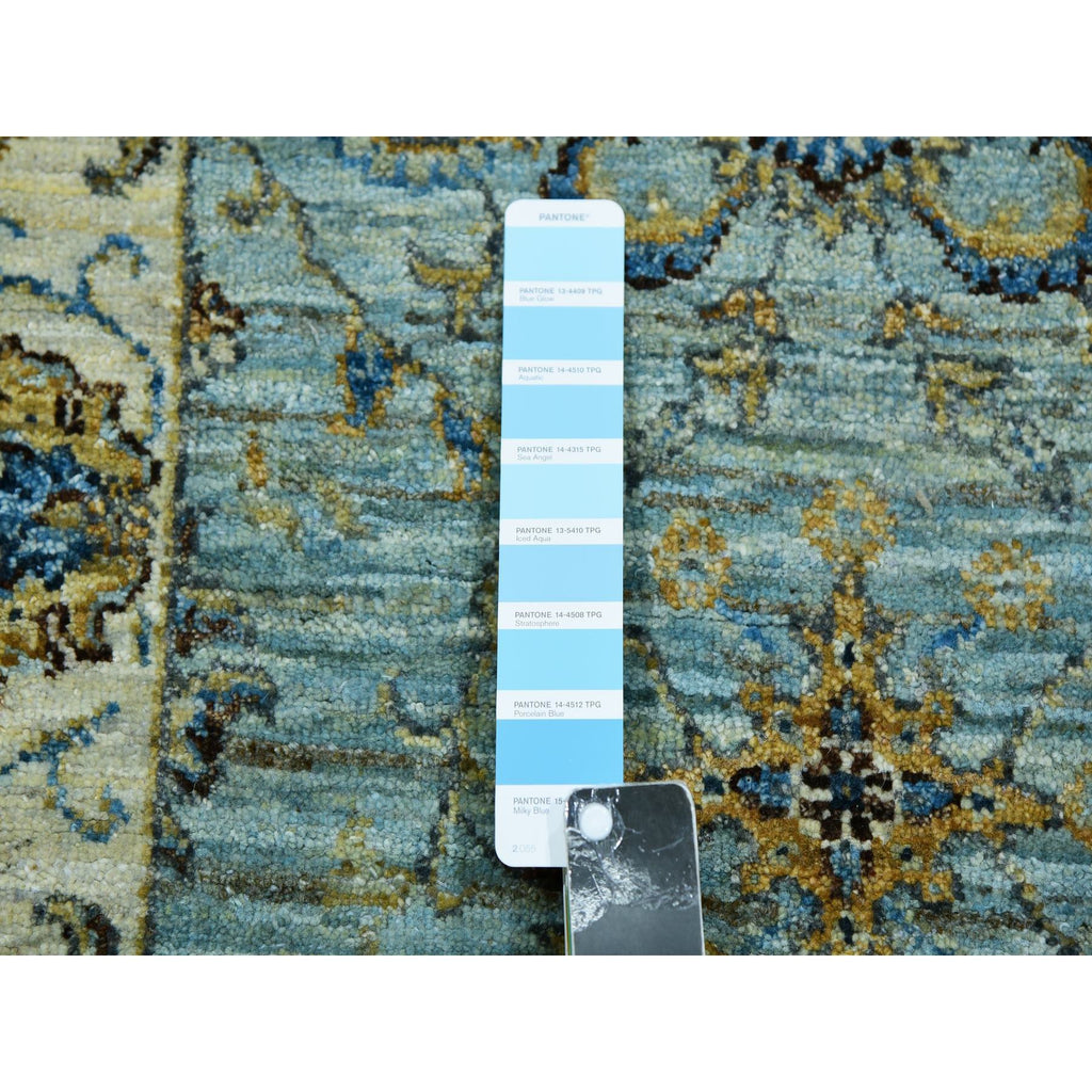 2'7"x15'10" Porcelain Blue, Hand Knotted Vegetable Dyes, Densely Woven, Extra Soft Wool, Agra Shah Abbas With All Over Flower Motifs, Xl Runner Oriental Rug FWR456204