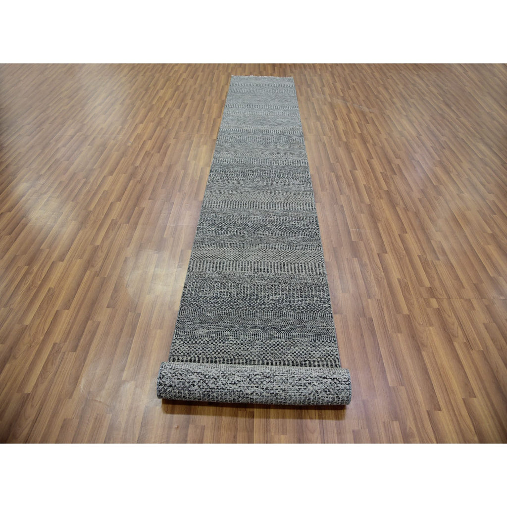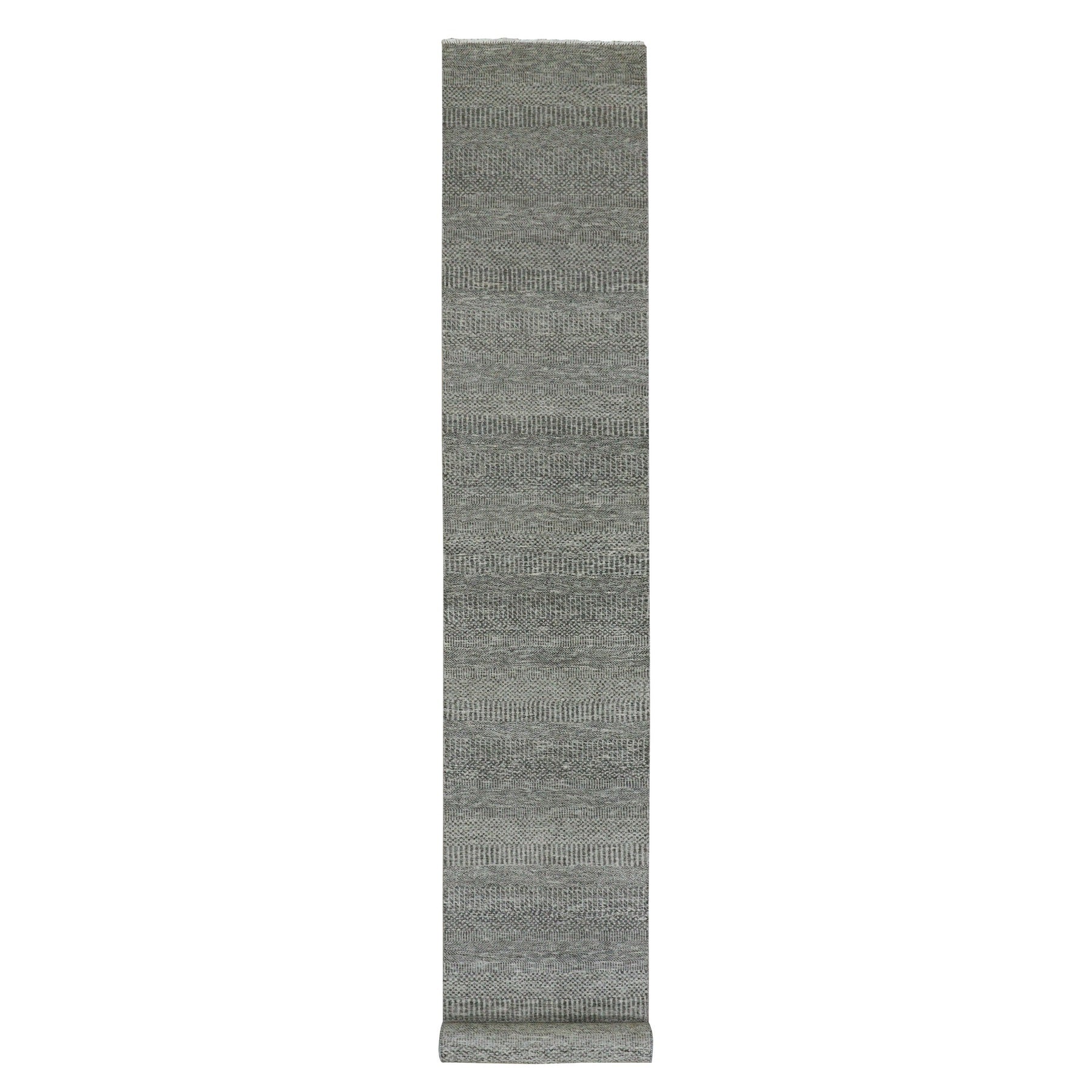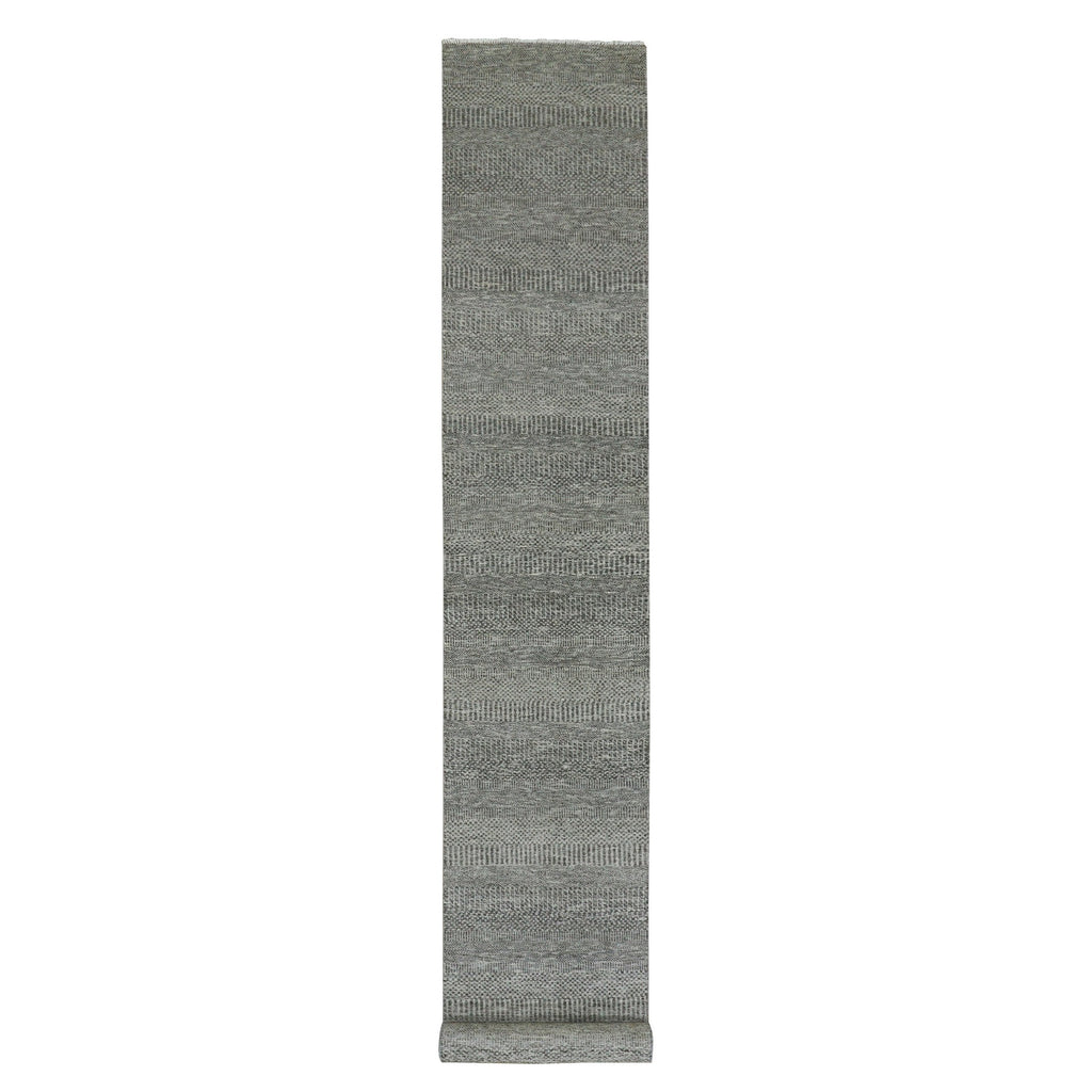 2'7"x15'10" Steeple Gray, Modern Pure Undyed Wool Grass Design, Tone On Tone, Xl Runner Hand Knotted Oriental Rug FWR478398