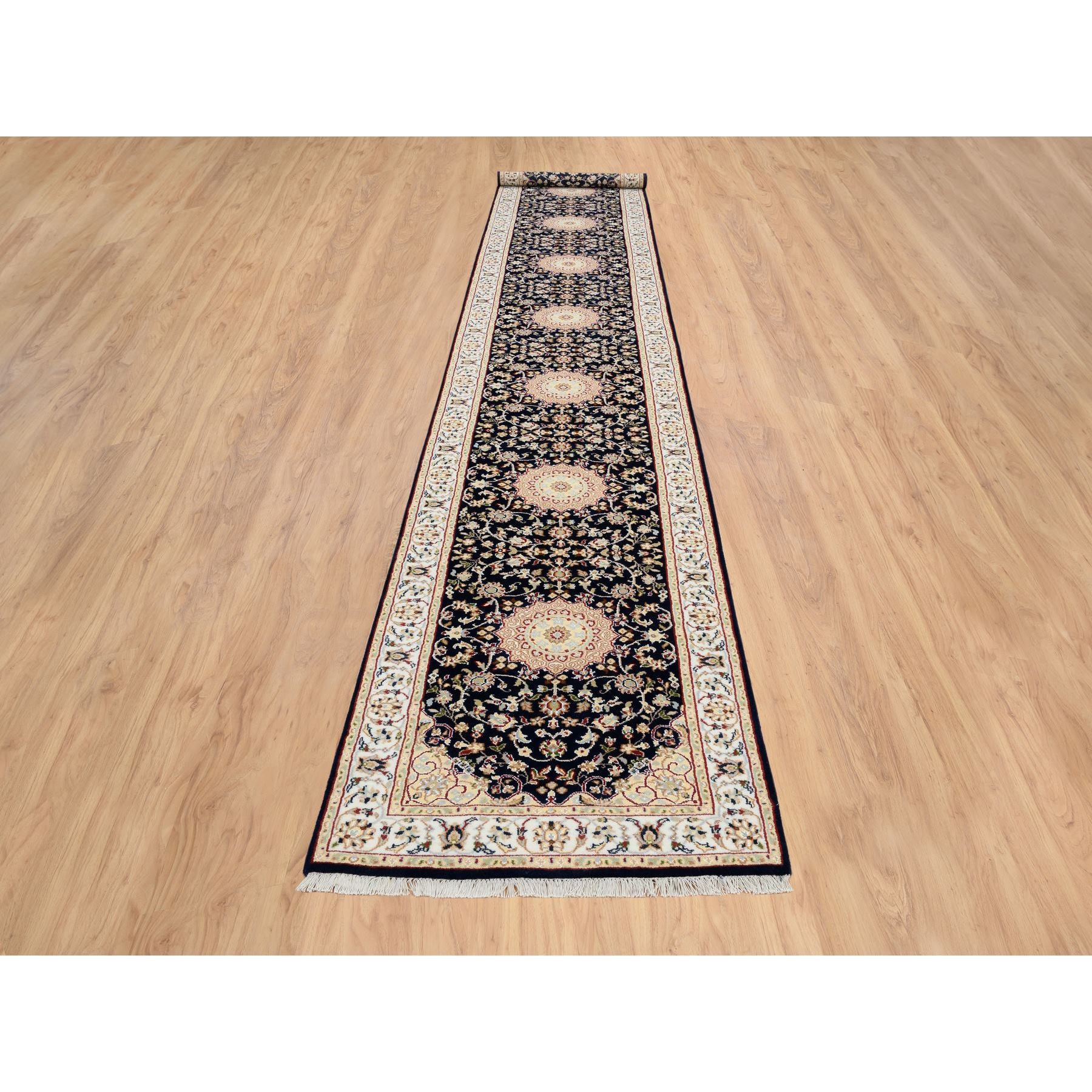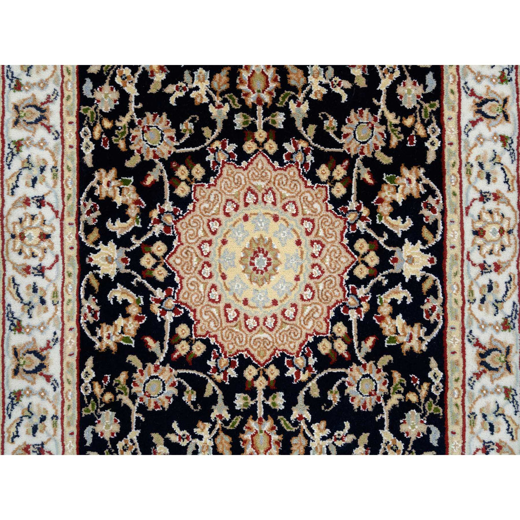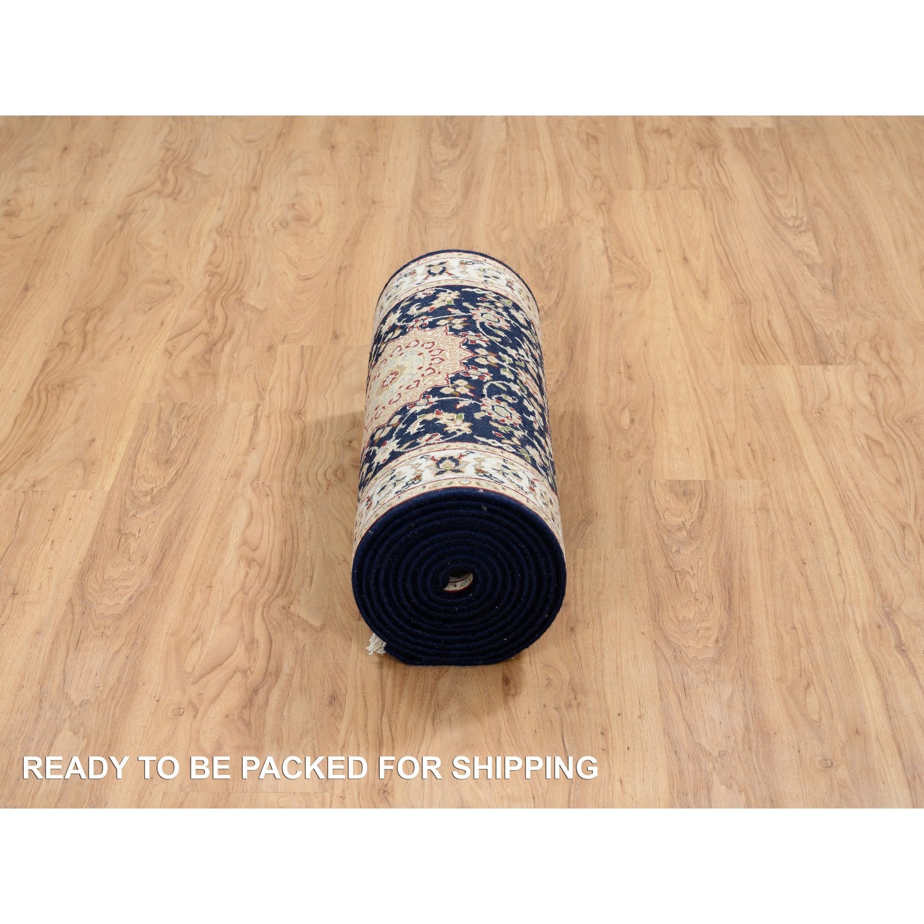 2'7"x16'4" Midnight Blue, Hand Knotted, Nain With Flower Medallion Design, 250 Kpsi, Wool, Oriental Xl Runner Rug FWR388428