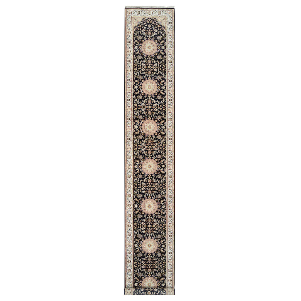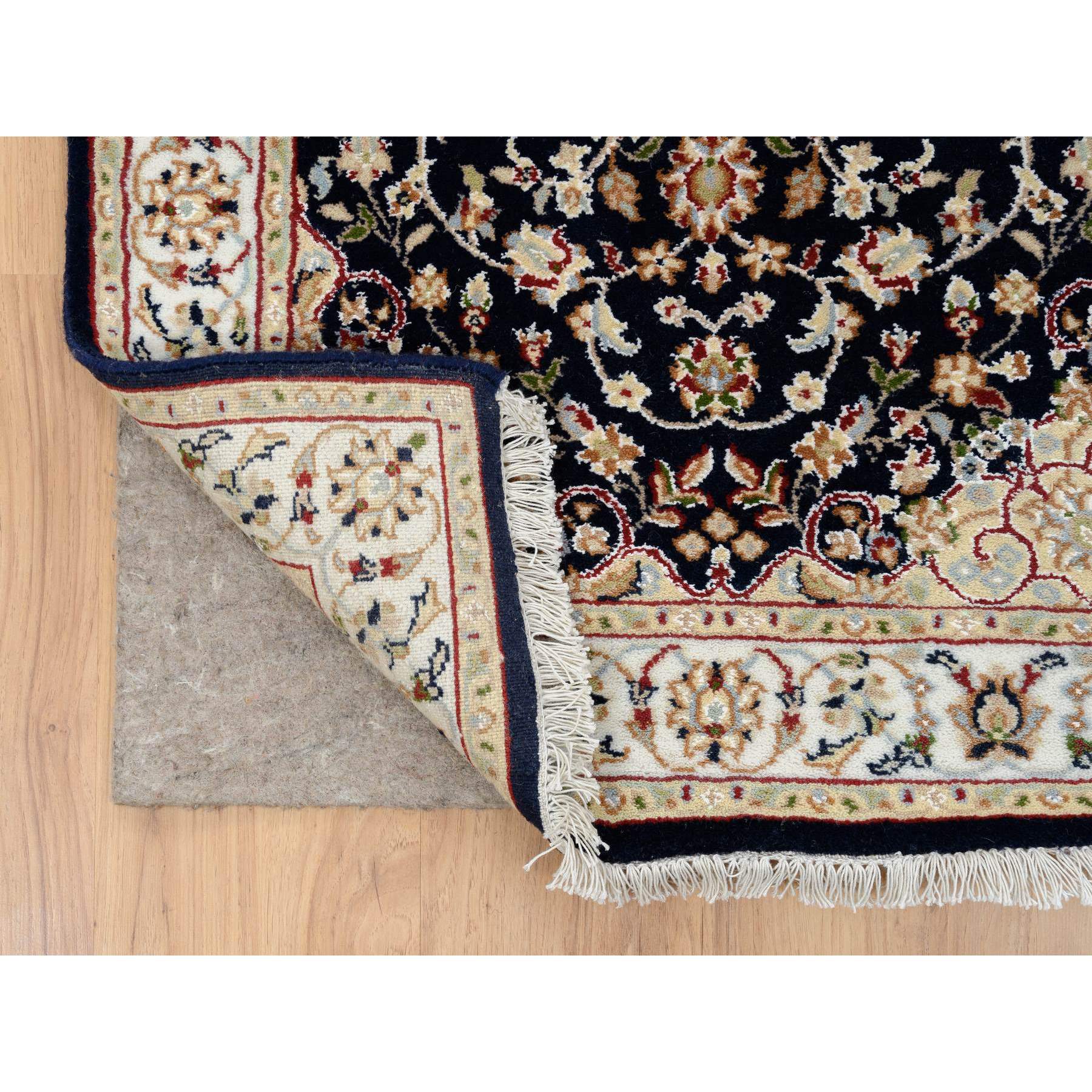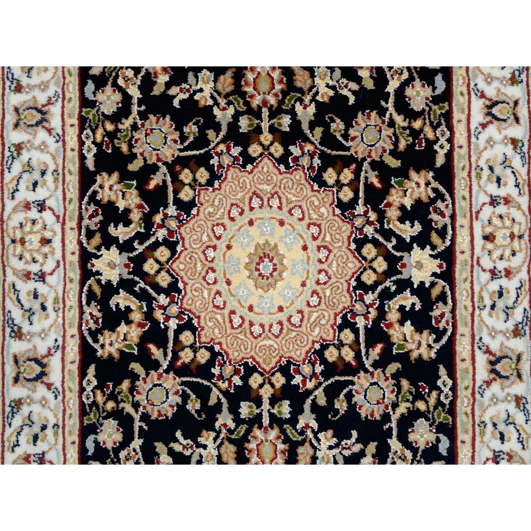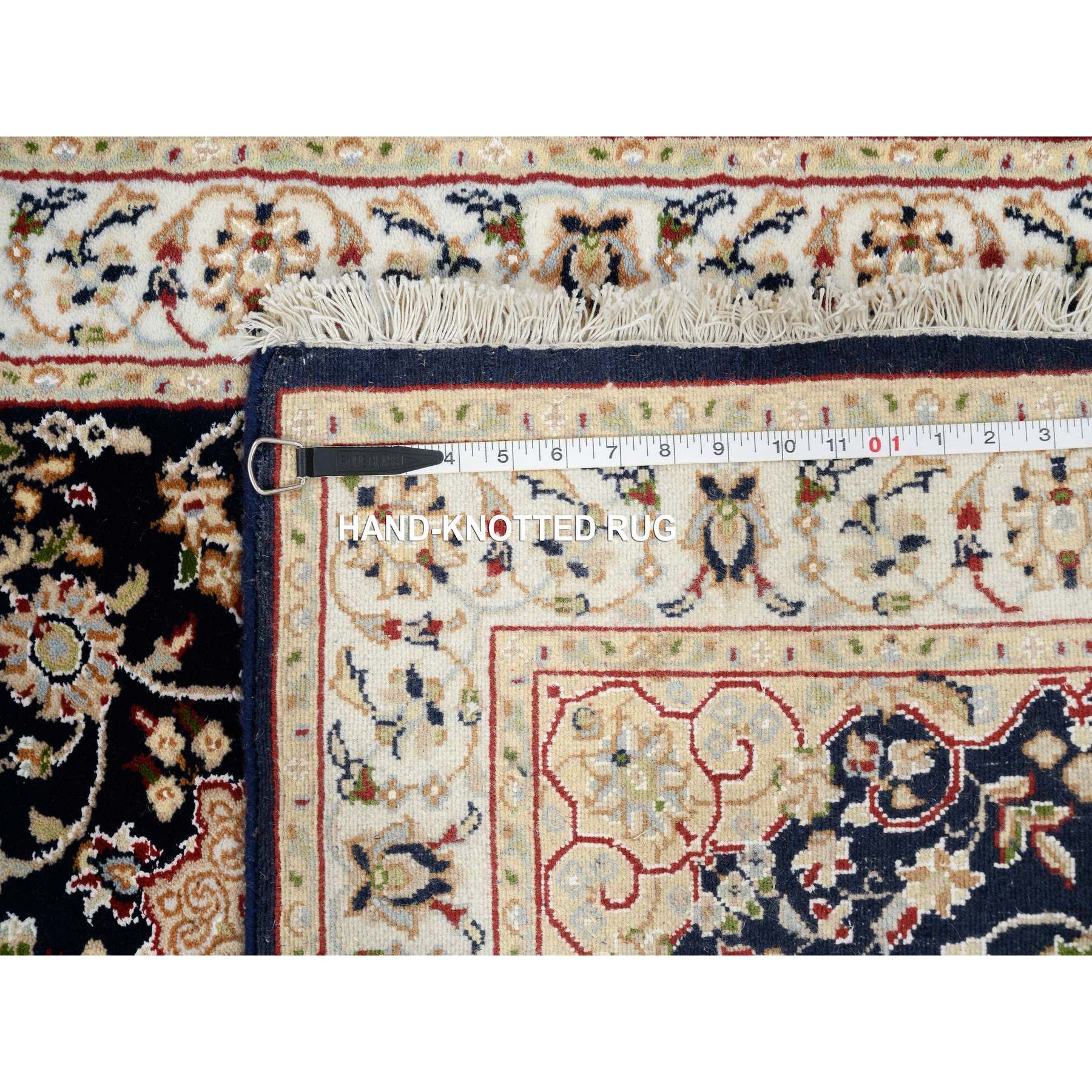 2'7"x16'4" Midnight Blue, Hand Knotted, Nain With Flower Medallion Design, 250 Kpsi, Wool, Oriental Xl Runner Rug FWR388428