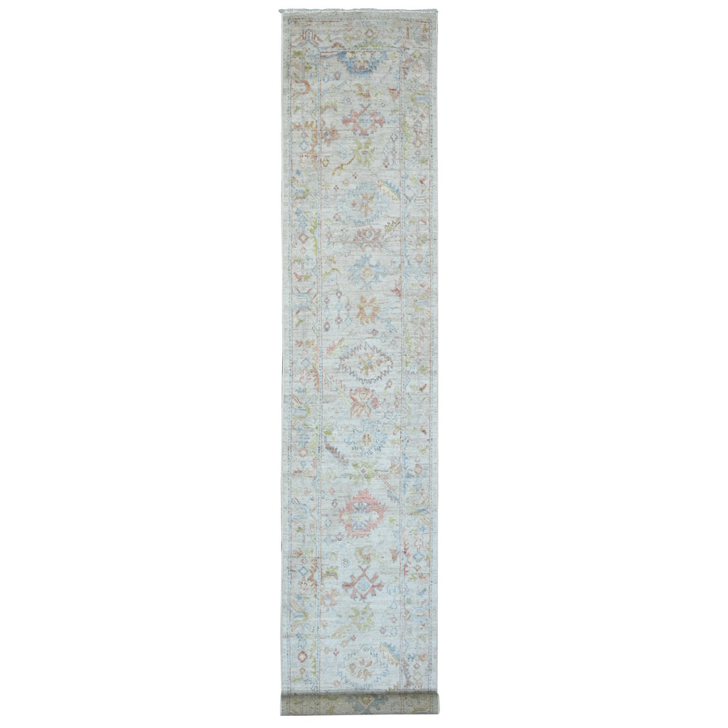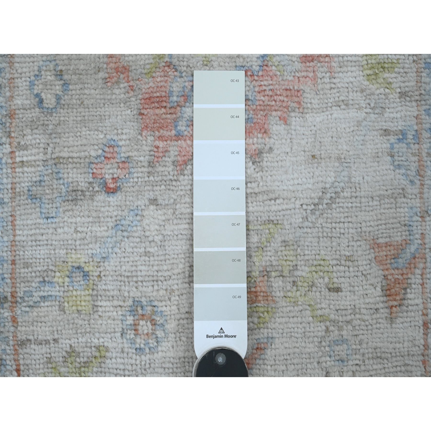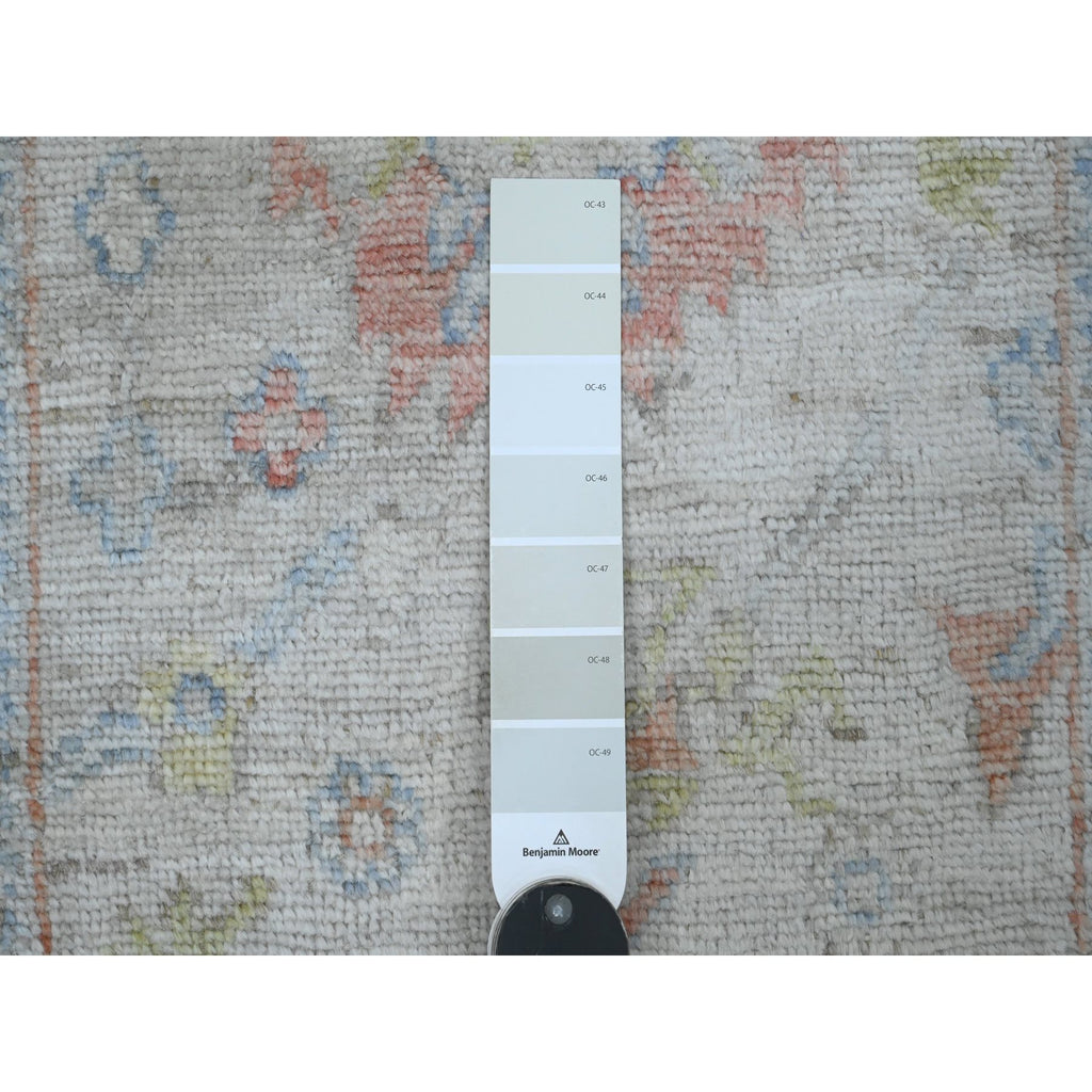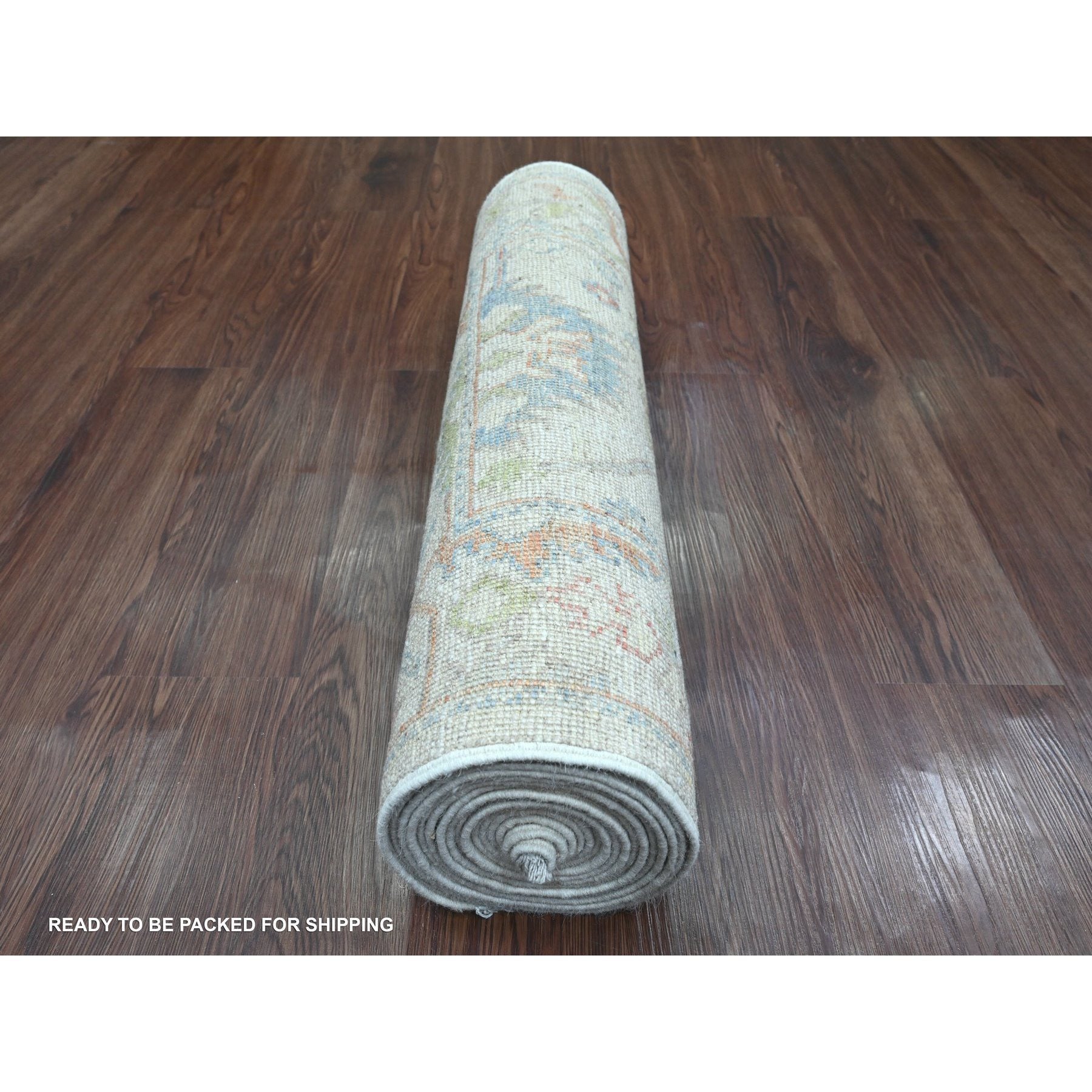 2'7"x16'8" Oyster White, Afghan Angora Oushak With Serrated Leaf Design, Hand Knotted, Veggie Dyes, 100% Wool, Xl Runner, Oriental Rug FWR124014