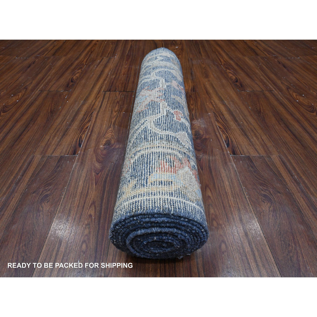 2'7"x16' Denim Blue, Afghan Angora Oushak With Colorful Village Elements All Over, Hand Knotted, Natural Dyes, Wool Weft, Xl Runner Oriental Rug FWR536094