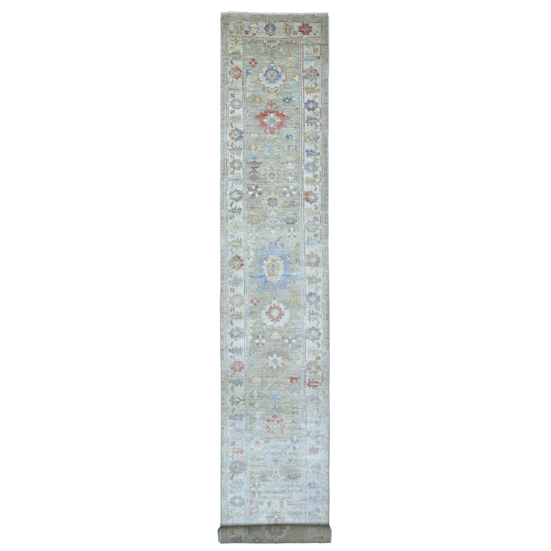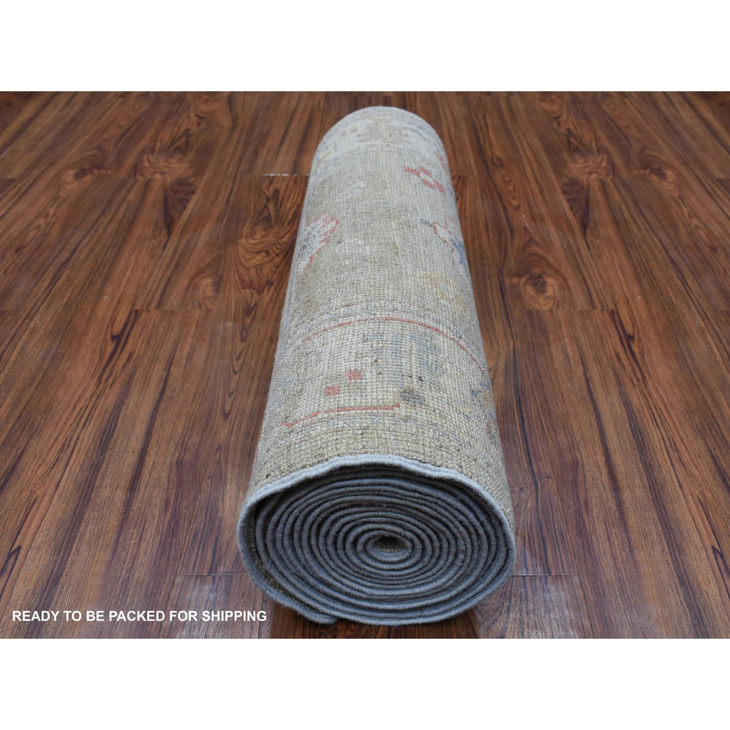 2'7"x17'5" Hand Knotted Angora Oushak With Colorful Motifs Gray Extra Soft Wool Oriental Xl Runner Rug FWR410430