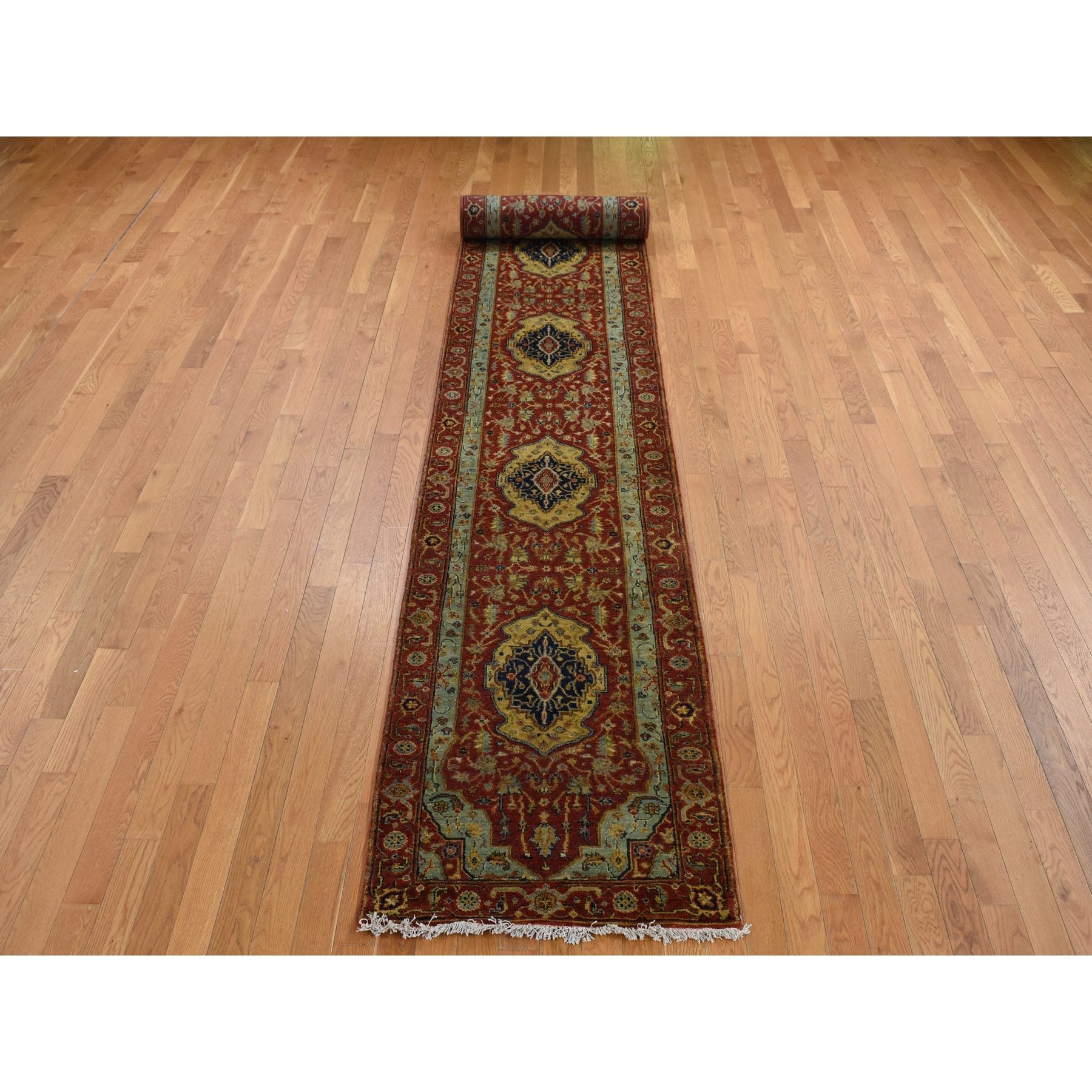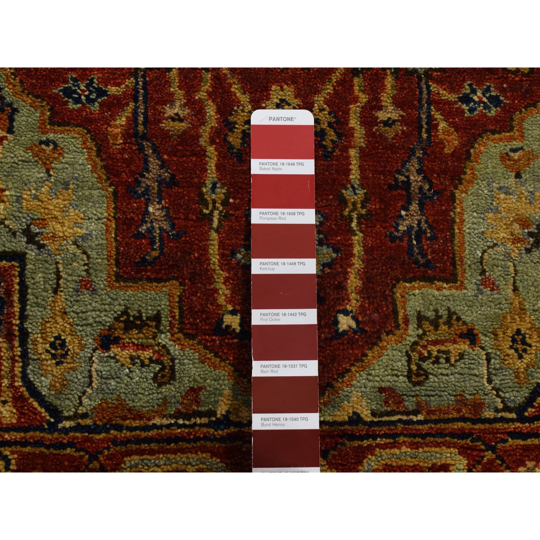 2'7"x17'7" Brick Red, Antiqued Heriz, Hand Spun New Zealand Wool, Hand Knotted, Xl Runner Oriental Rug FWR525738