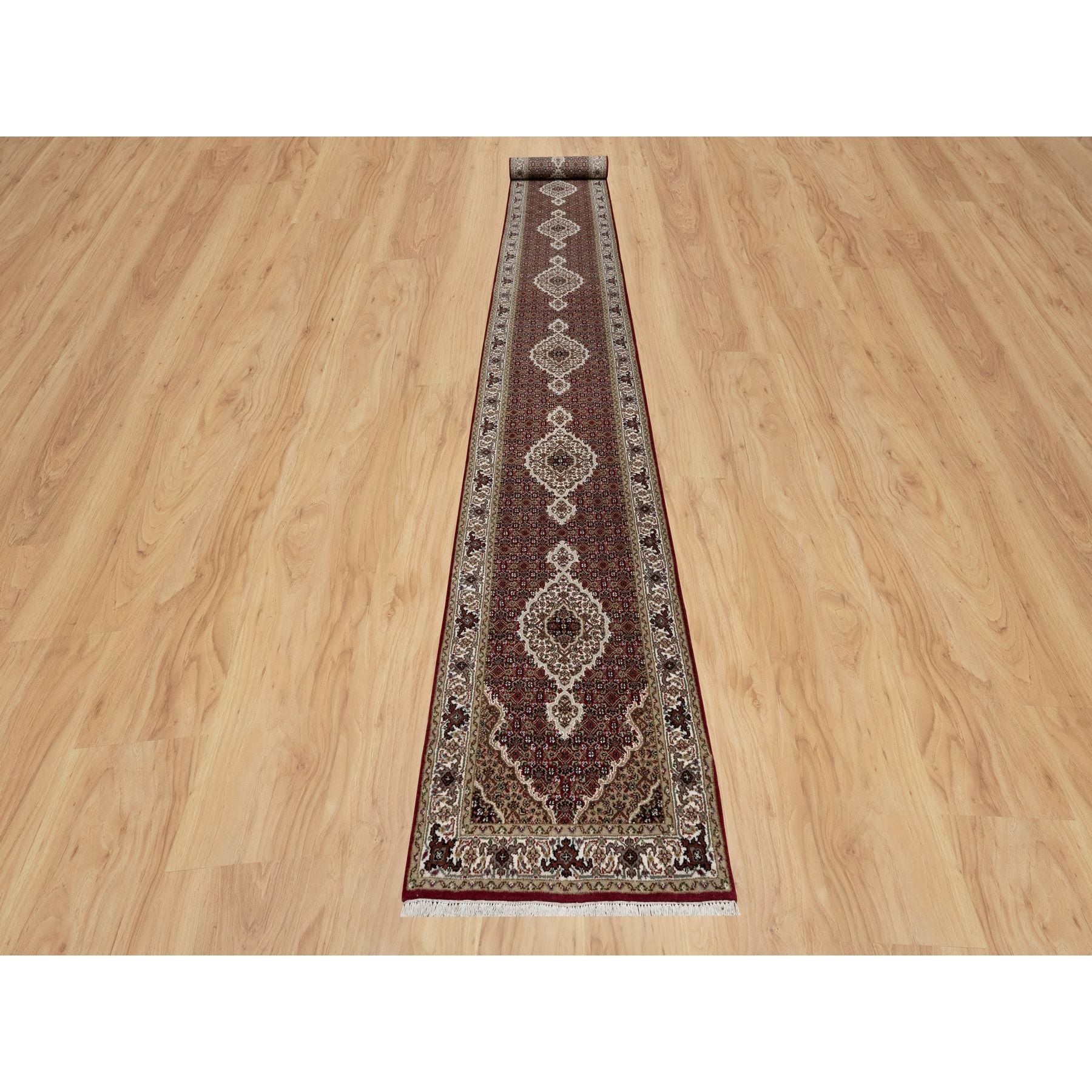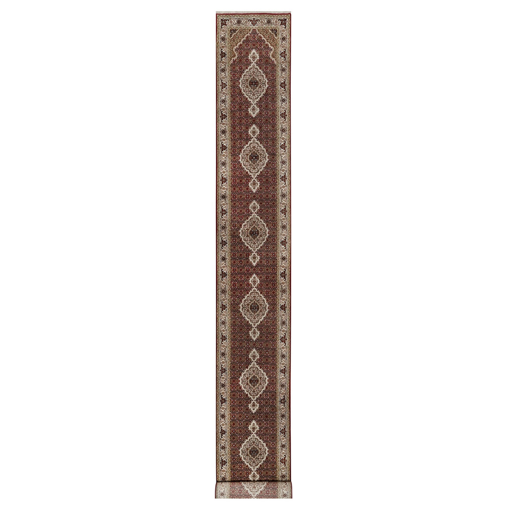 2'7"x20'4" Scarlet Red, Tabriz Mahi With Fish Medallion Design, Pure Wool, Hand Knotted, Densely Woven, Xl Runner, Oriental Rug FWR545880