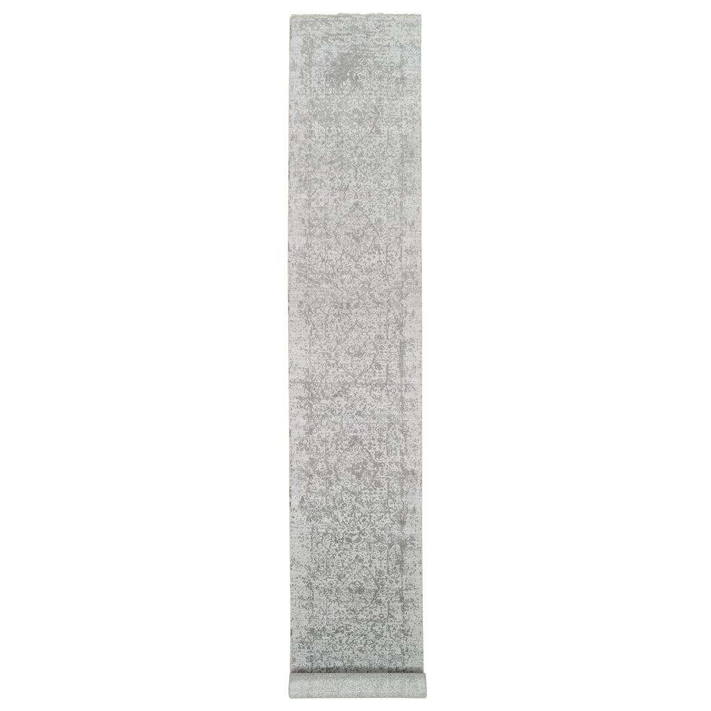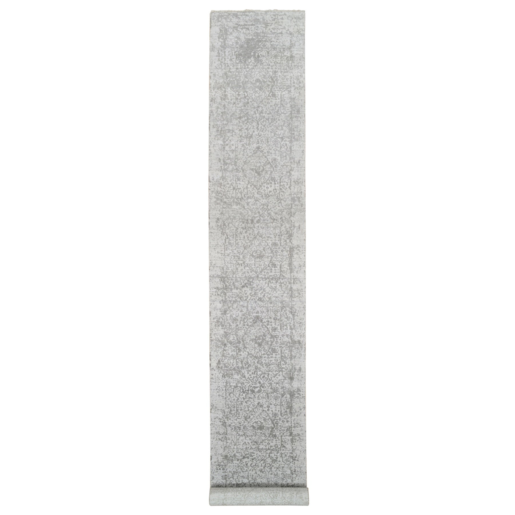 2'7"x20' Gray, Wool And Pure Silk Broken Persian Design, Hand Knotted, Xl Runner Oriental Rug FWR390126