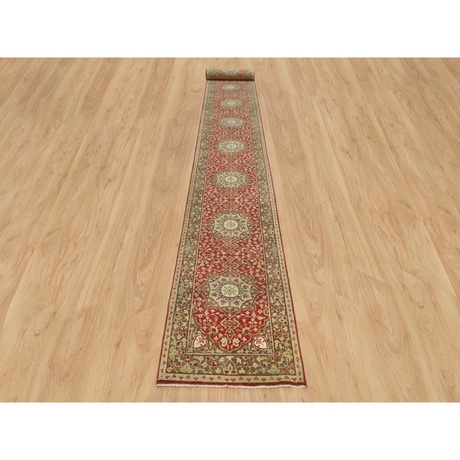 2'7"x22' Cherry Red, Antiqued Tabriz Haji Jalili Design, Fine Weave, Natural Dyes, All Wool, Plush Pile, Hand Knotted, Xl Runner Oriental Rug FWR540696